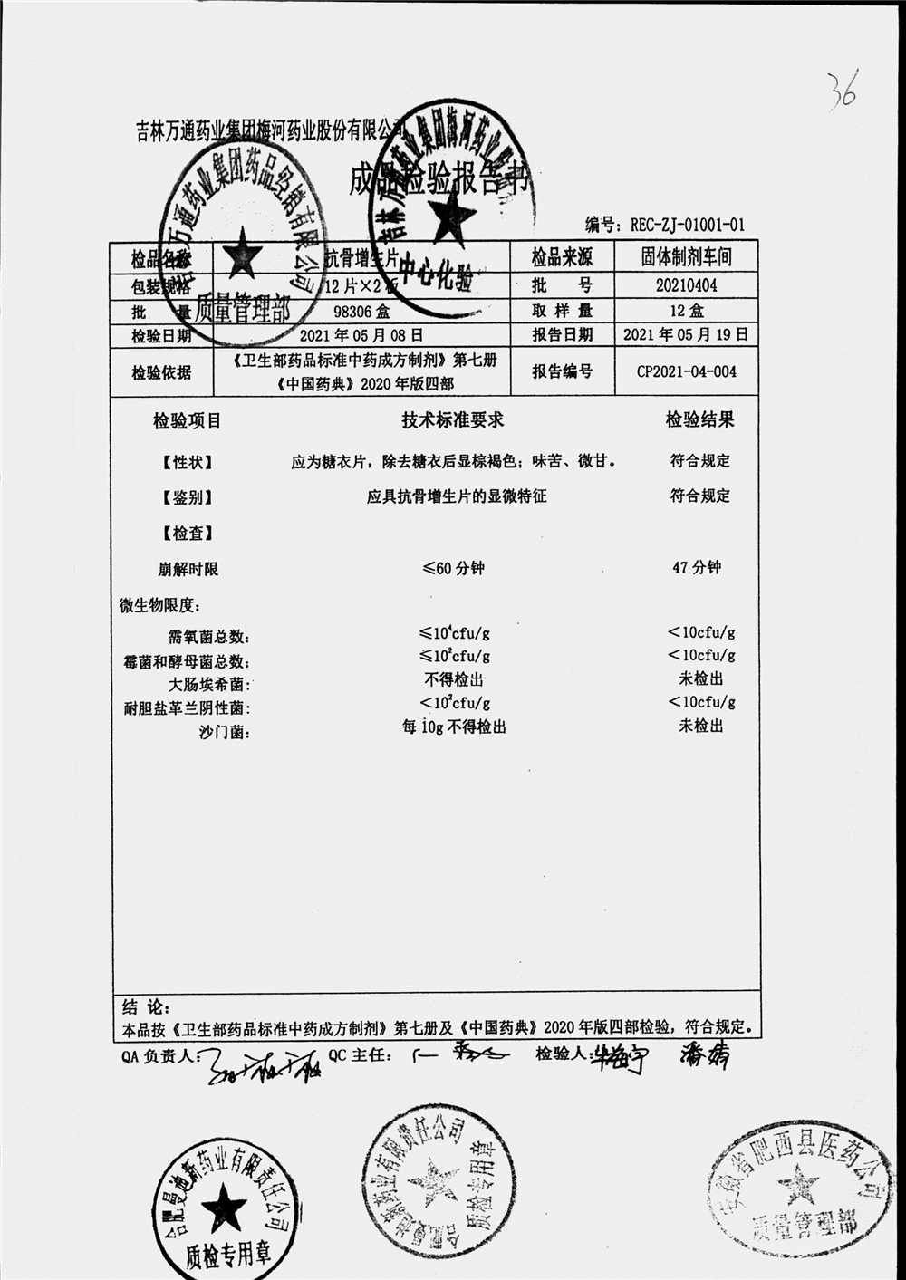 | 抗骨增生片 | 12*2 | 20210404 | 查看详情 |