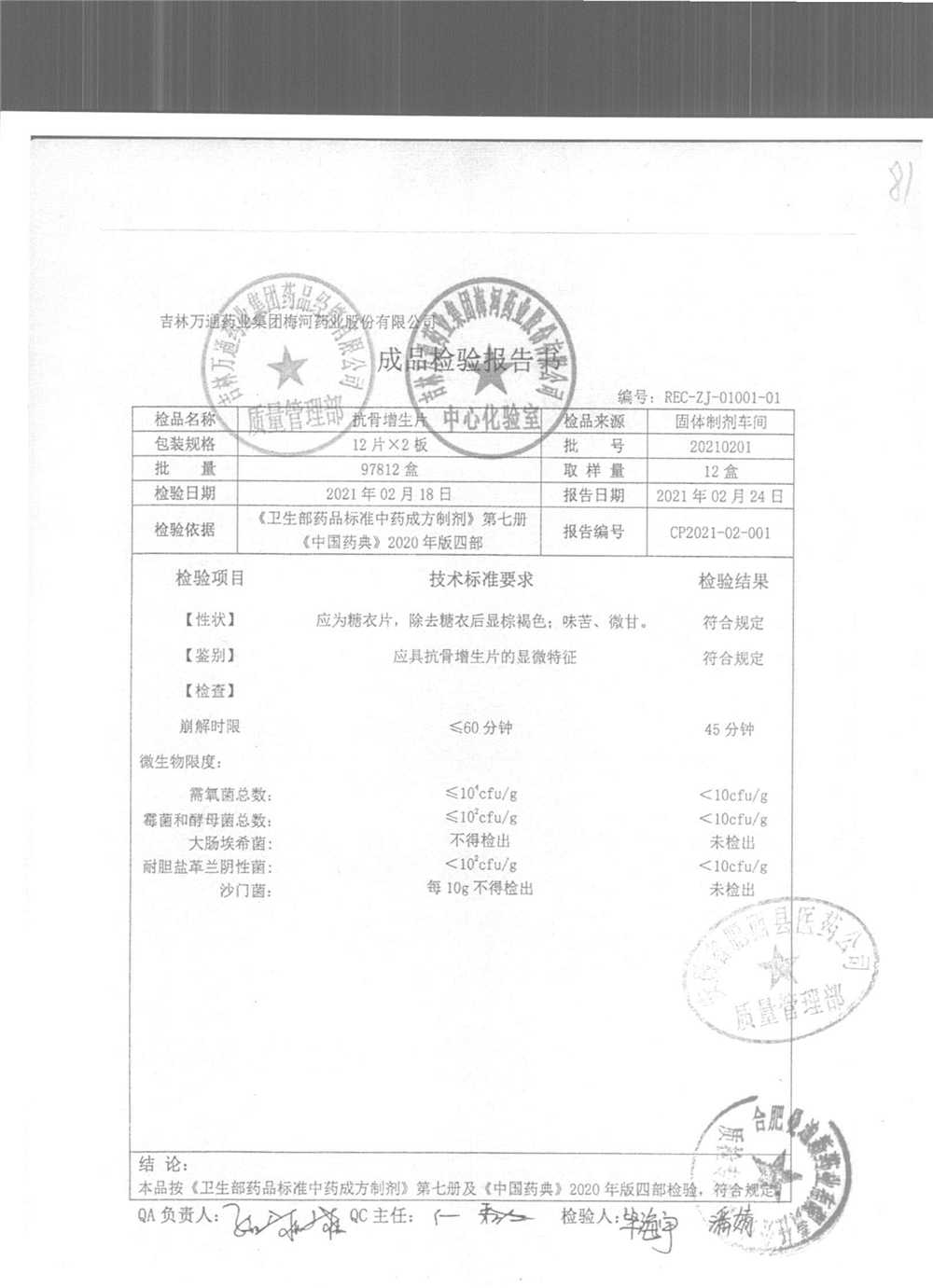 | 抗骨增生片 | 12*2 | 20210201 | 查看详情 |