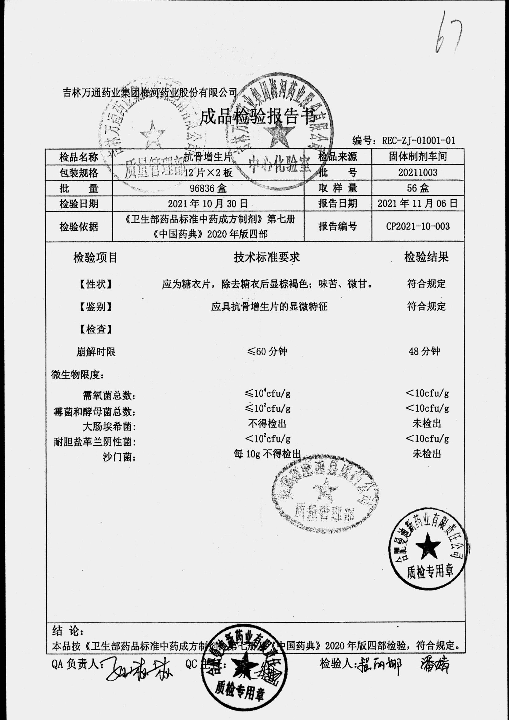 | 抗骨增生片 | 12*2 | 20211003 | 查看详情 |