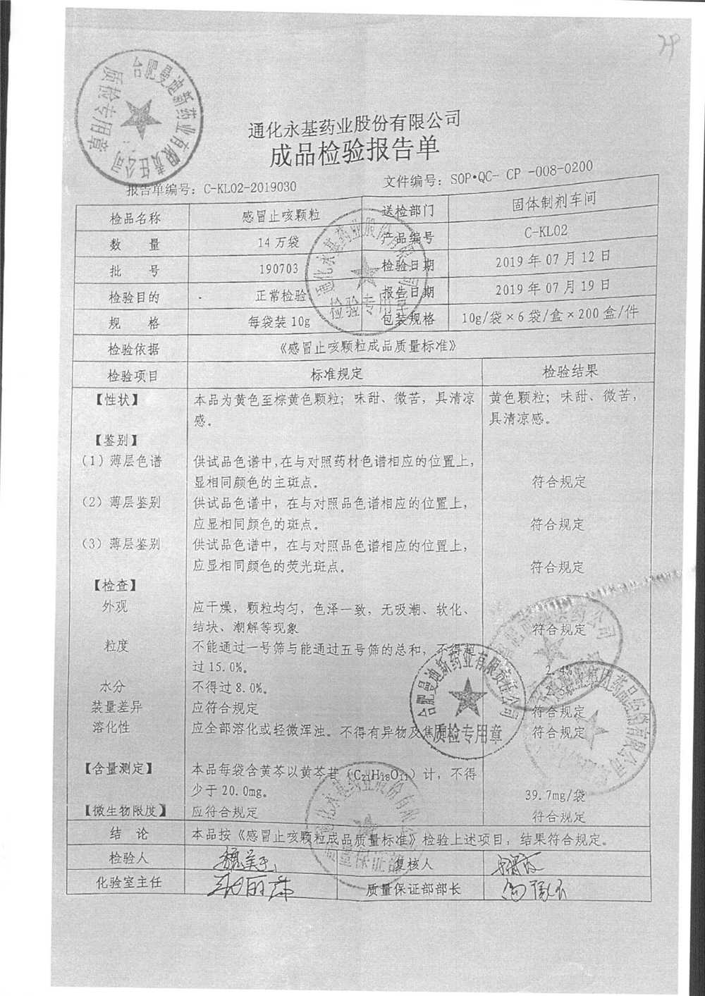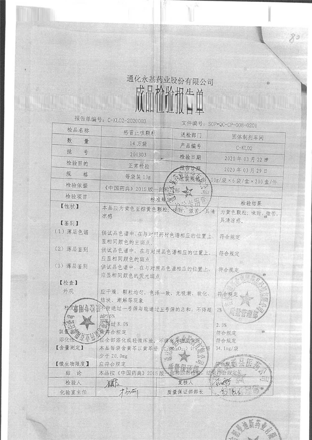 | 感冒止咳颗粒 | 10g | 190703 | 查看详情 |