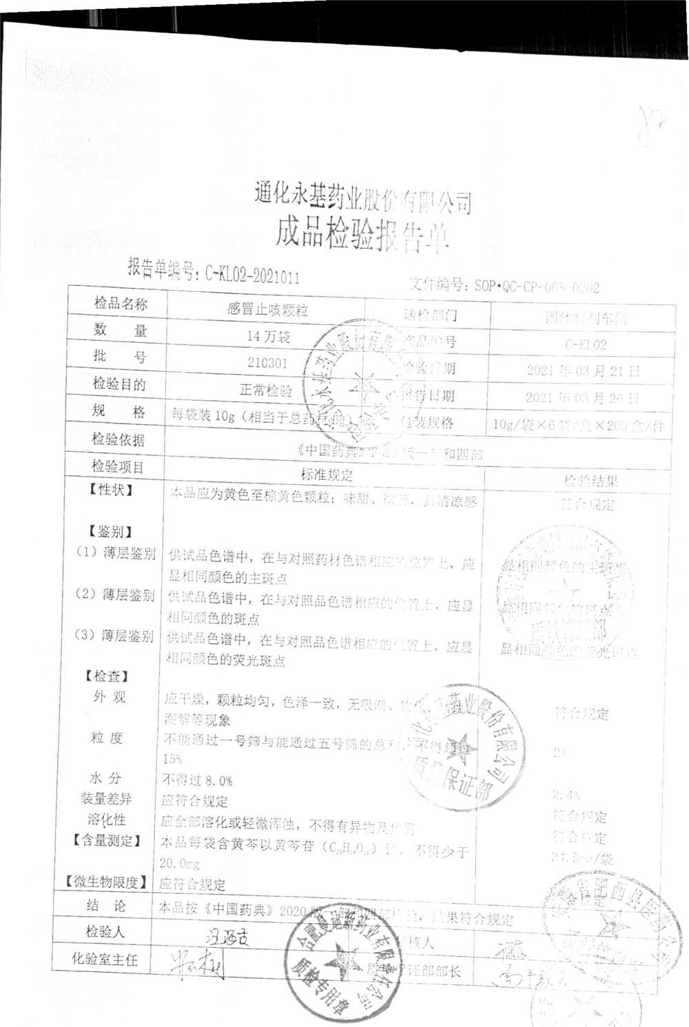 | 感冒止咳颗粒 | 10g | 210301 | 查看详情 |