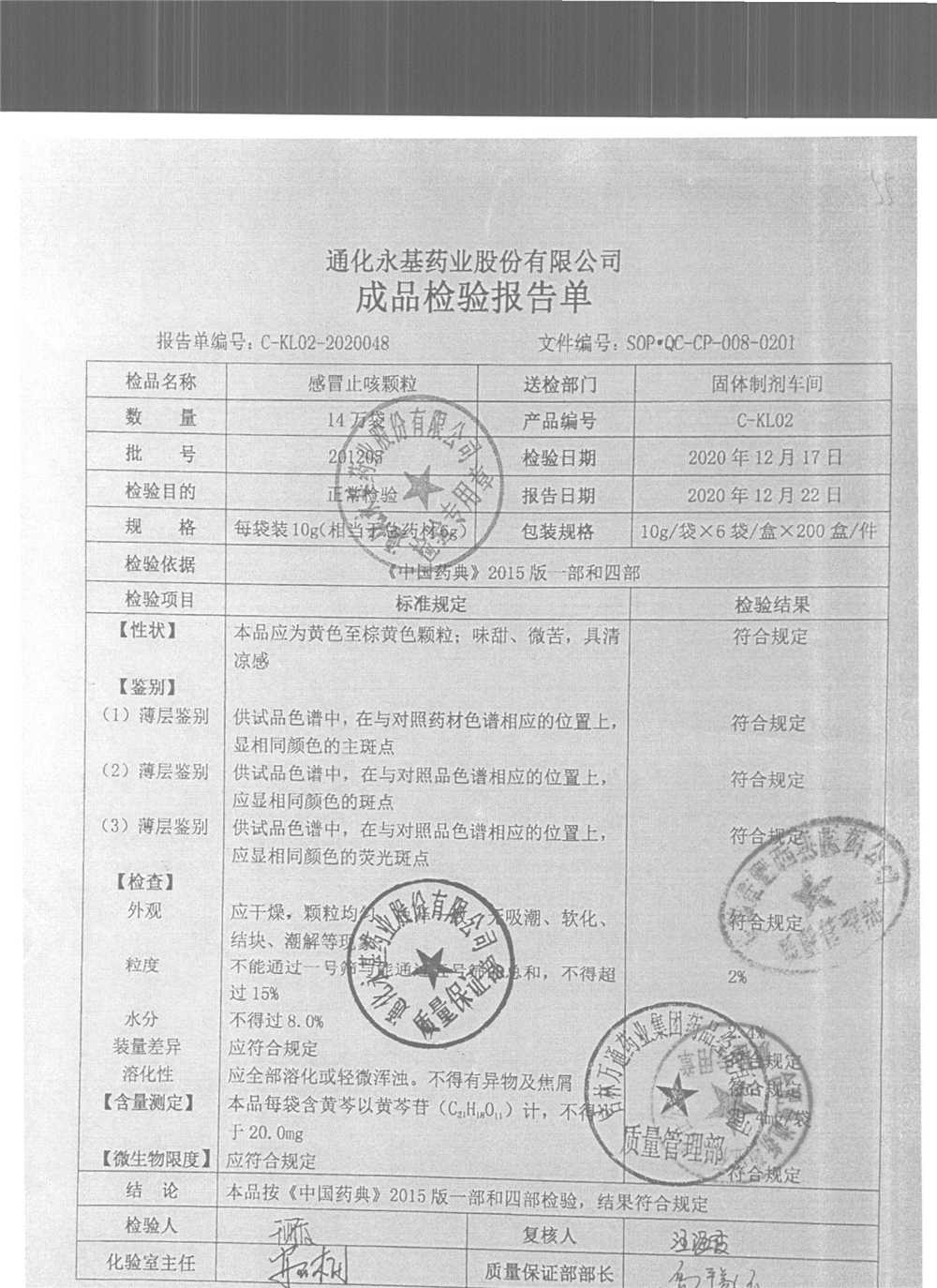 | 感冒止咳颗粒 | 10g | 201205 | 查看详情 |