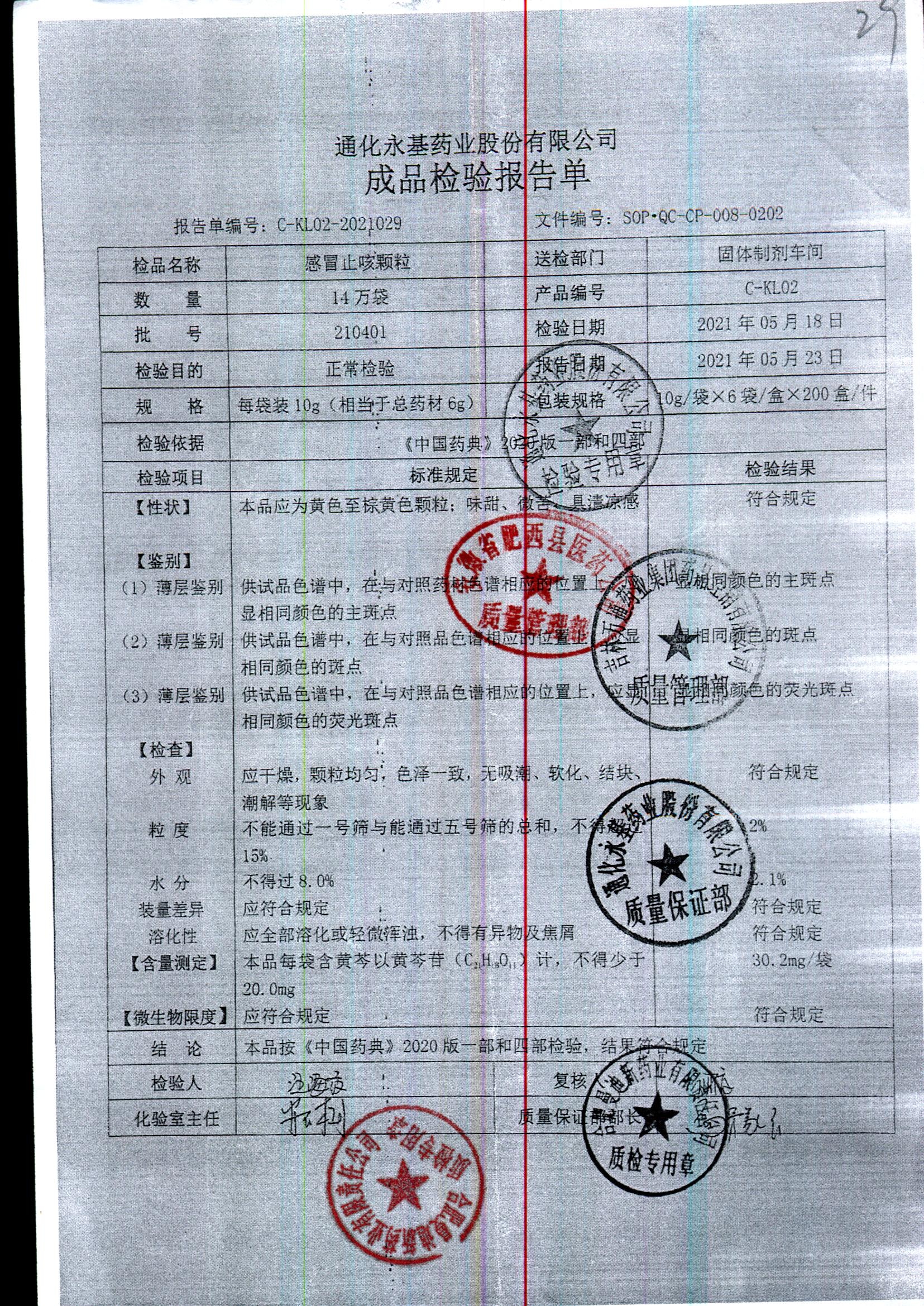 | 感冒止咳颗粒 | 10g | 210401 | 查看详情 |
