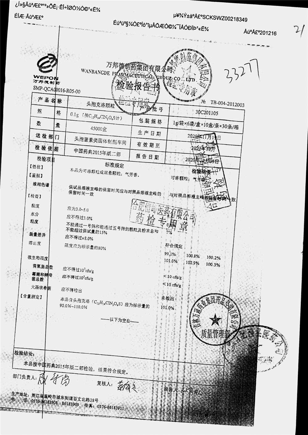 | 头孢克洛颗粒 | 0.1g*6袋 | 30C210301 | 查看详情 |