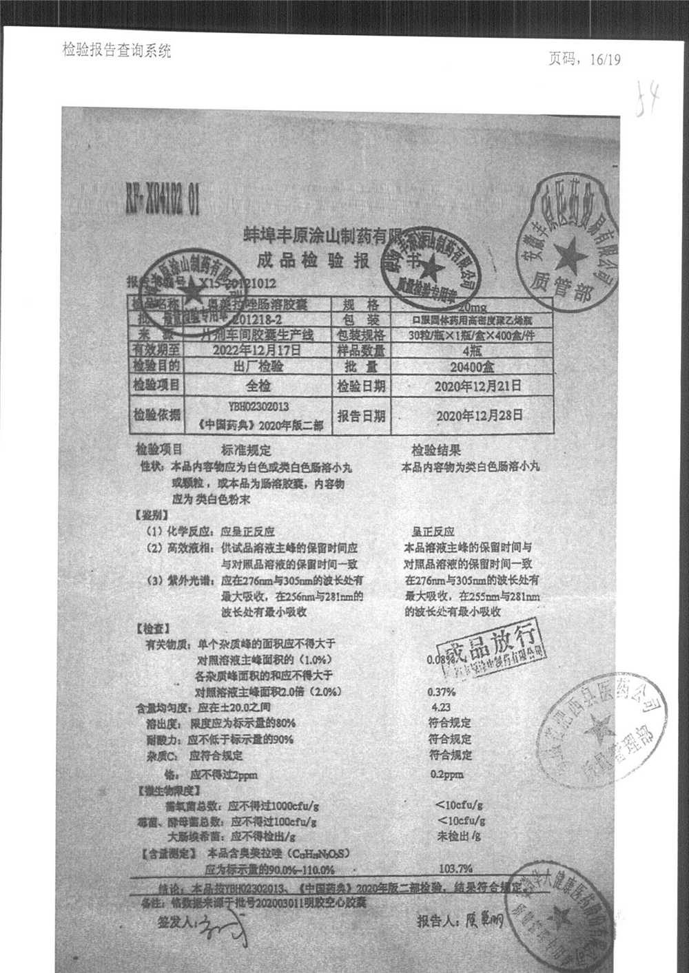 | 奥美拉唑肠溶胶囊 | 20mg*30s | 201218-1 | 查看详情 |