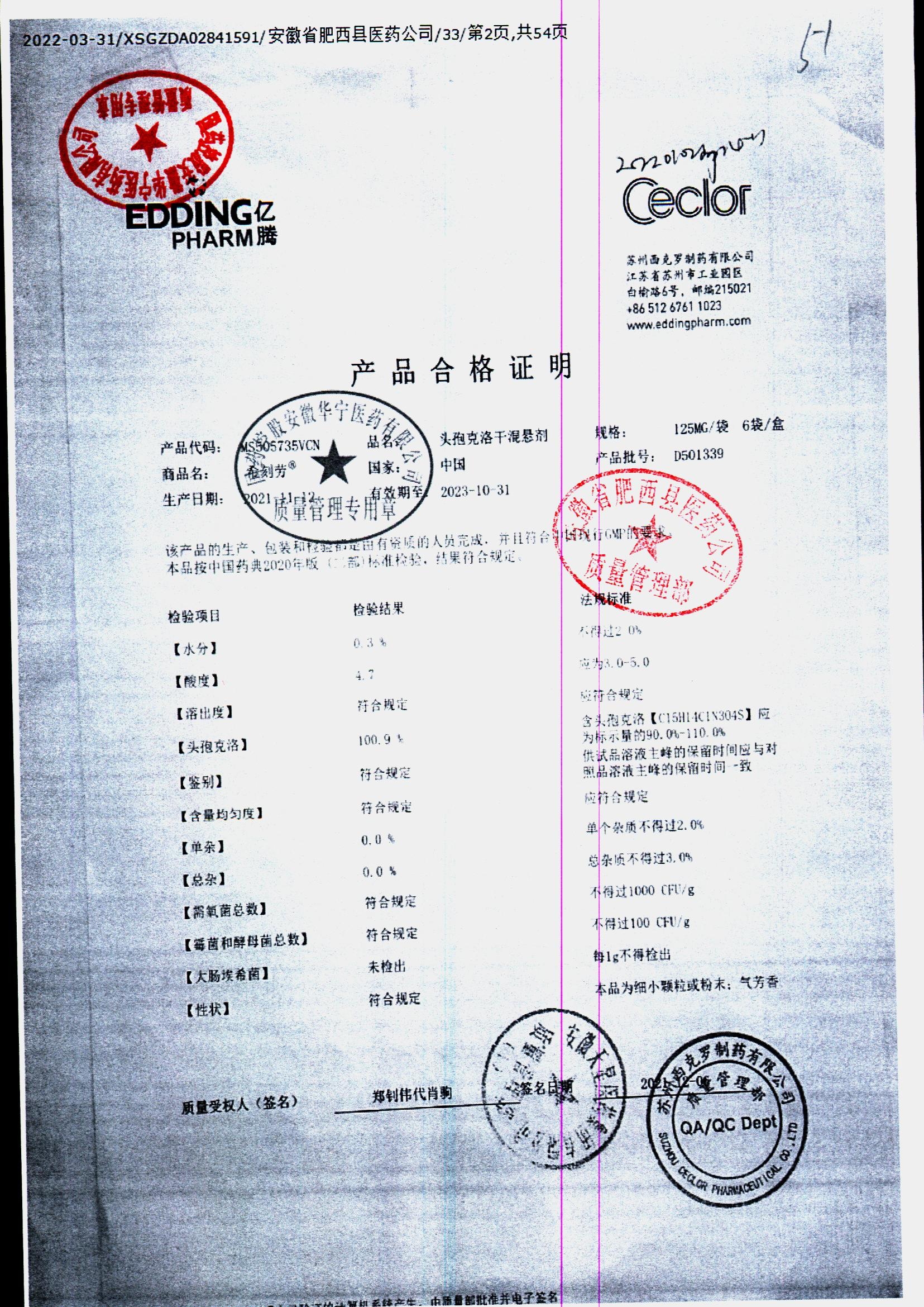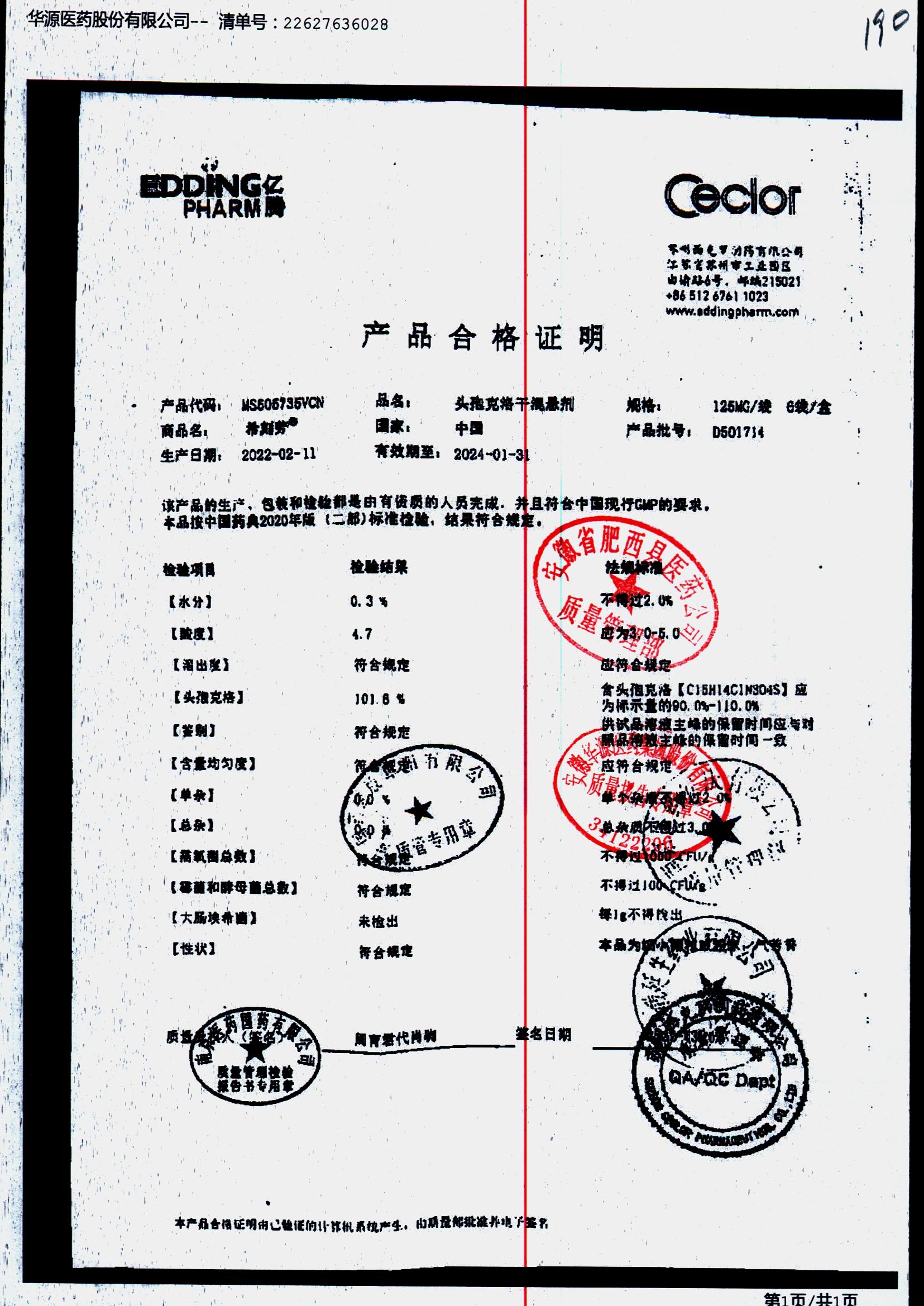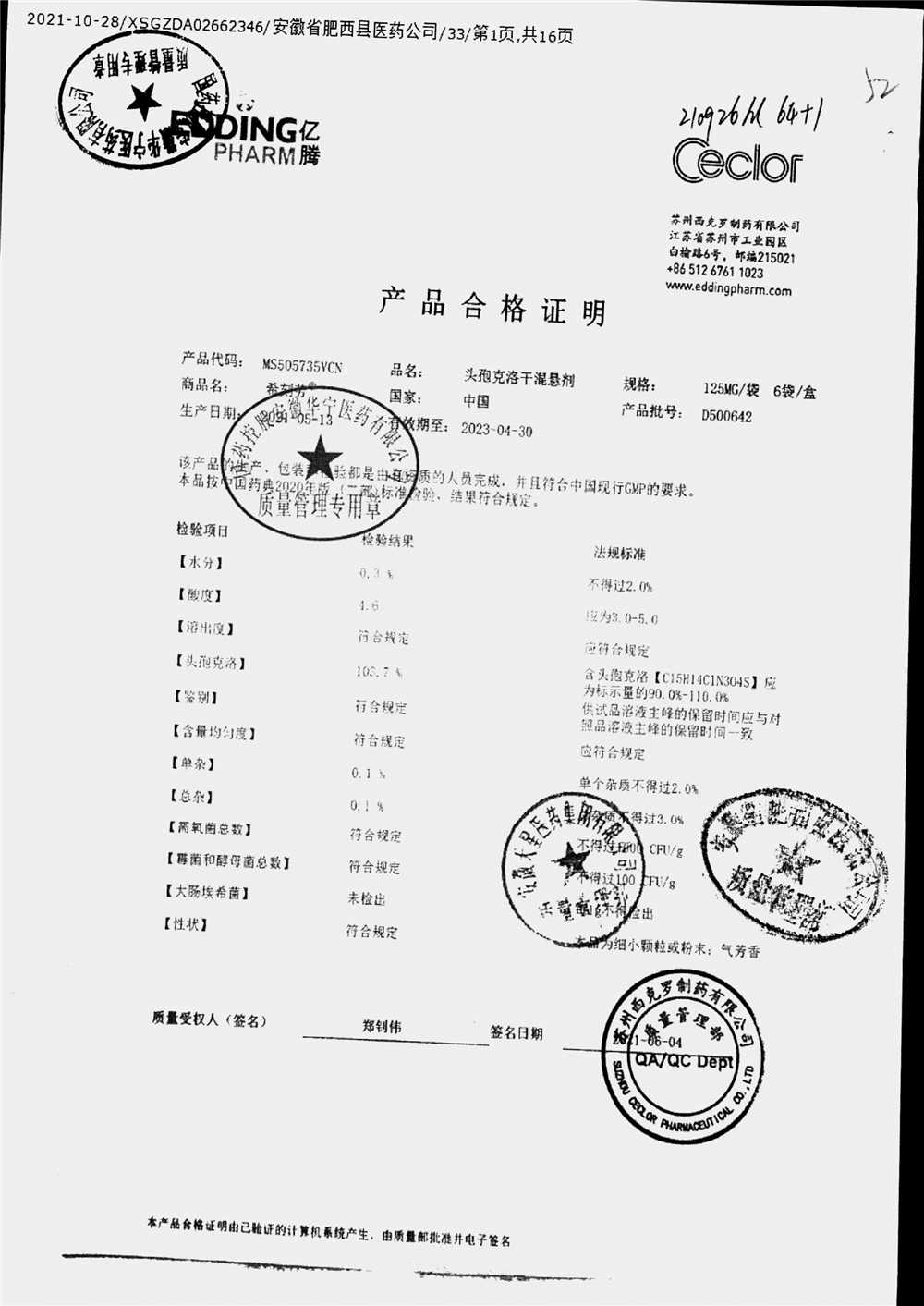 | 头孢克洛干混悬剂 | 0.125g*6袋 | D262821(2/2) | 查看详情 |
