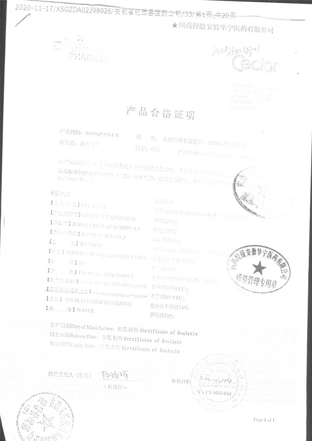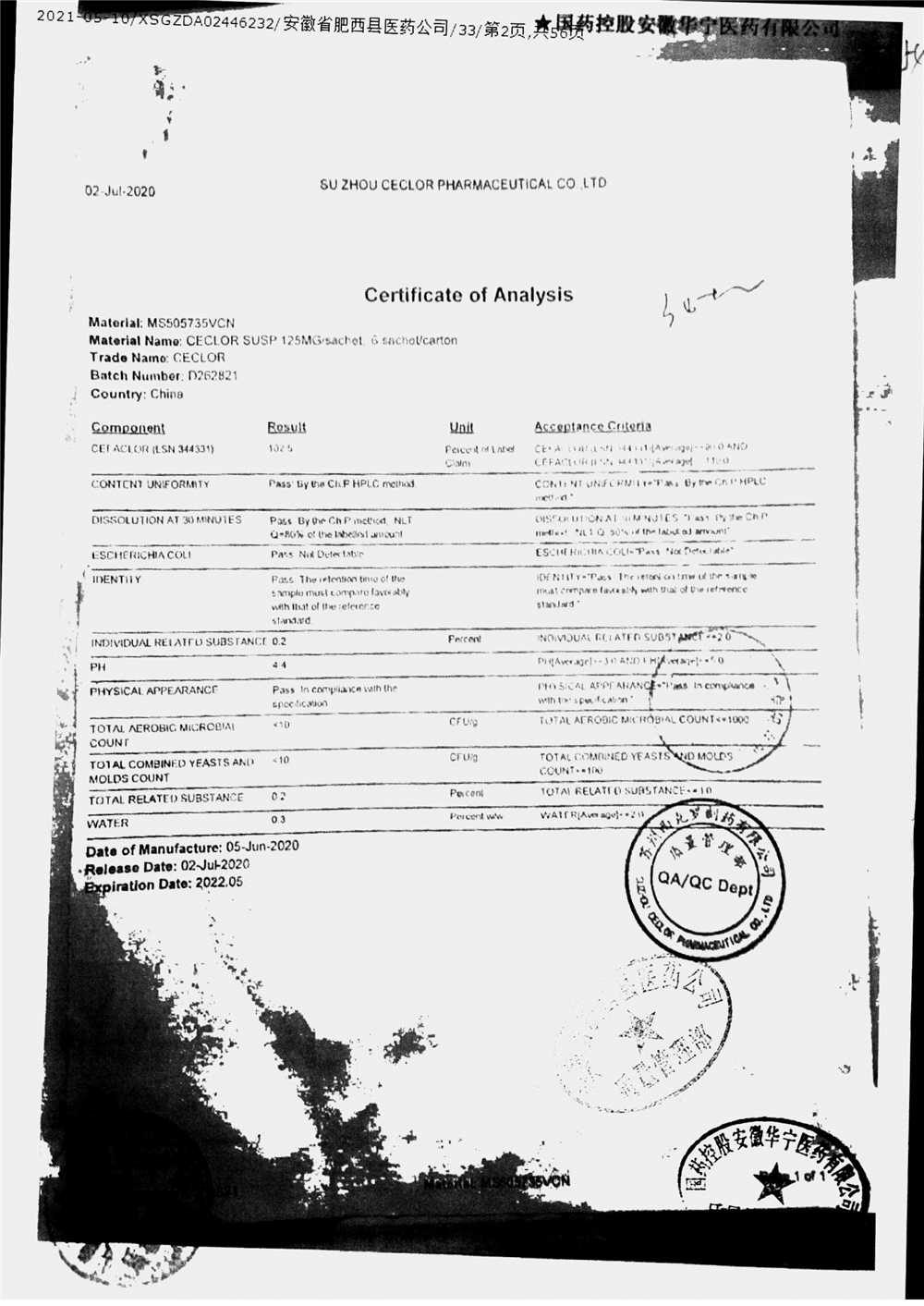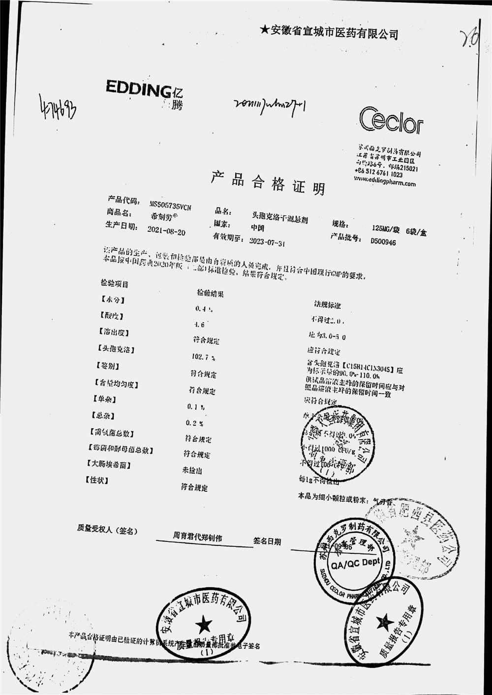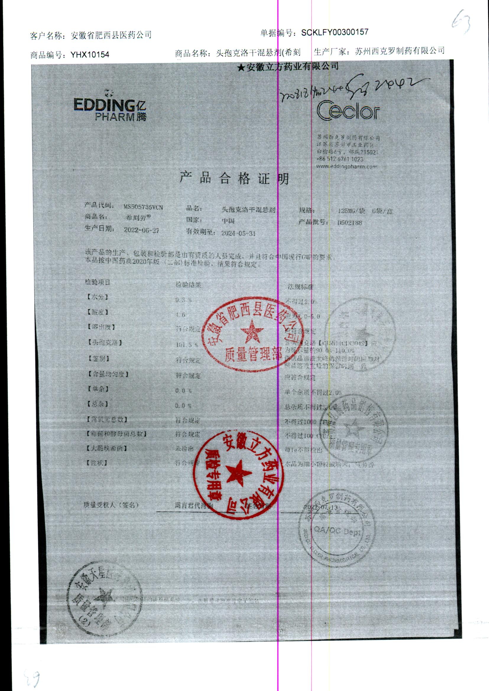 | 头孢克洛干混悬剂 | 0.125g*6袋 | D262821(2/2) | 查看详情 |