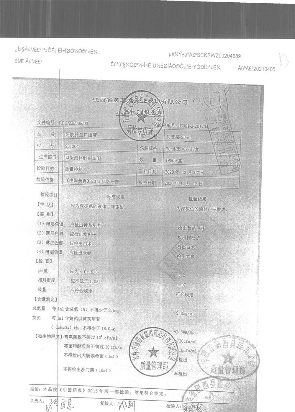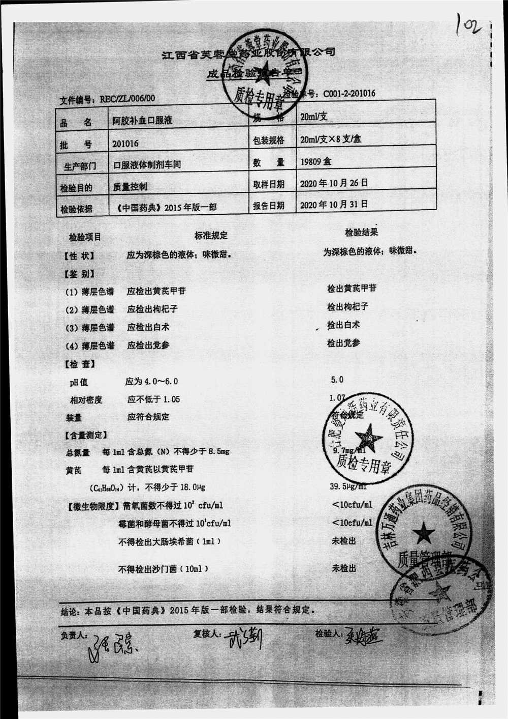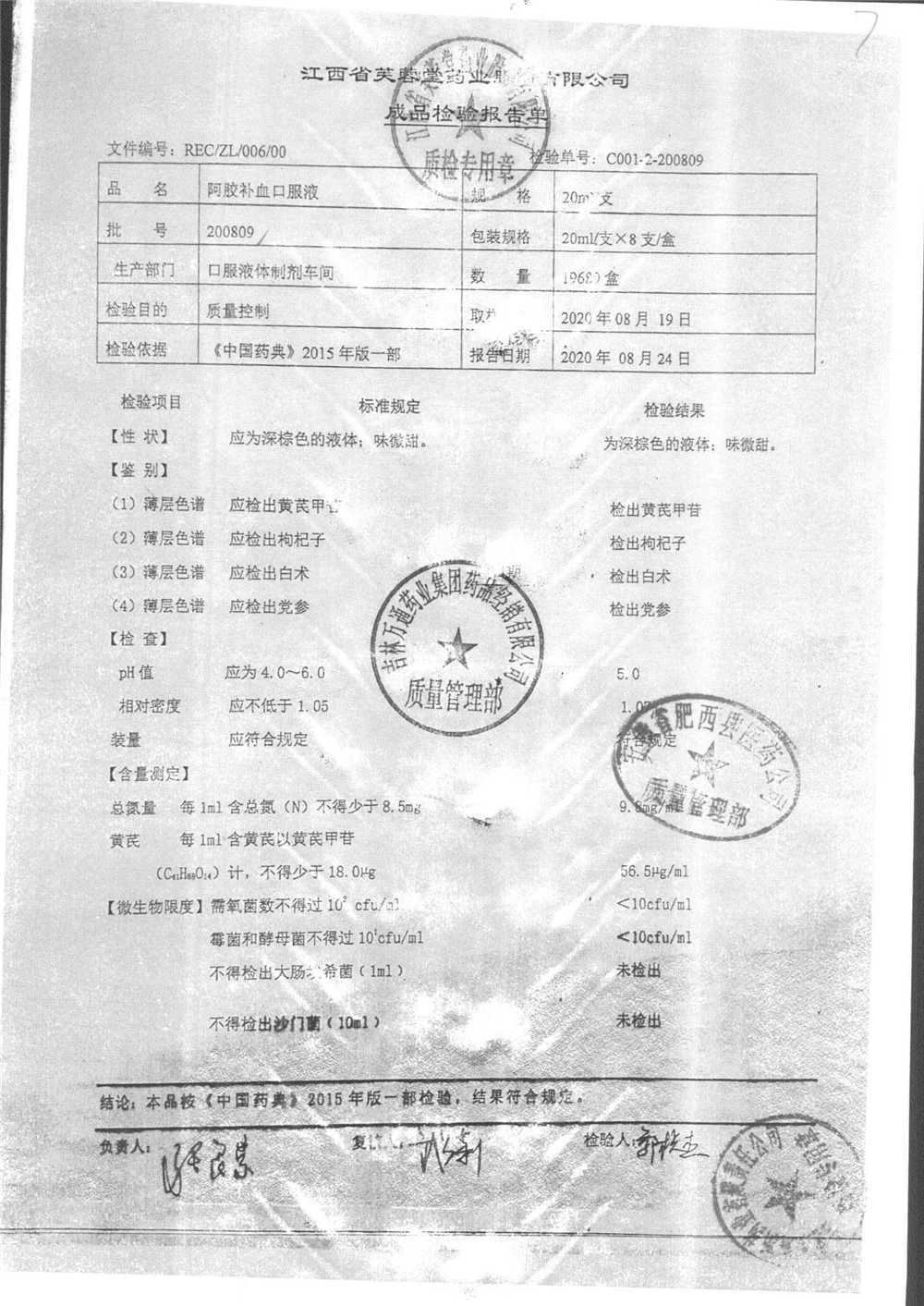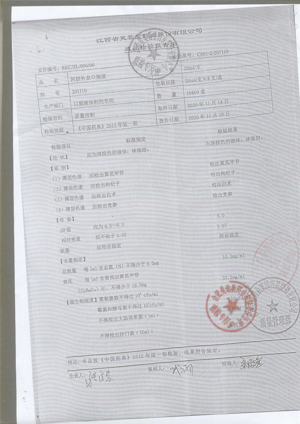 | 阿胶补血口服液 | 20ml*8支 | 201208 | 查看详情 |