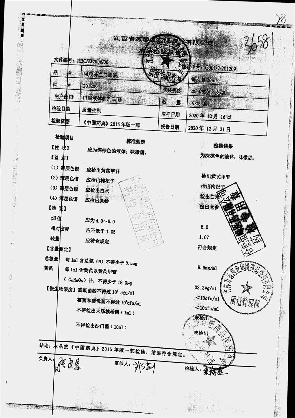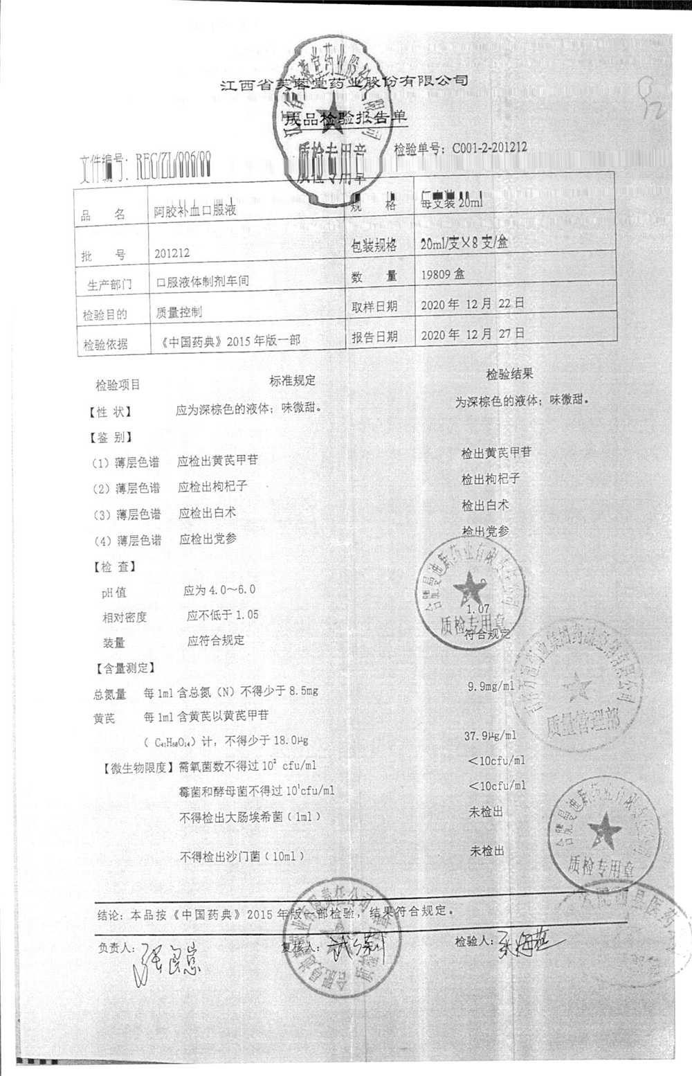 | 阿胶补血口服液 | 20ml*8支 | 201212 | 查看详情 |