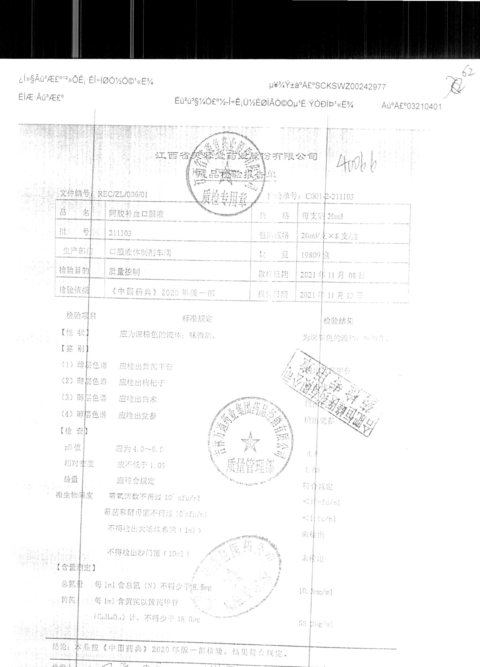 | 阿胶补血口服液 | 20ml*8支 | 211101 | 查看详情 |