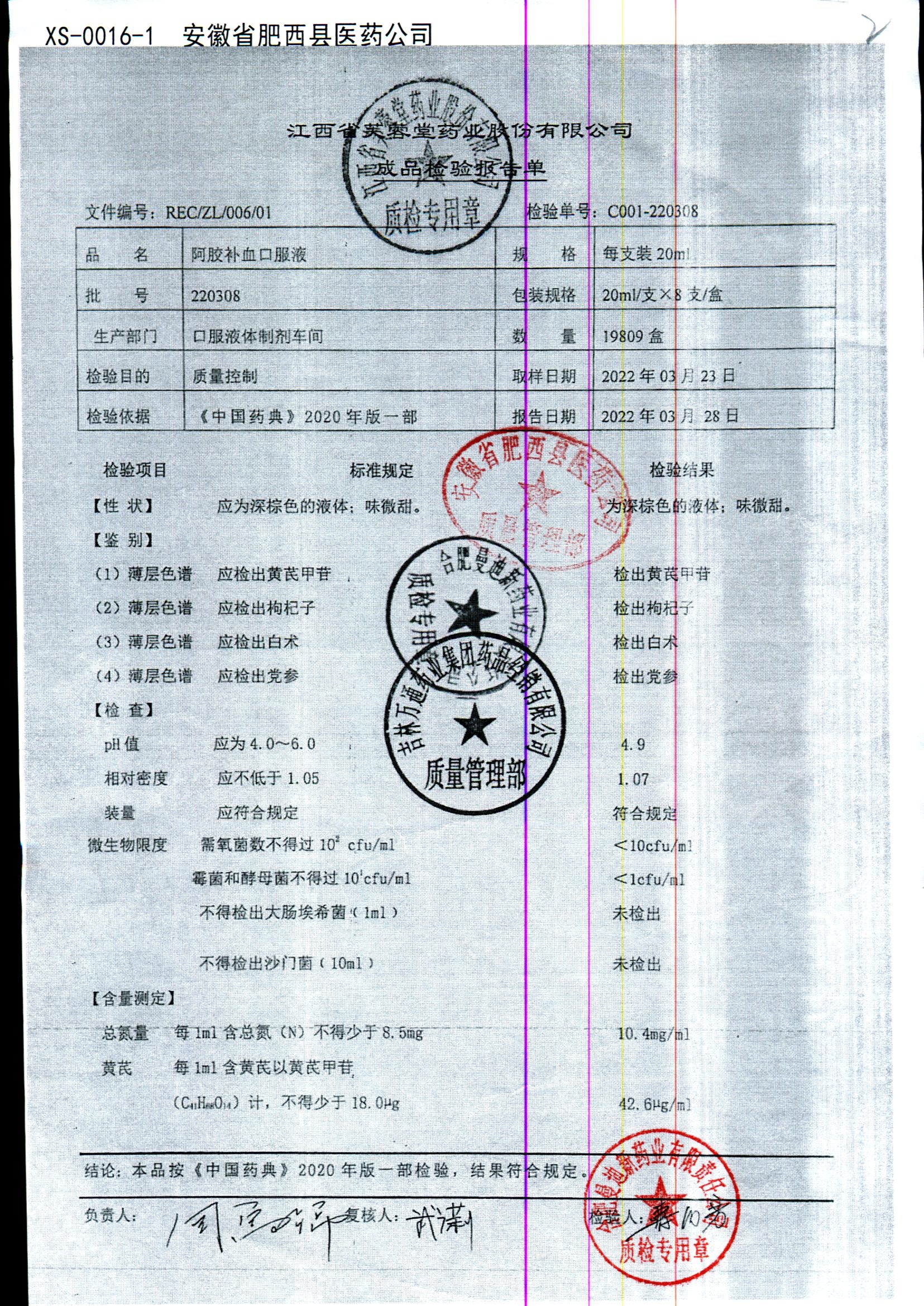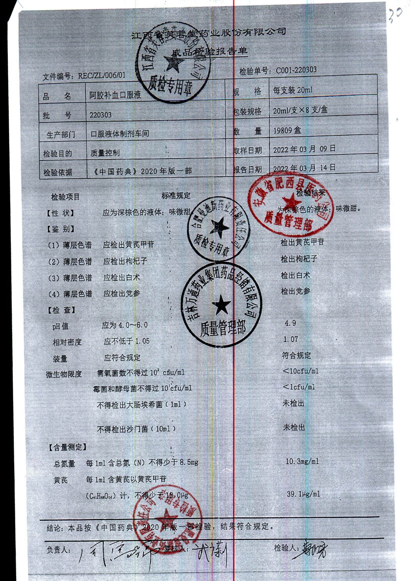 | 阿胶补血口服液 | 20ml*8支 | 220308 | 查看详情 |