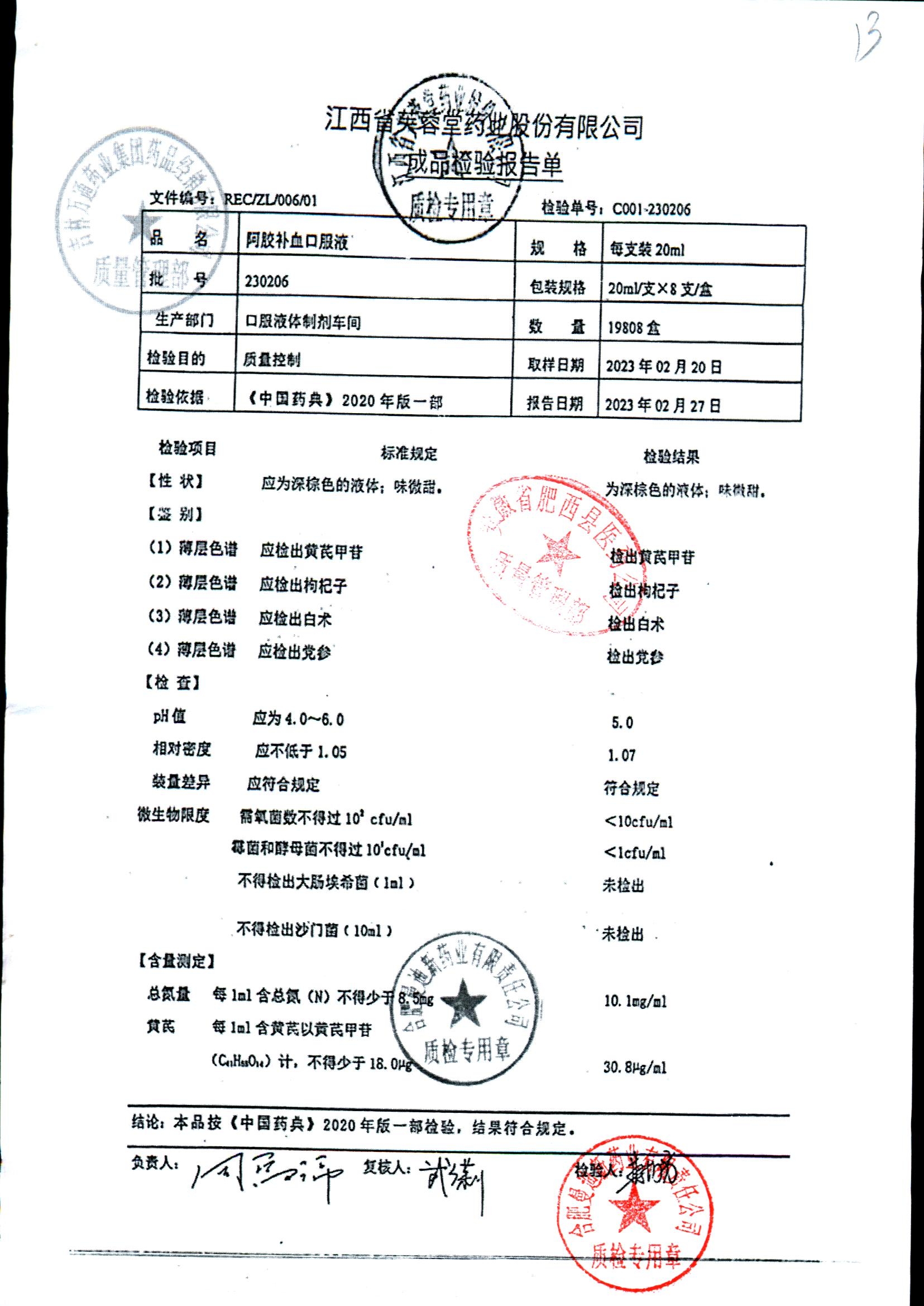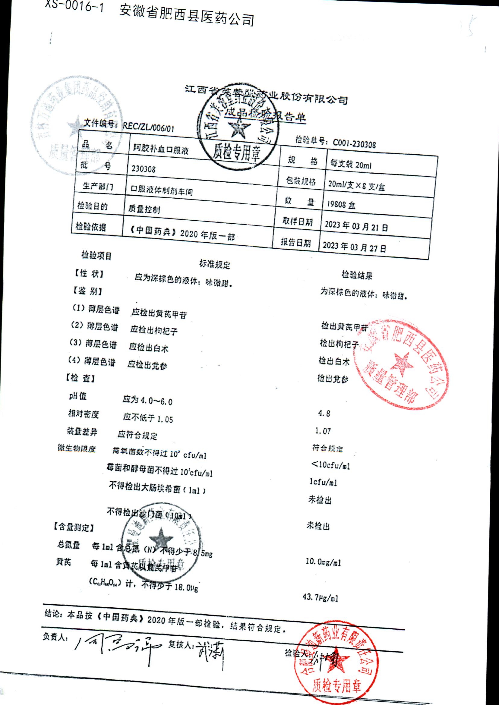 | 阿胶补血口服液 | 20ml*8支 | 230308 | 查看详情 |