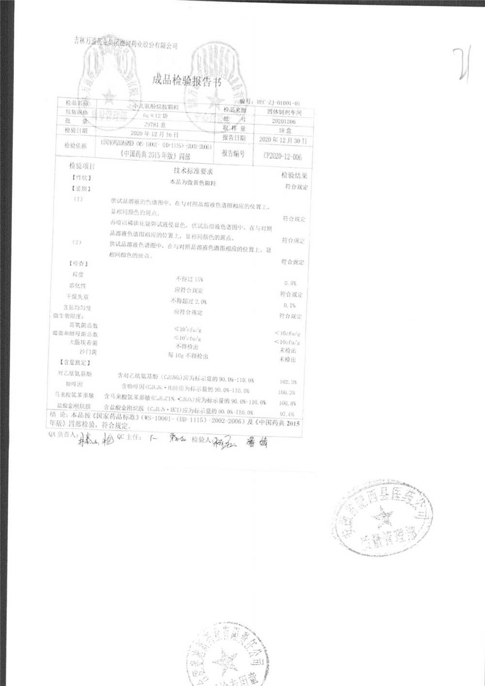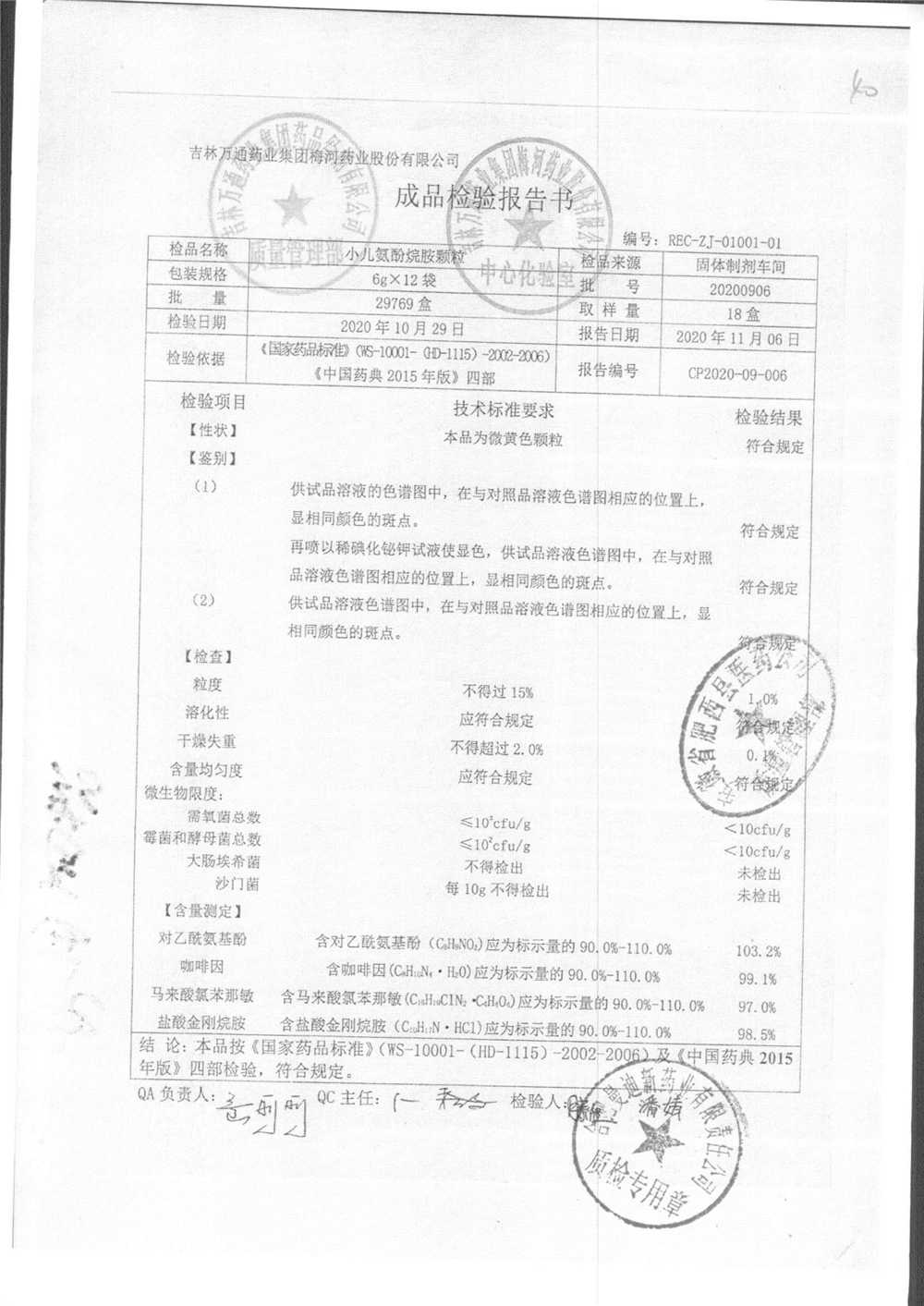 | 小儿氨酚烷胺颗粒 | 6g*12袋 | 20201113 | 查看详情 |