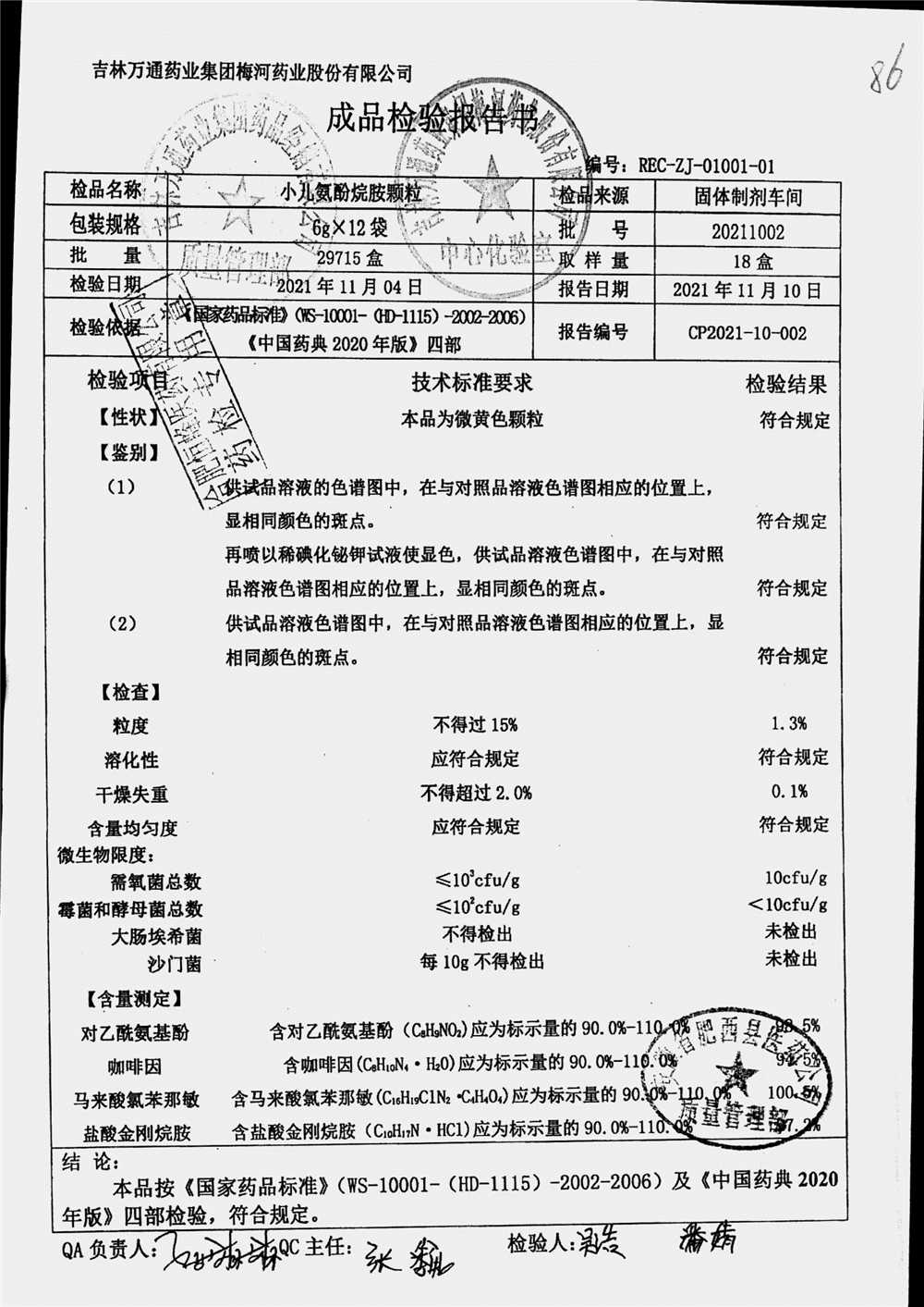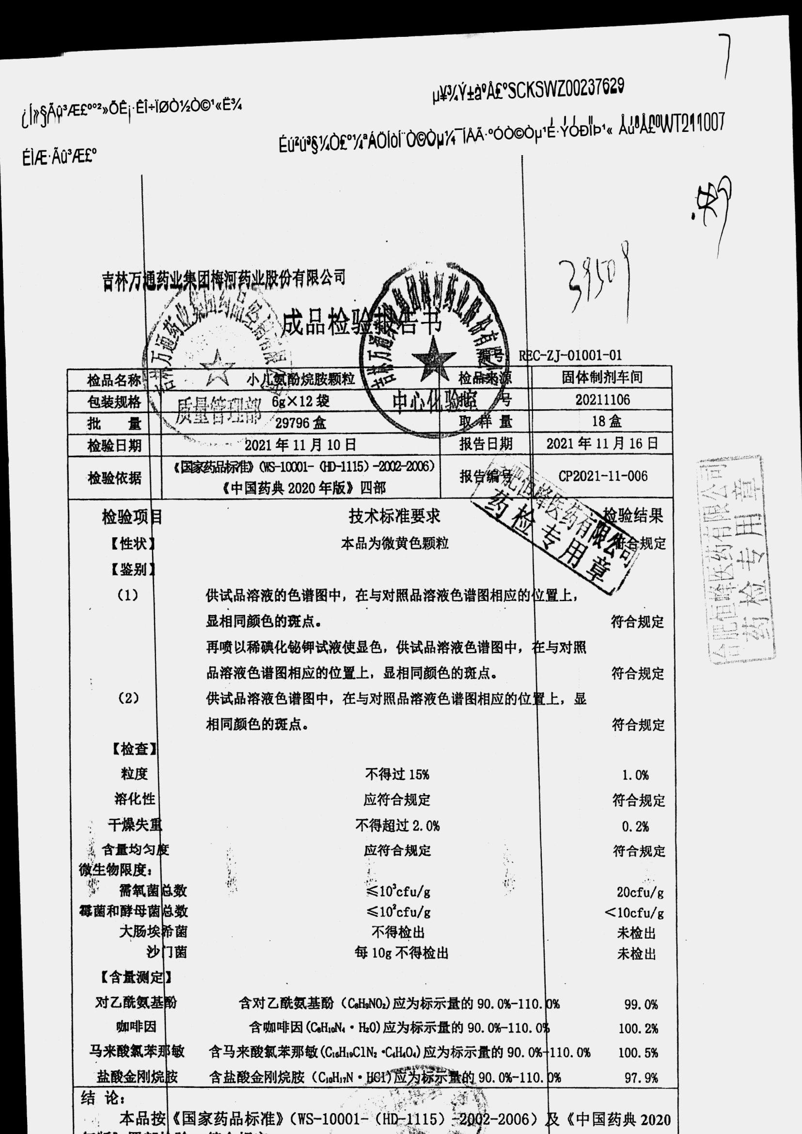 | 小儿氨酚烷胺颗粒 | 6g*12袋 | 20211106 | 查看详情 |