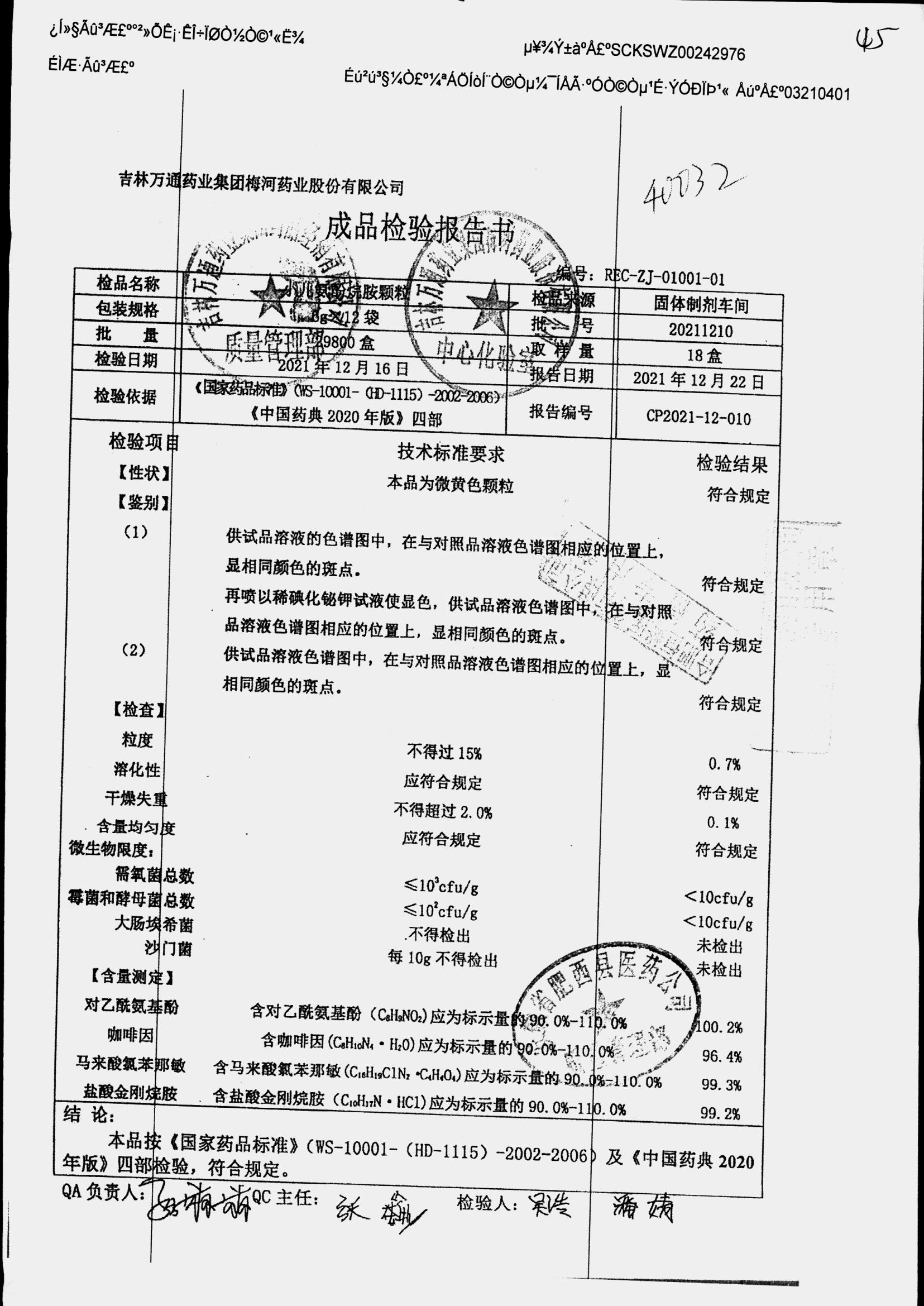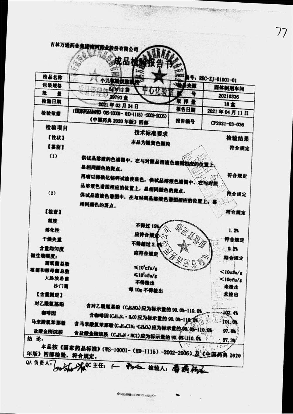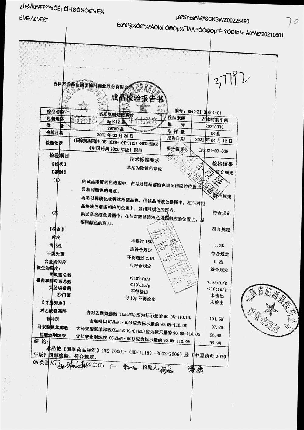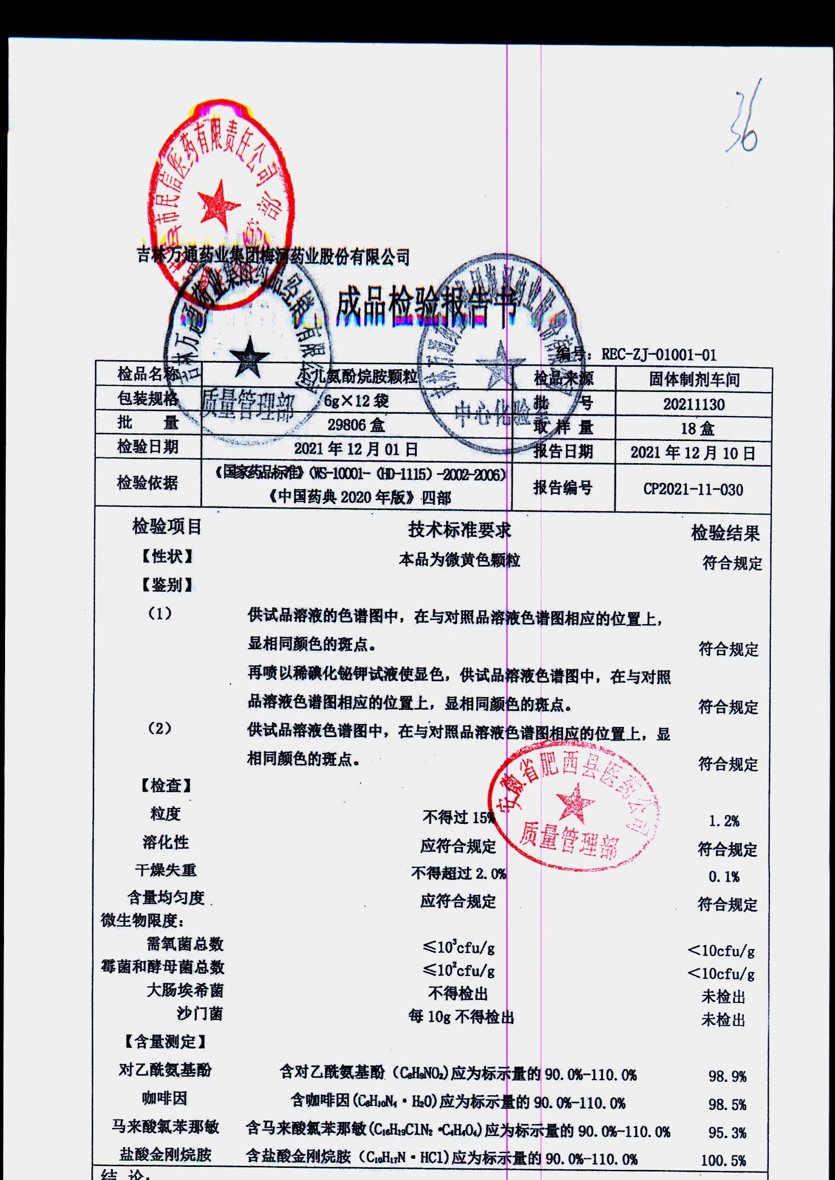 | 小儿氨酚烷胺颗粒 | 6g*12袋 | 20211210 | 查看详情 |