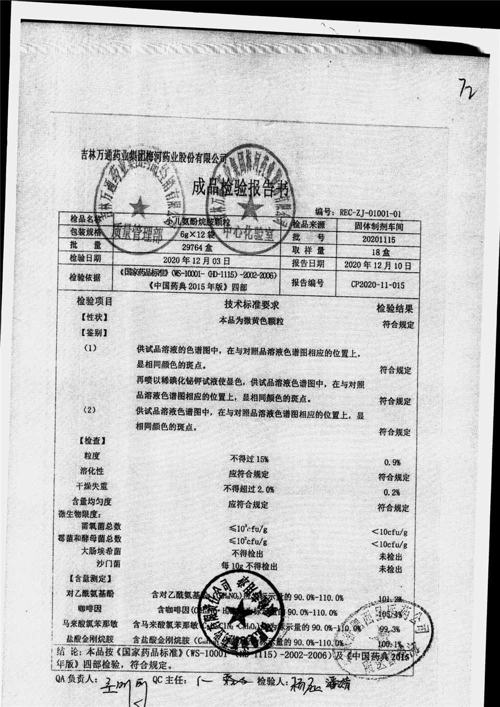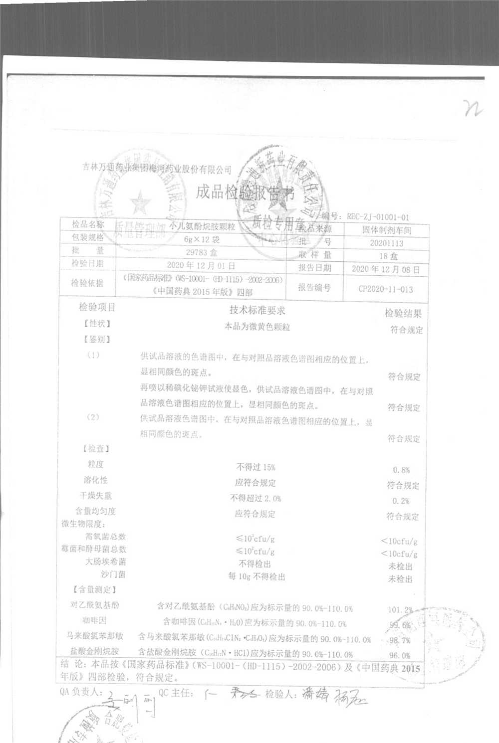 | 小儿氨酚烷胺颗粒 | 6g*12袋 | 20201115 | 查看详情 |
