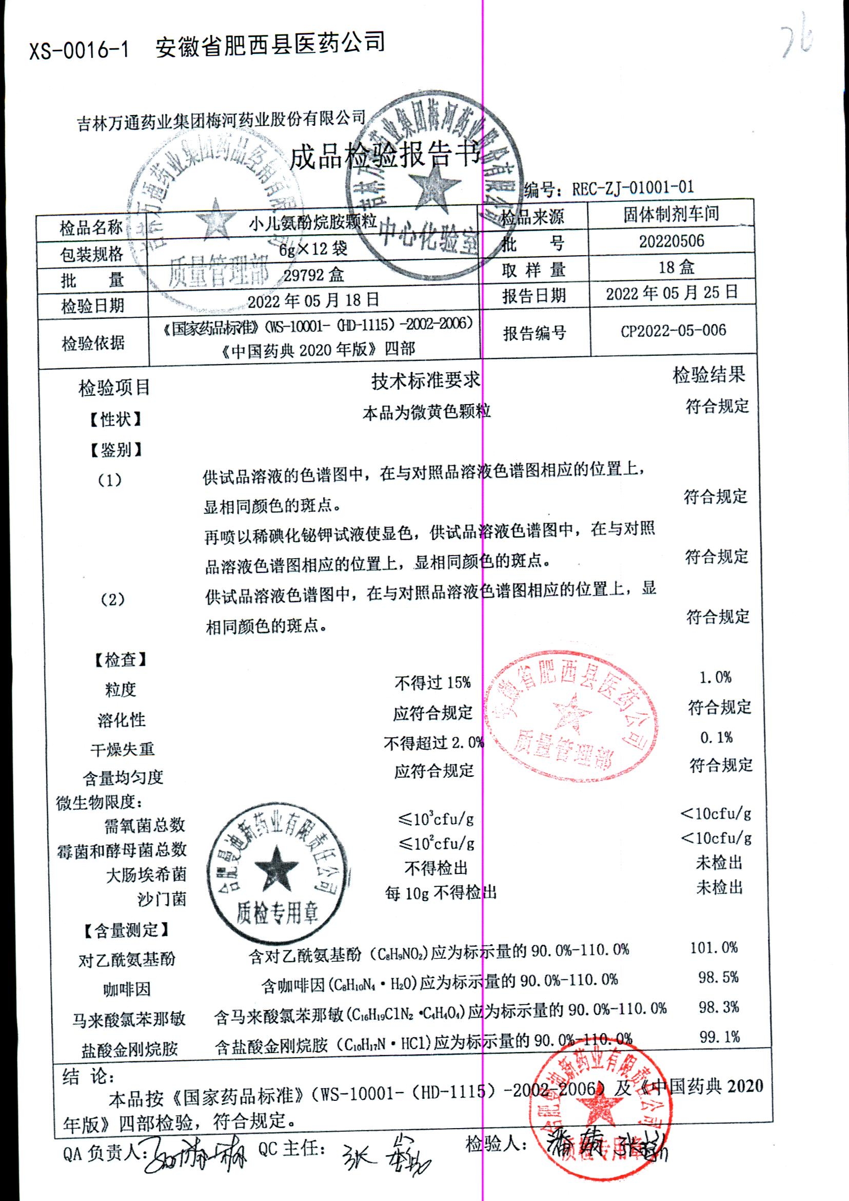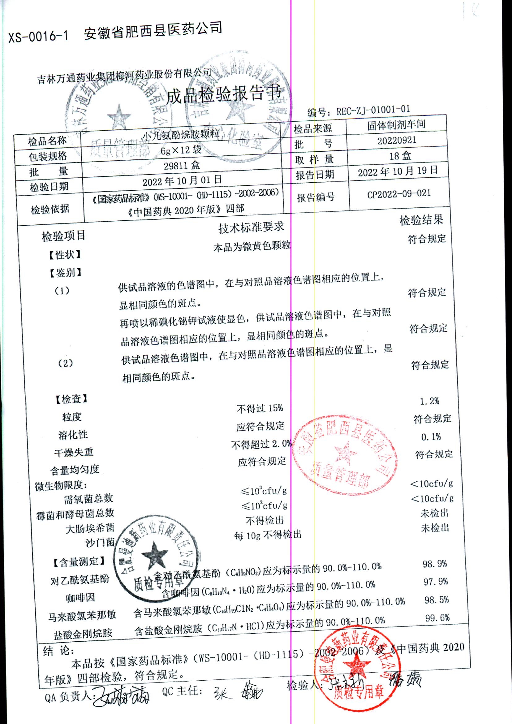 | 小儿氨酚烷胺颗粒 | 6g*12袋 | 20220506 | 查看详情 |