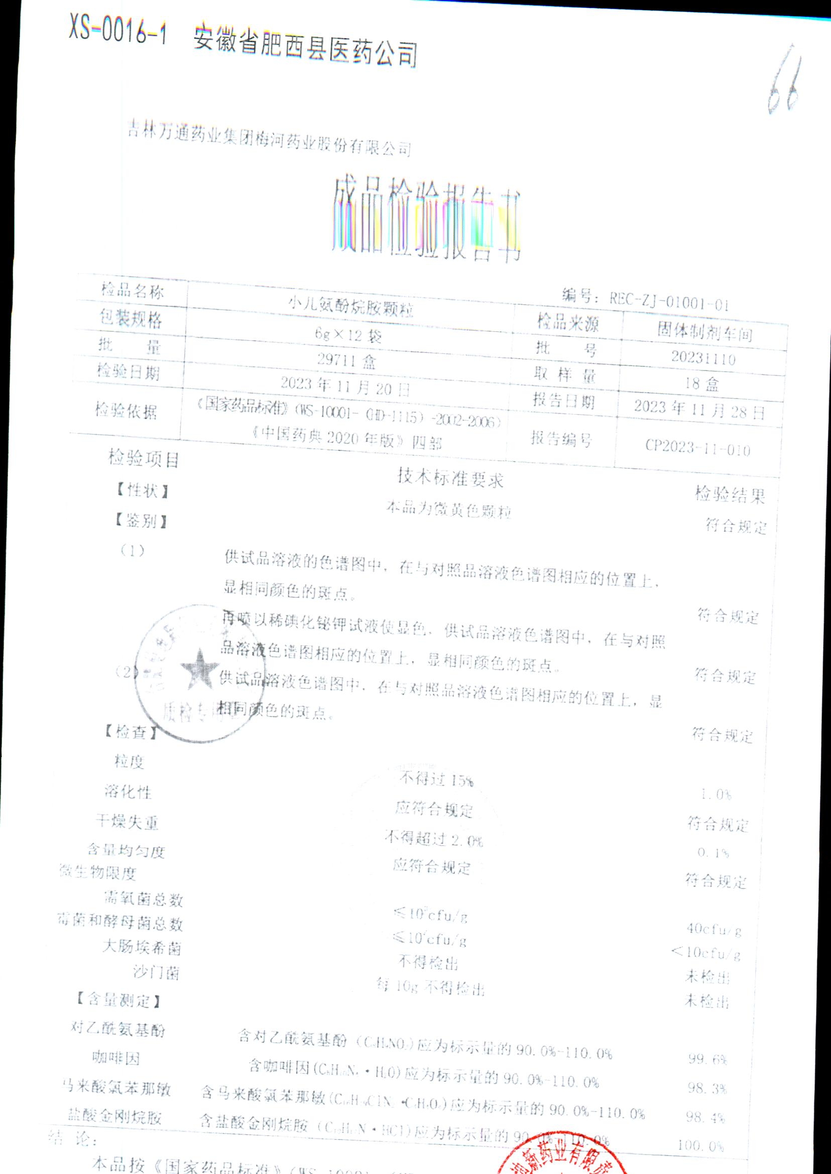 | 小儿氨酚烷胺颗粒 | 6g*12袋 | 20231110 | 查看详情 |