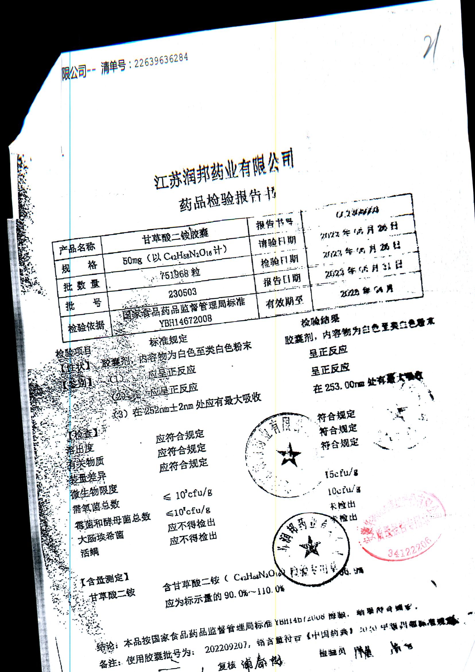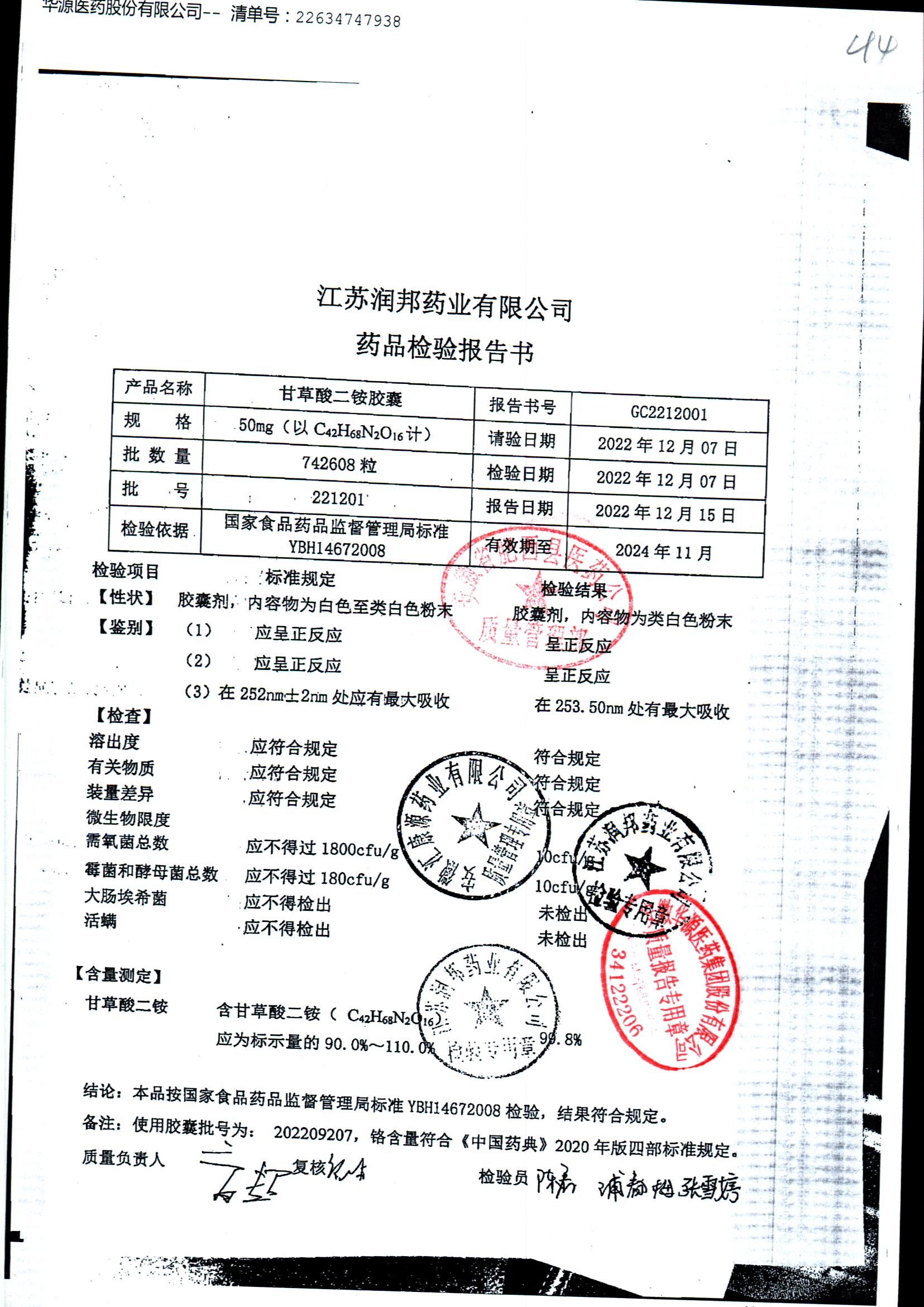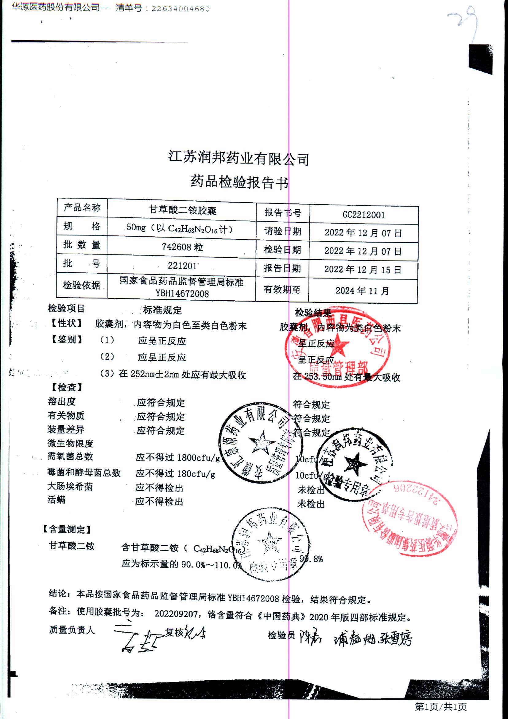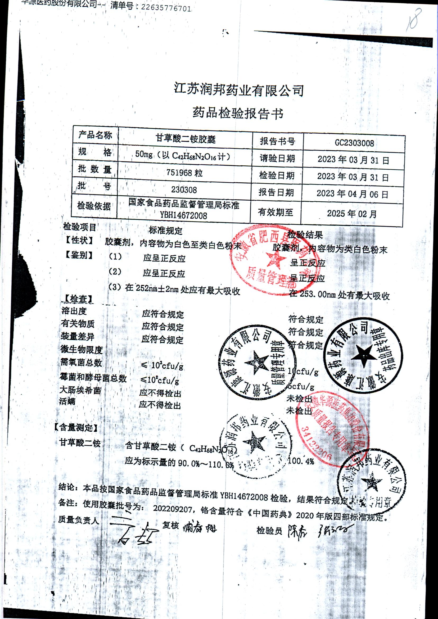 | 甘草酸二铵胶囊 | 50mg | 230308 | 查看详情 |