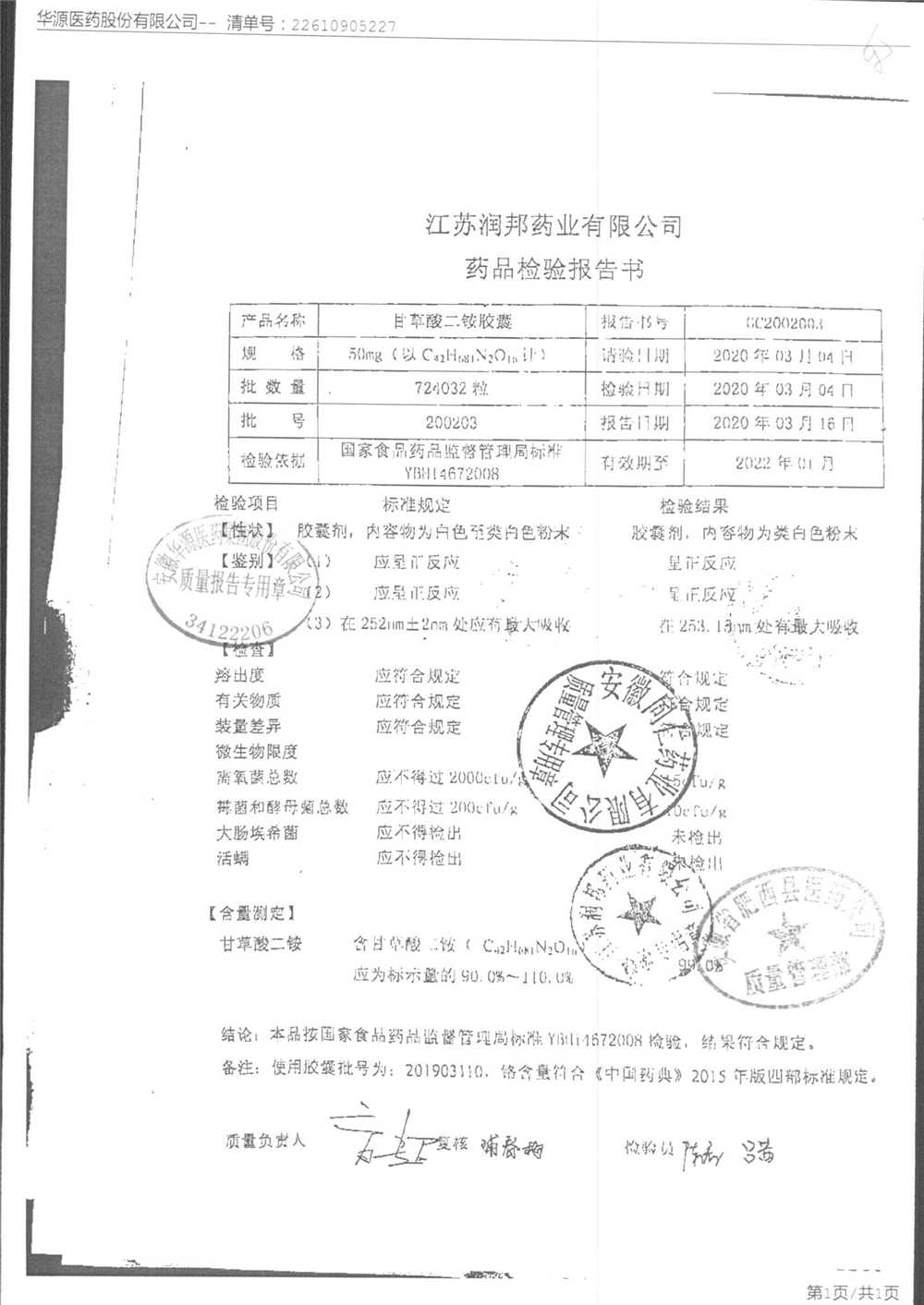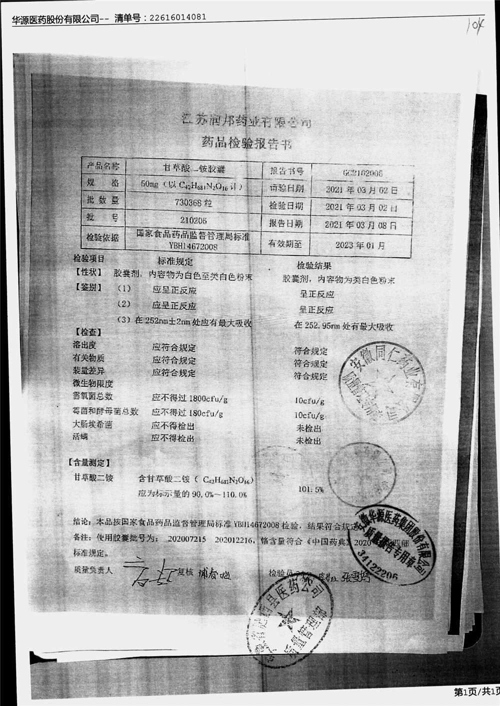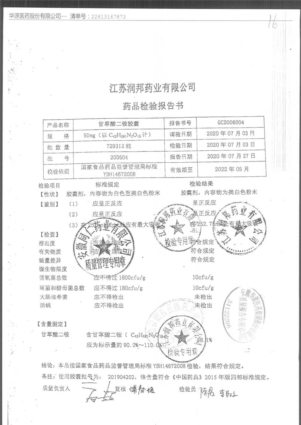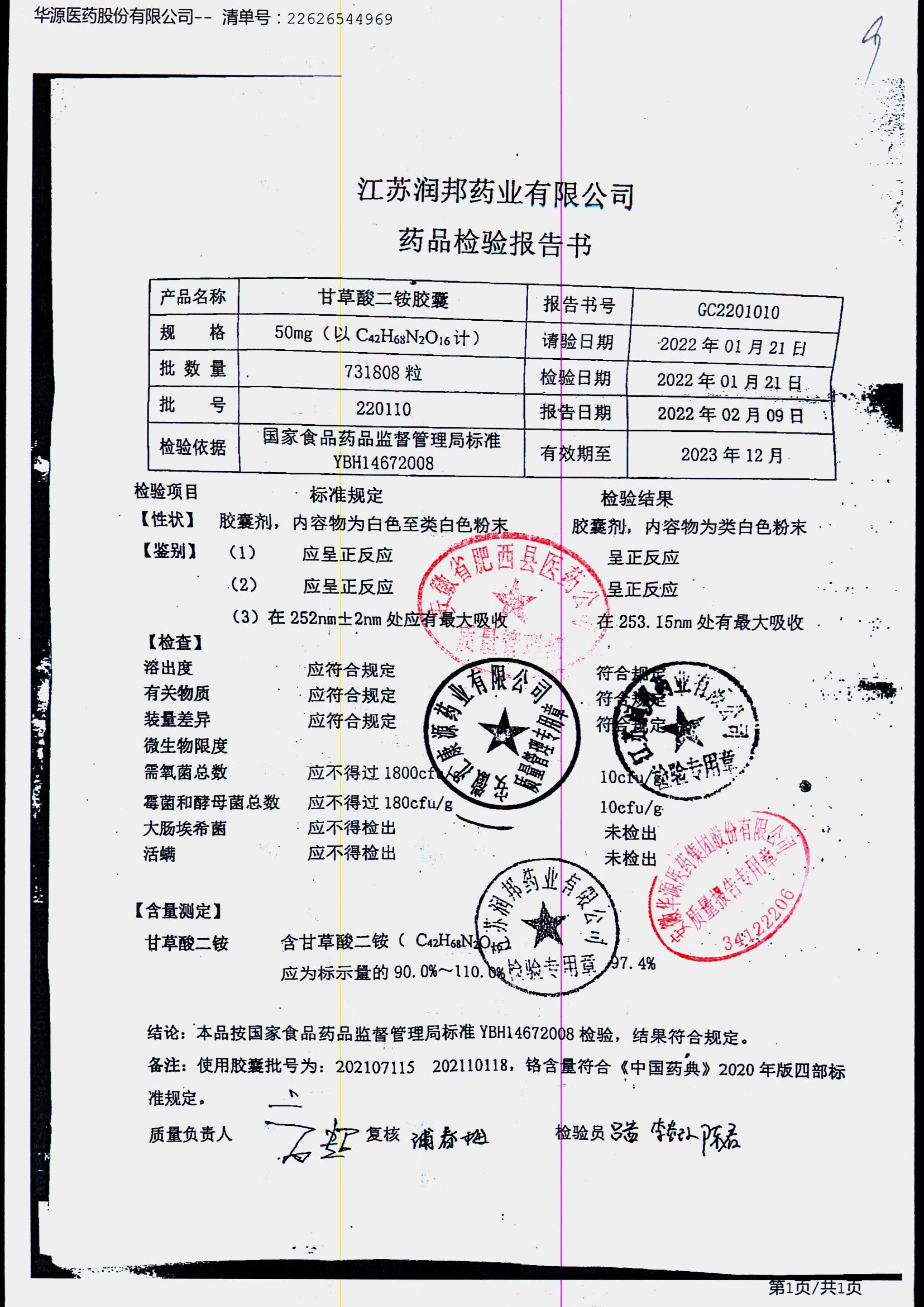 | 甘草酸二铵胶囊 | 50mg | 230308 | 查看详情 |