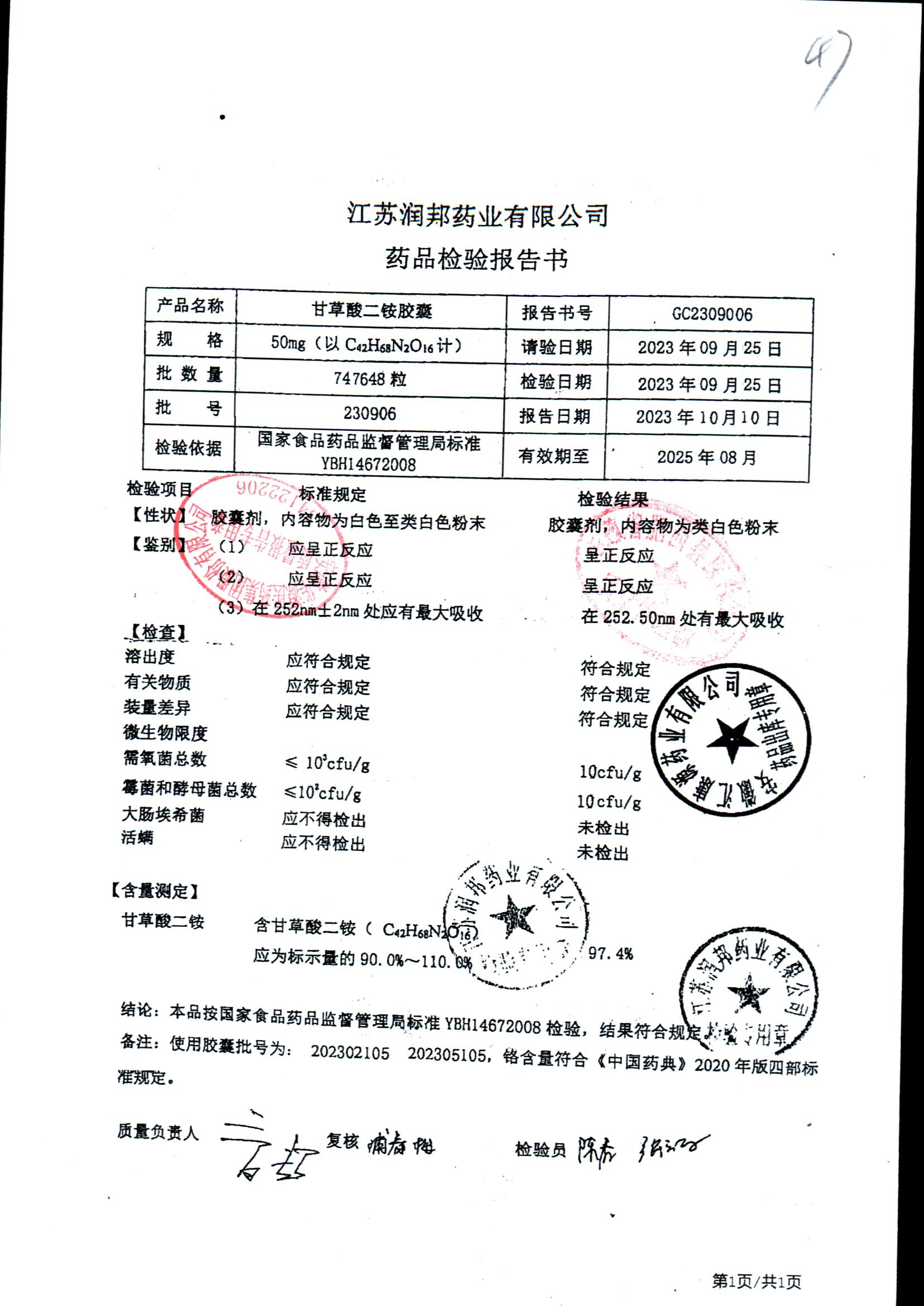 | 甘草酸二铵胶囊 | 50mg | 230906 | 查看详情 |