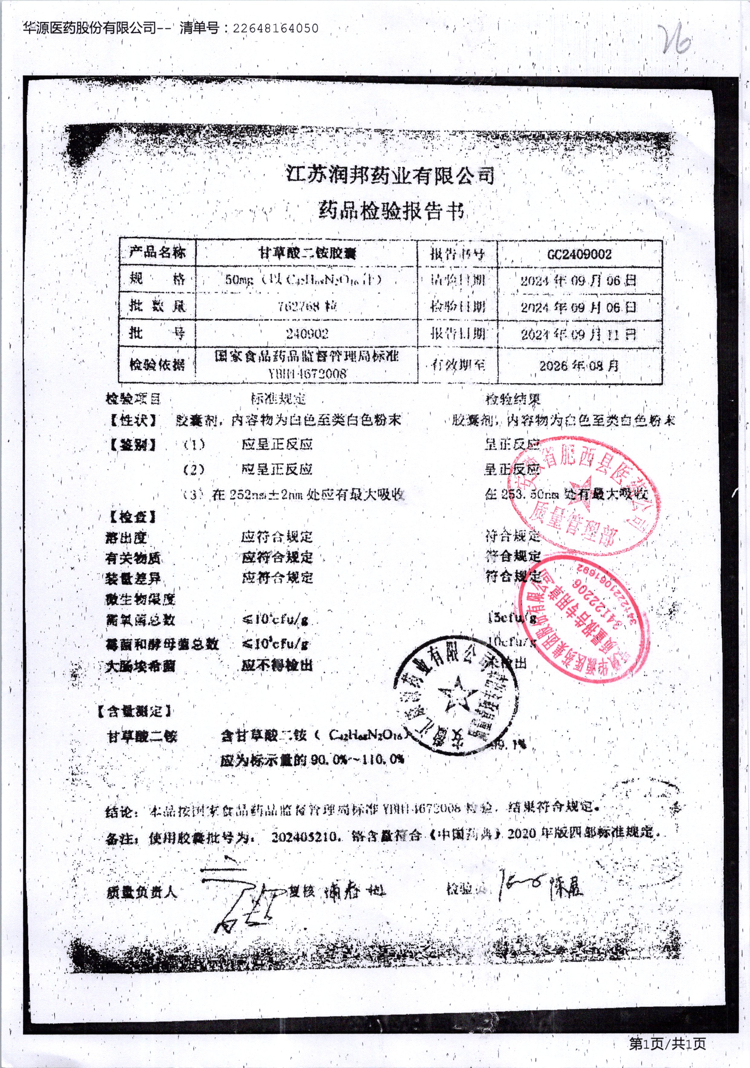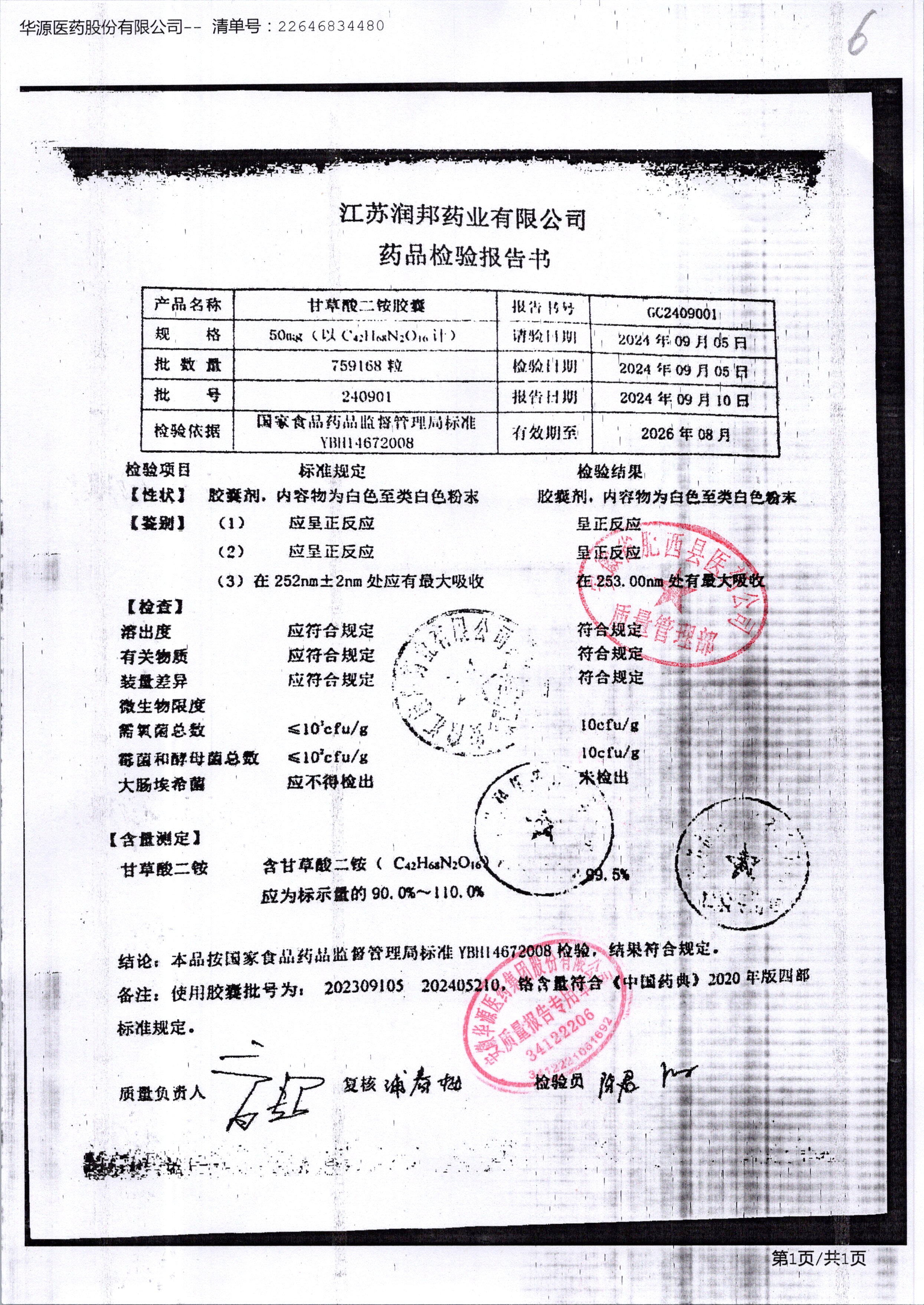 | 甘草酸二铵胶囊 | 50mg | 240901 | 查看详情 |