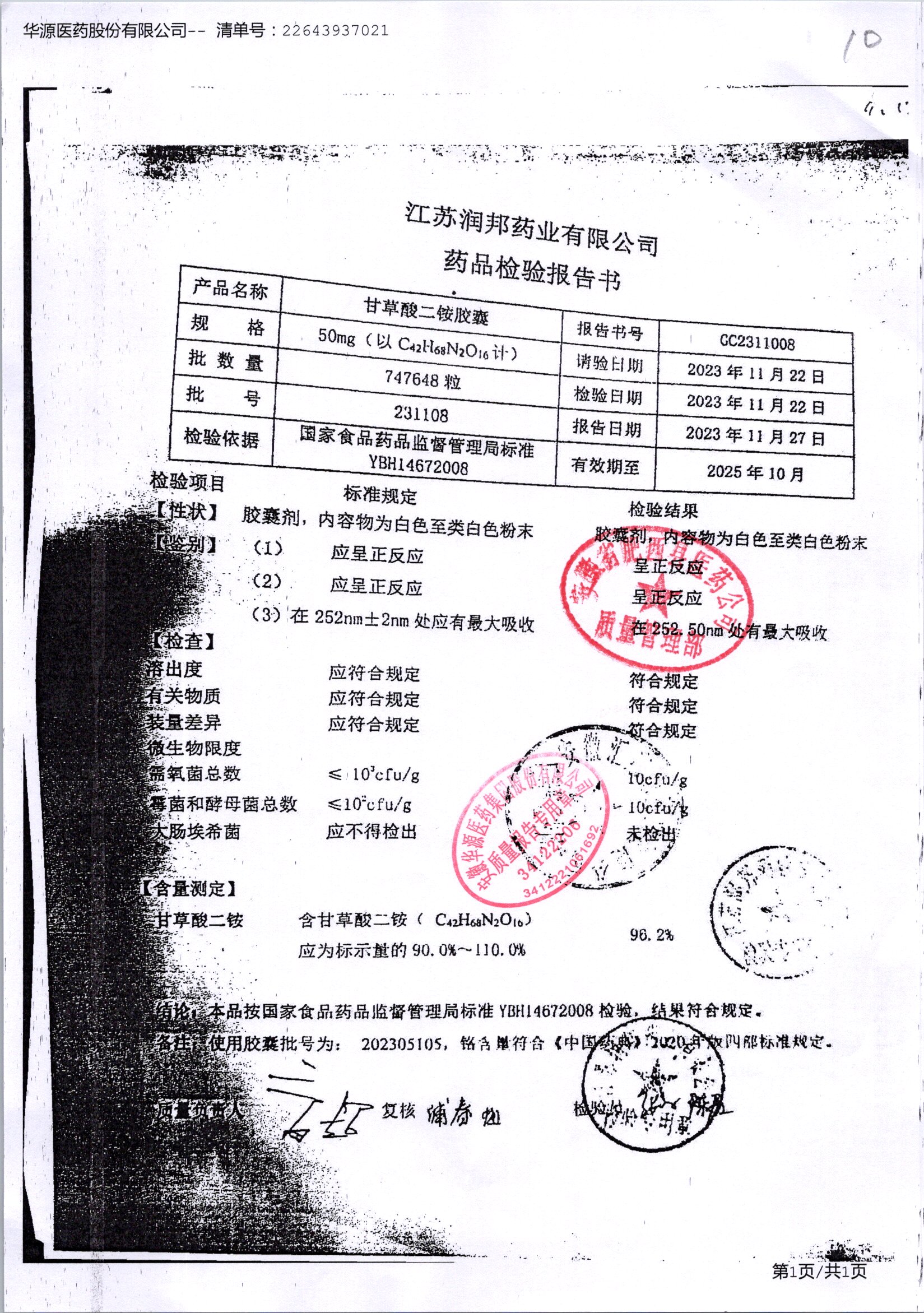 | 甘草酸二铵胶囊 | 50mg | 231108 | 查看详情 |