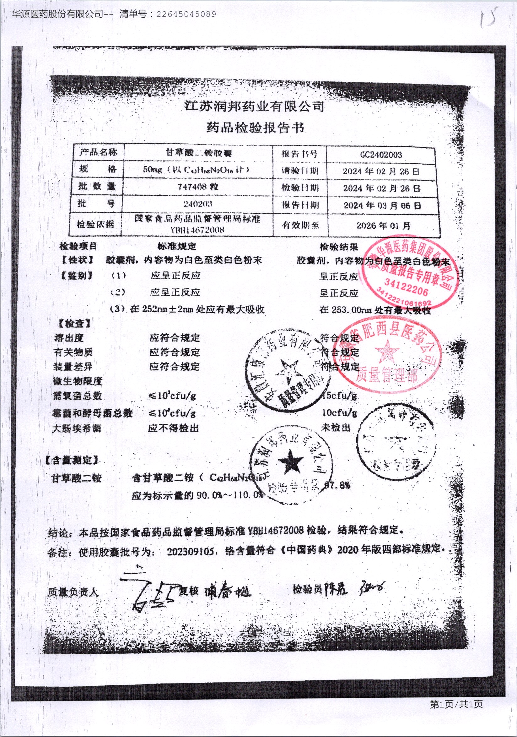 | 甘草酸二铵胶囊 | 50mg | 240203 | 查看详情 |