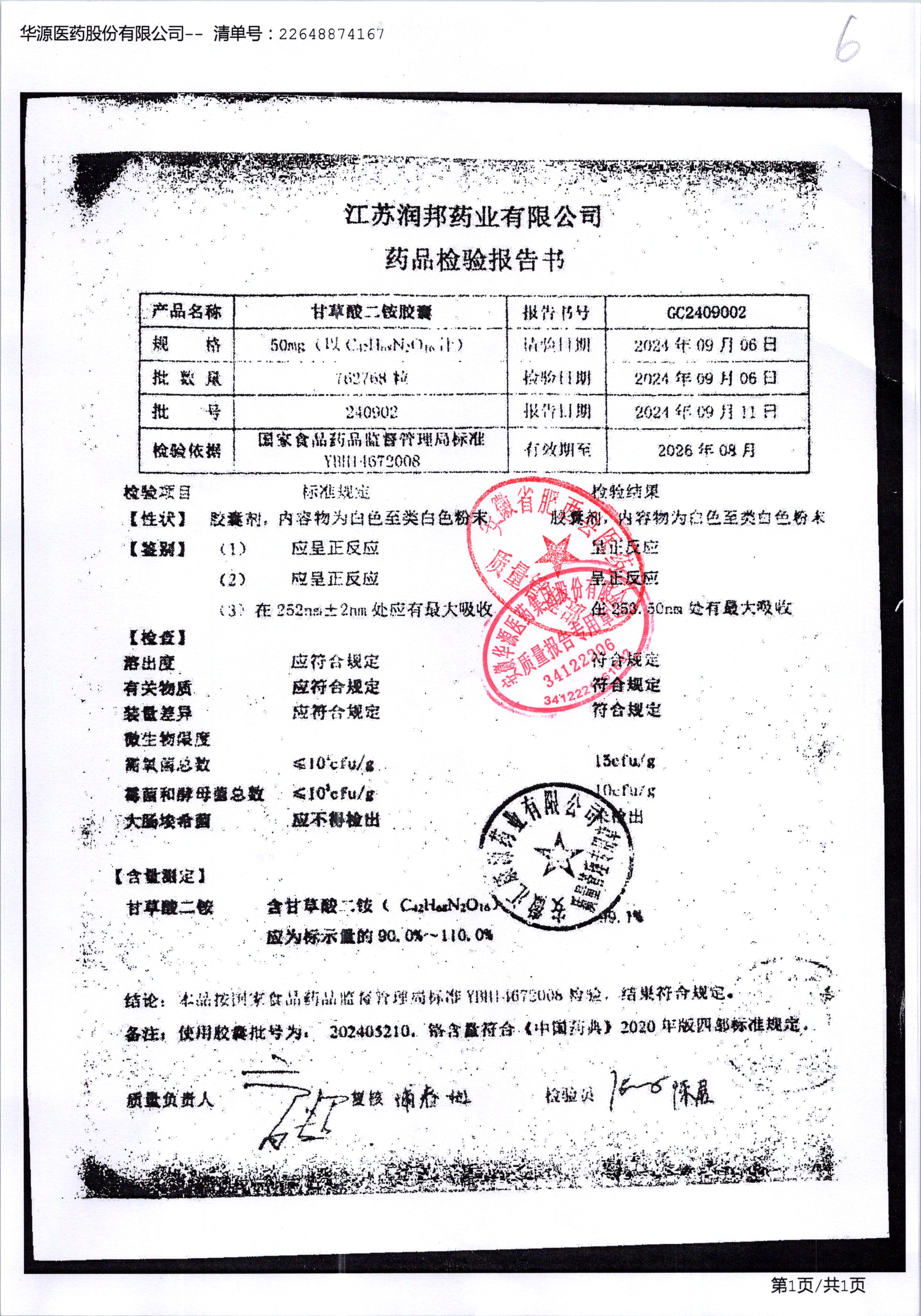 | 甘草酸二铵胶囊 | 50mg | 240902 | 查看详情 |