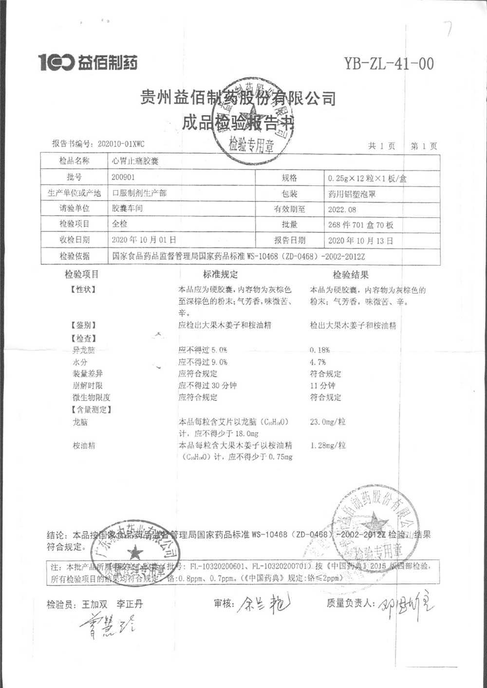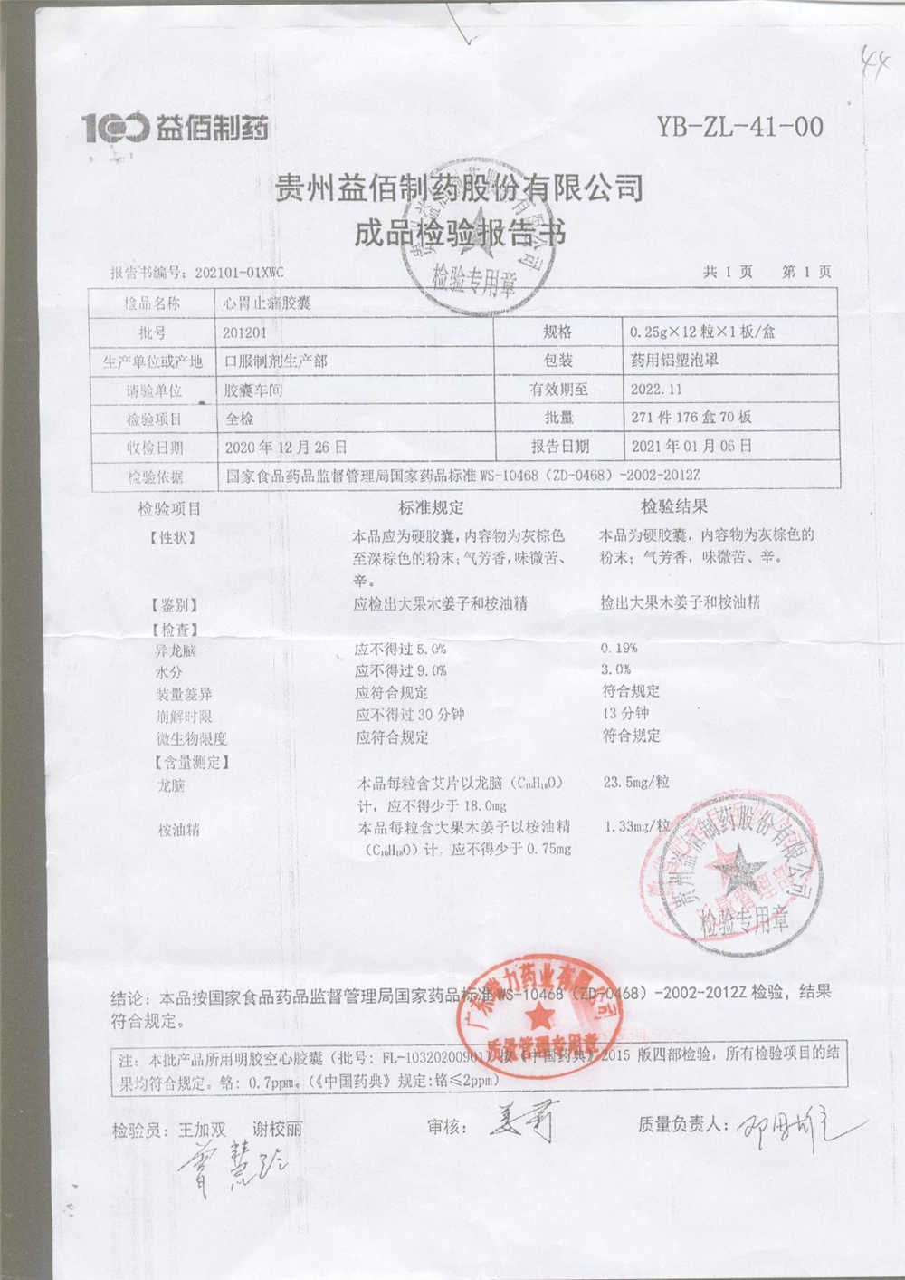 | 心胃止痛胶囊 | 0.25g*12s | 201201 | 查看详情 |