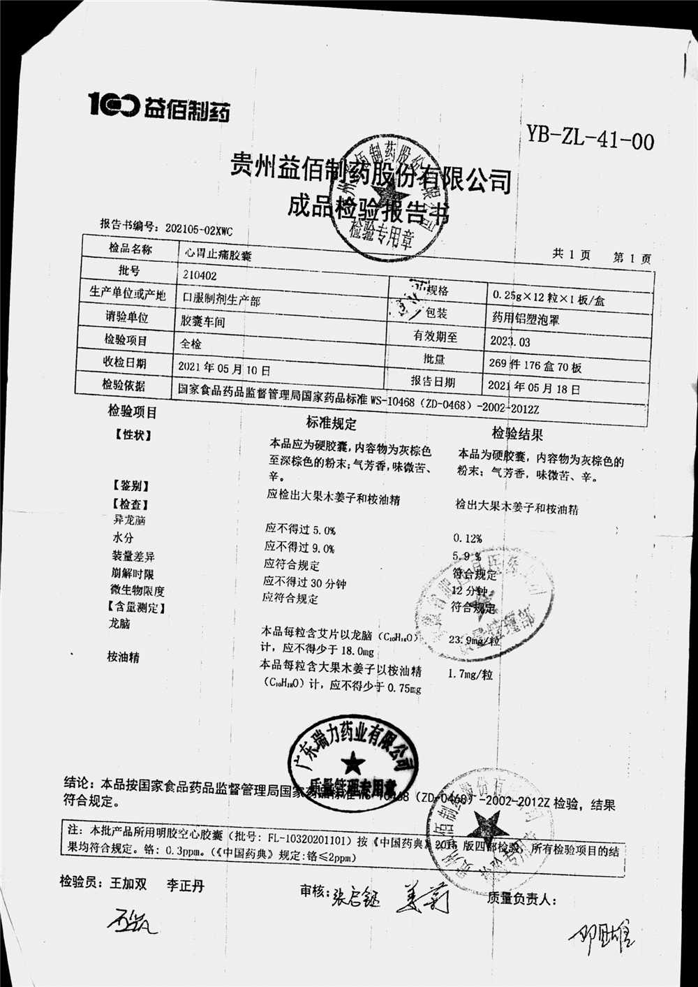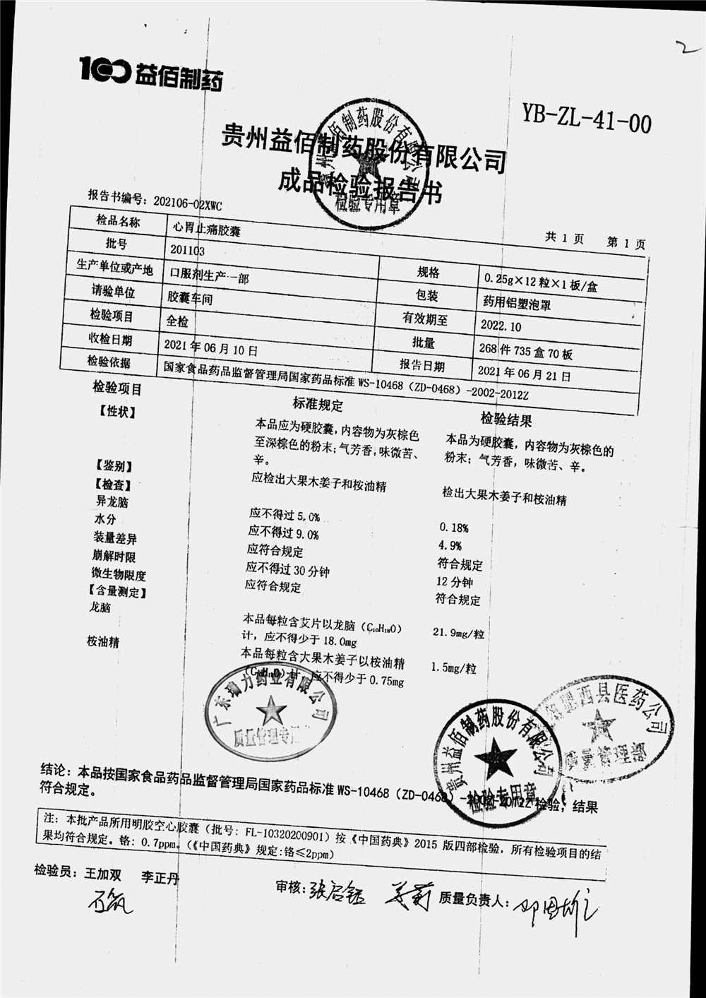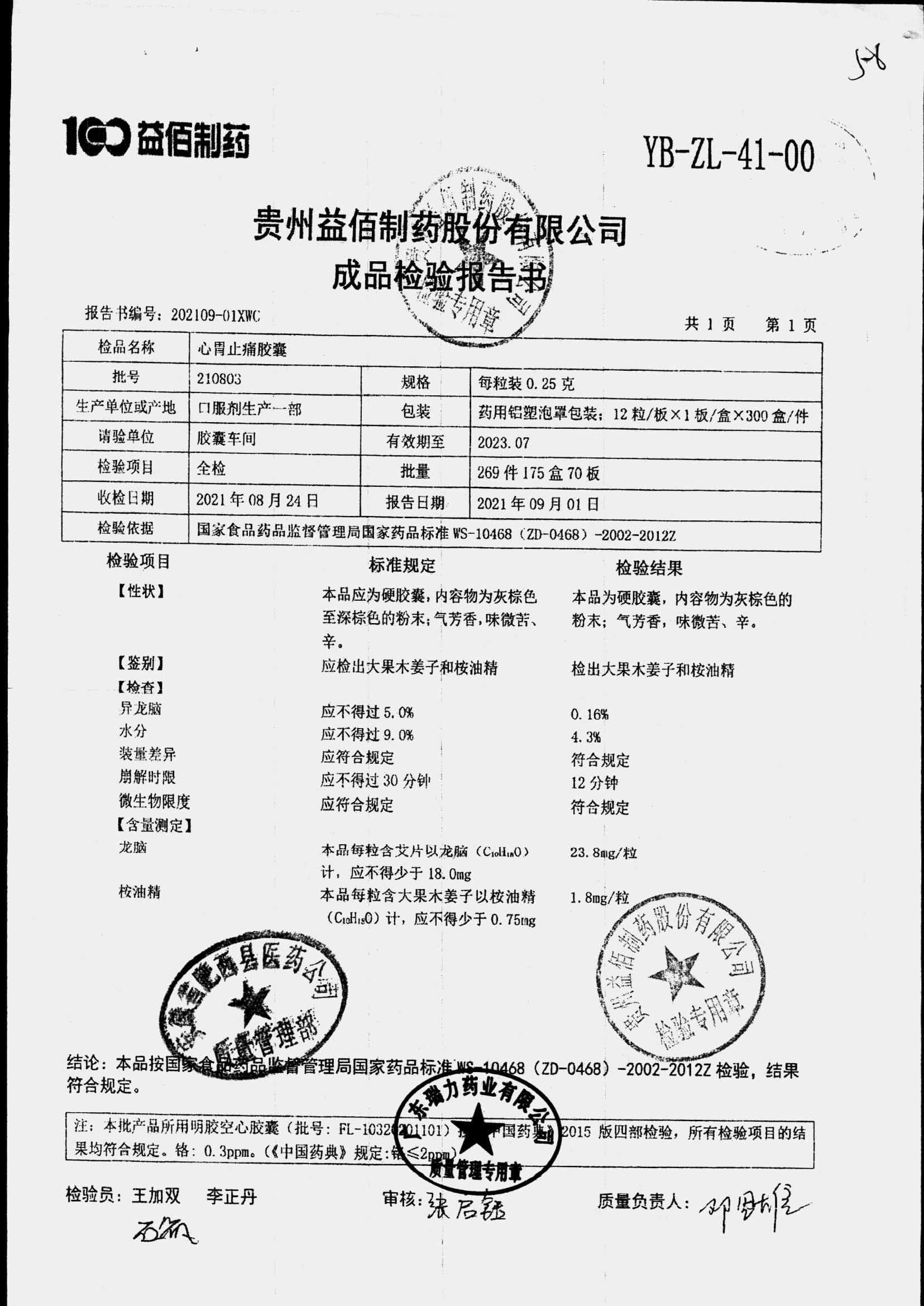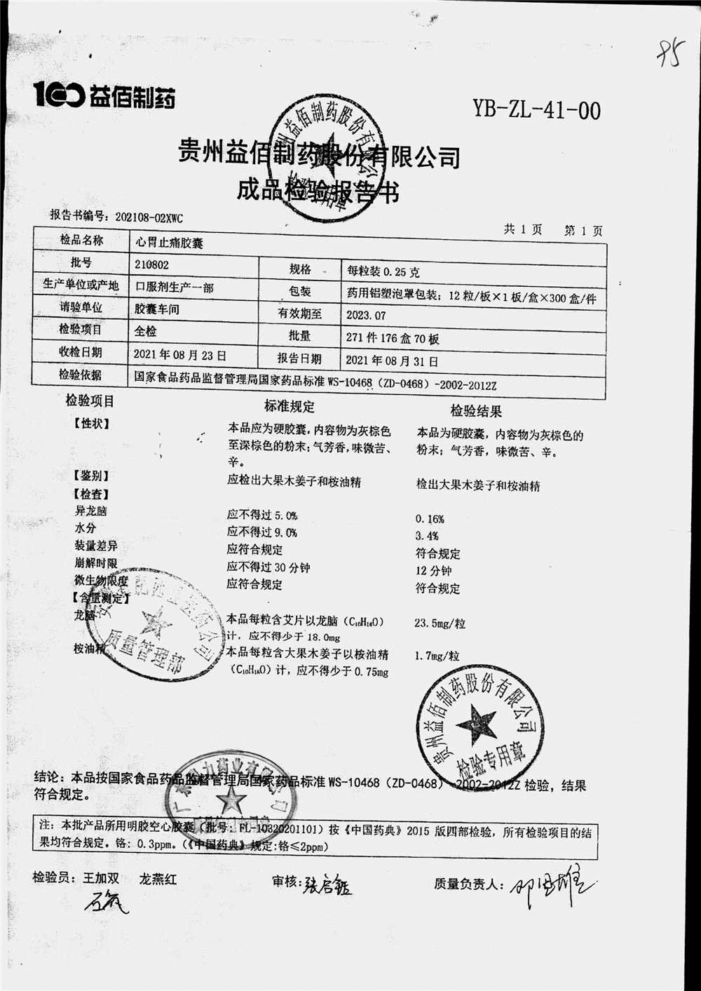 | 心胃止痛胶囊 | 0.25g*12s | 210803 | 查看详情 |
