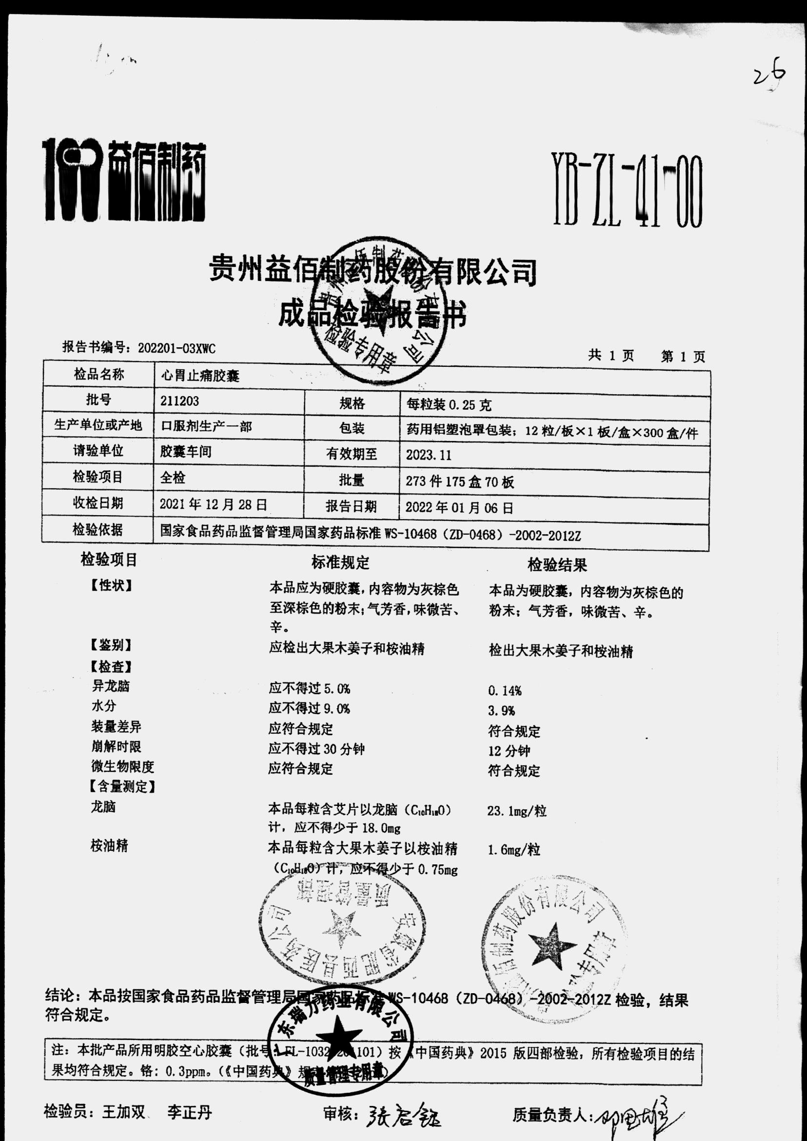 | 心胃止痛胶囊 | 0.25g*12s | 211203 | 查看详情 |