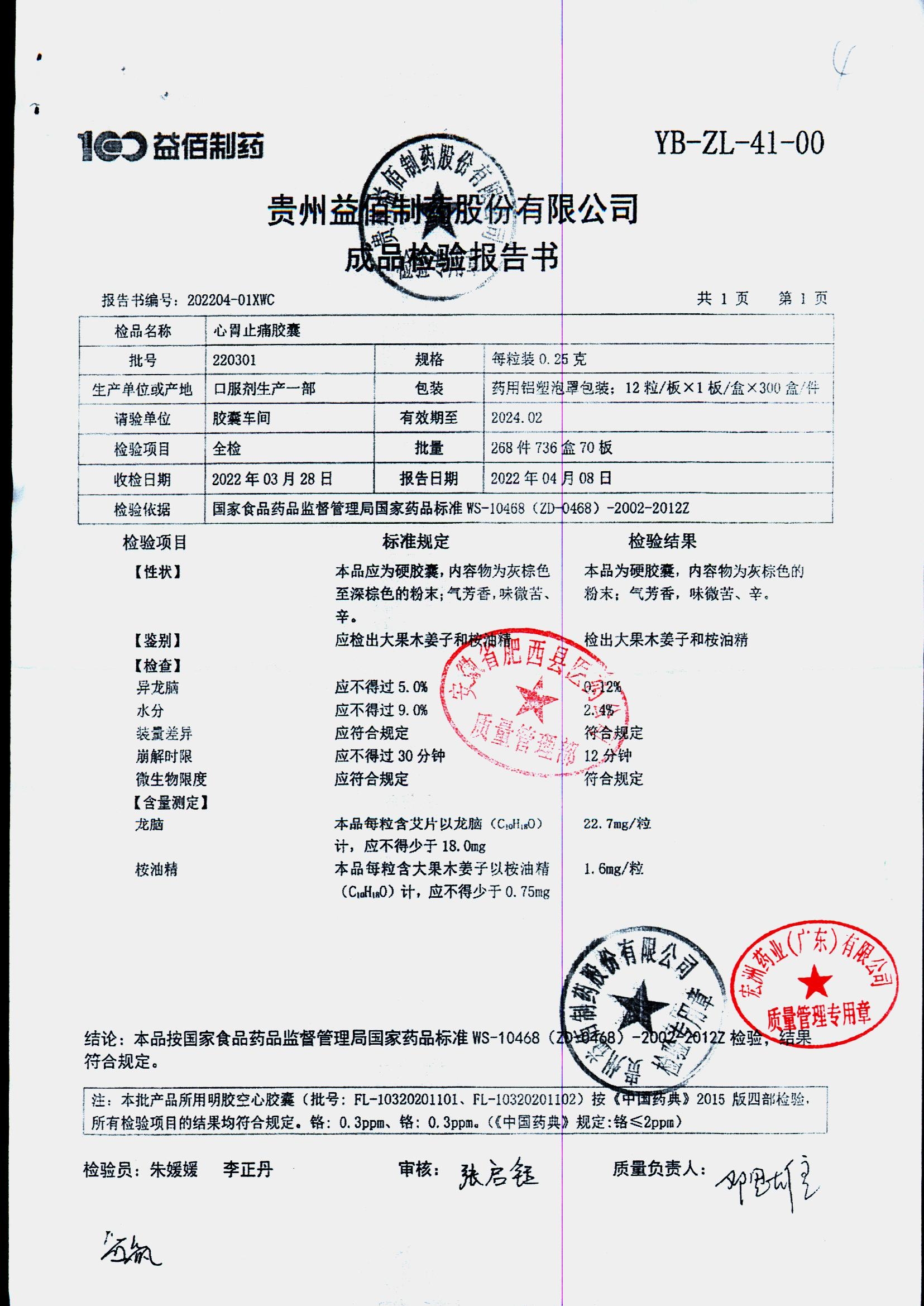 | 心胃止痛胶囊 | 0.25g*12s | 220301 | 查看详情 |