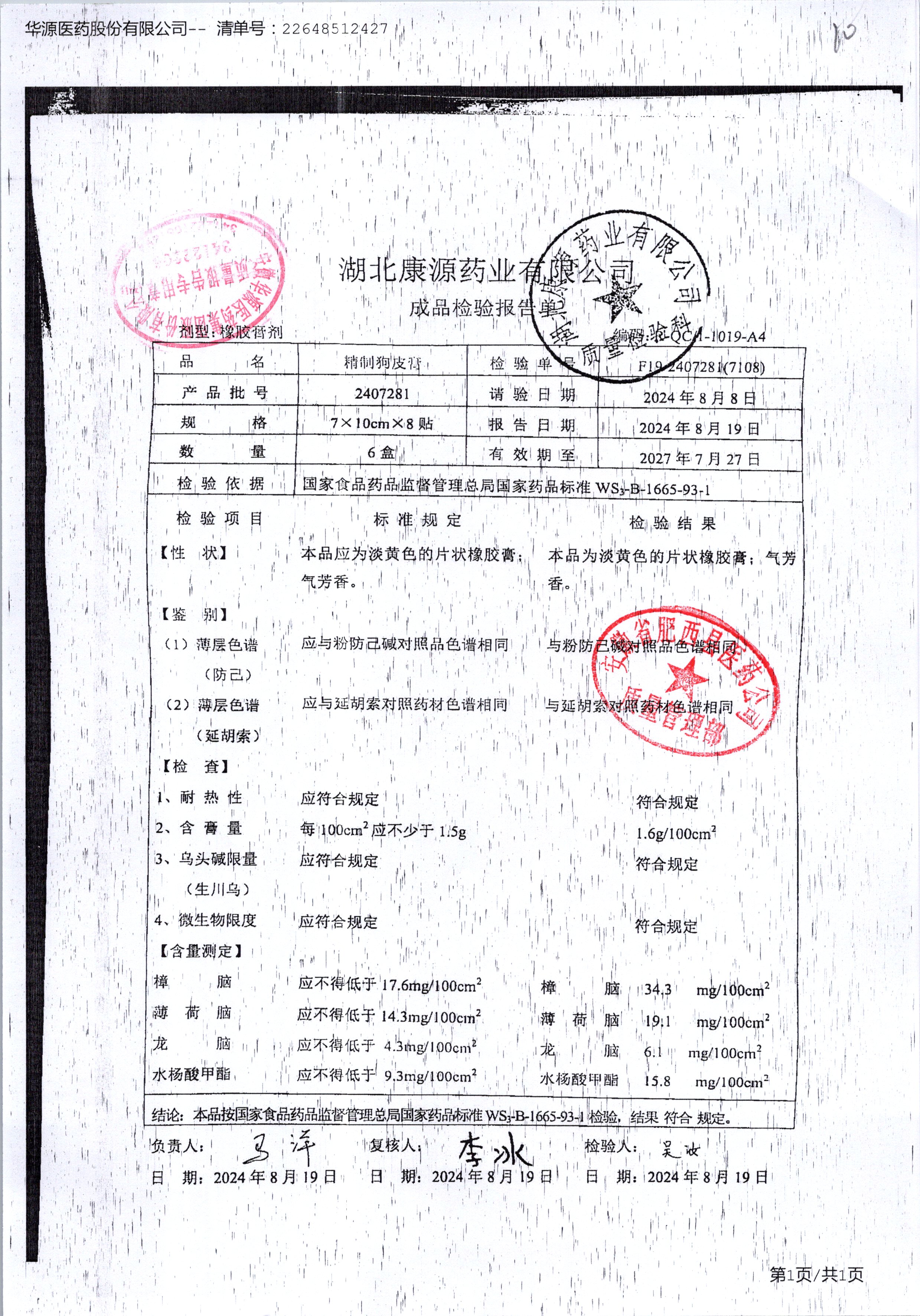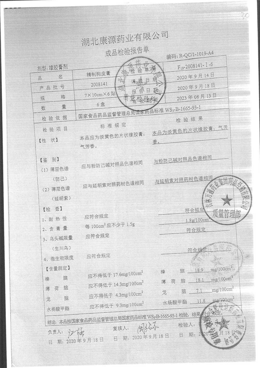 | 精制狗皮膏 | 7*10cm | 2008141 | 查看详情 |