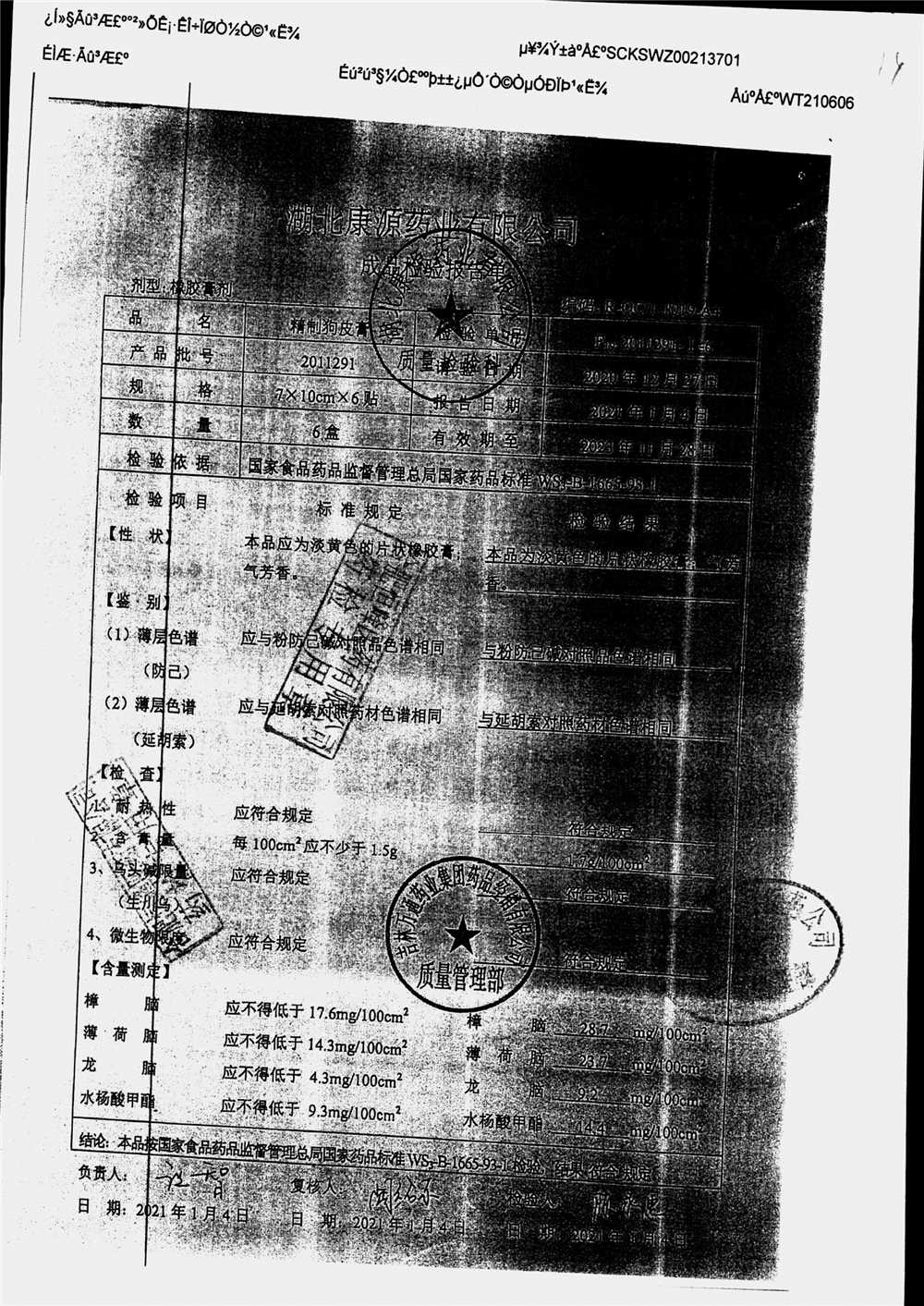 | 名称 | 规格 | 批号 | 药检报告 |