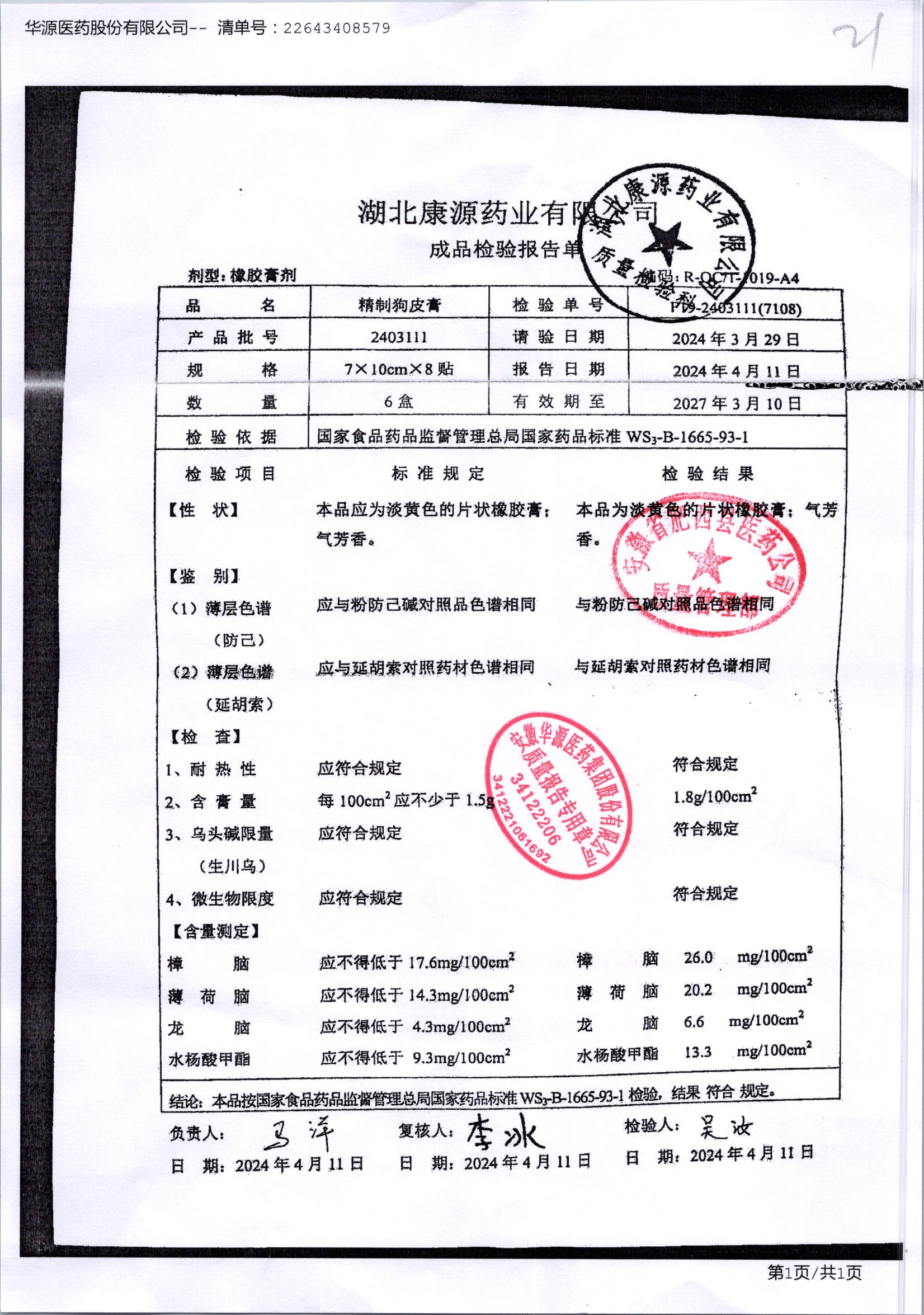 | 精制狗皮膏 | 7*10cm | 2105071 | 查看详情 |