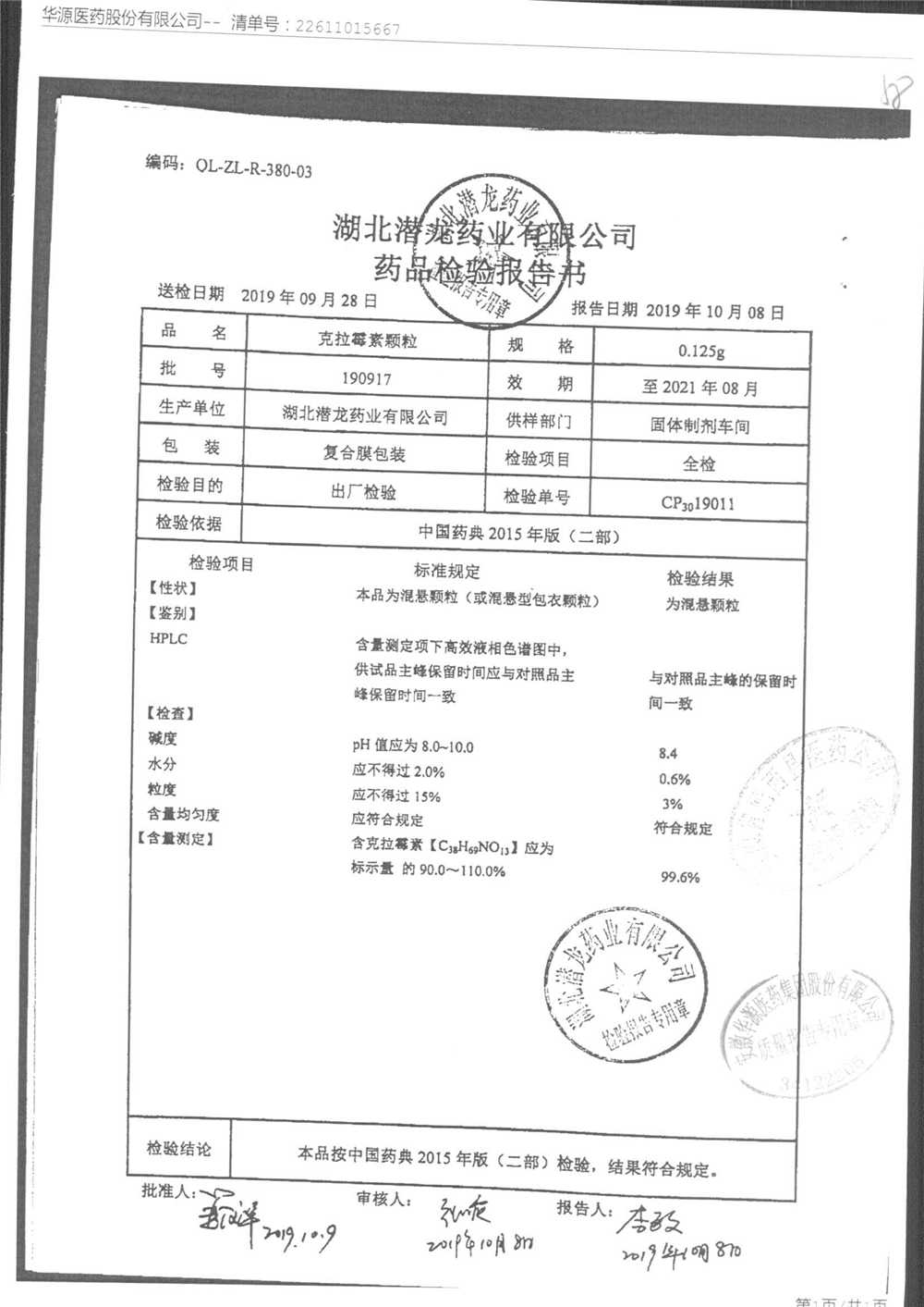 药检报告