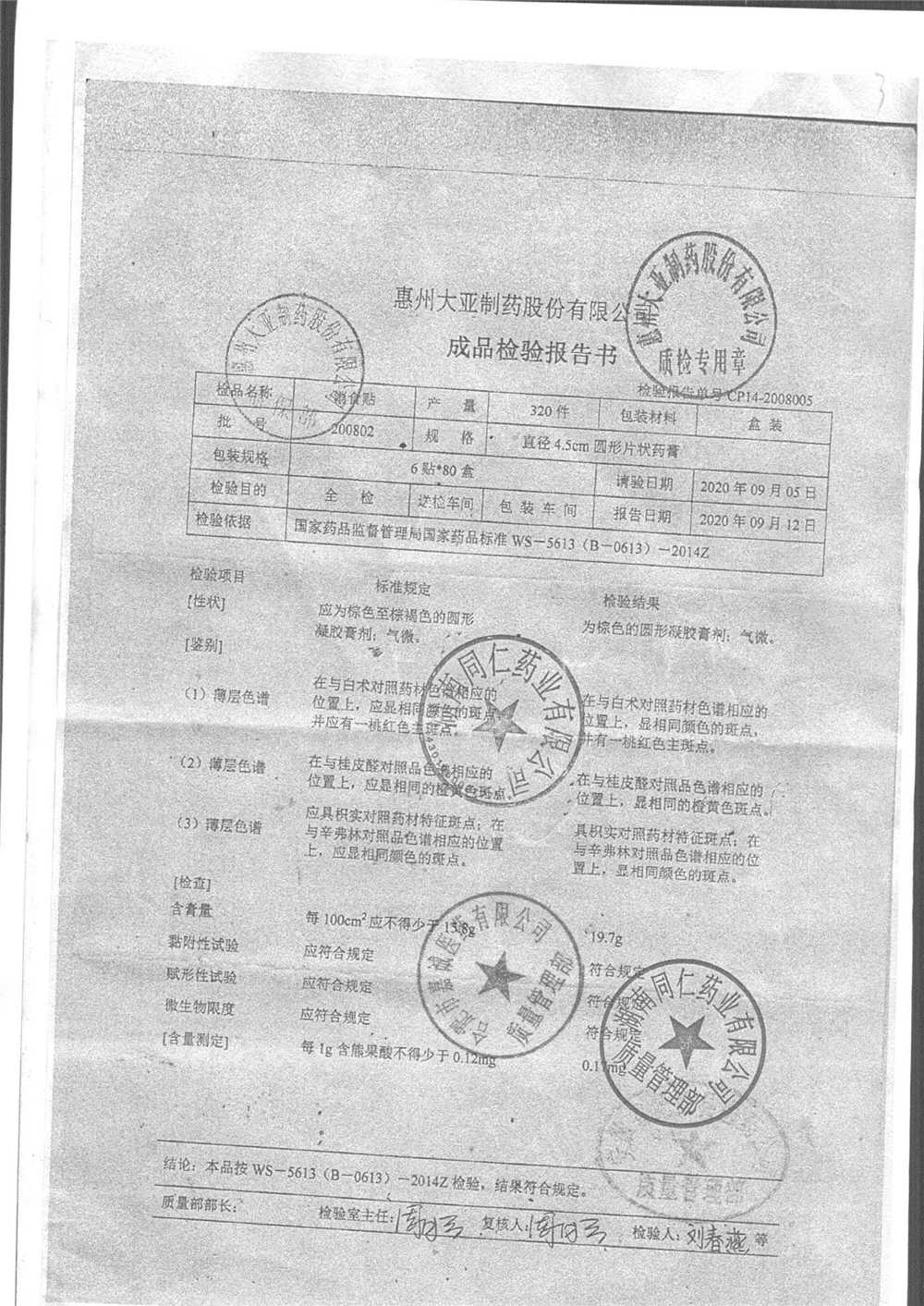 药检报告