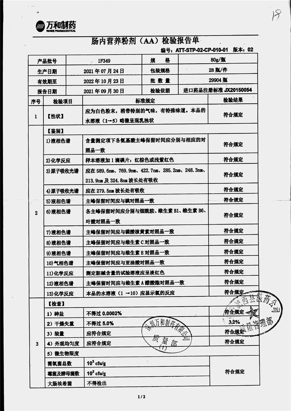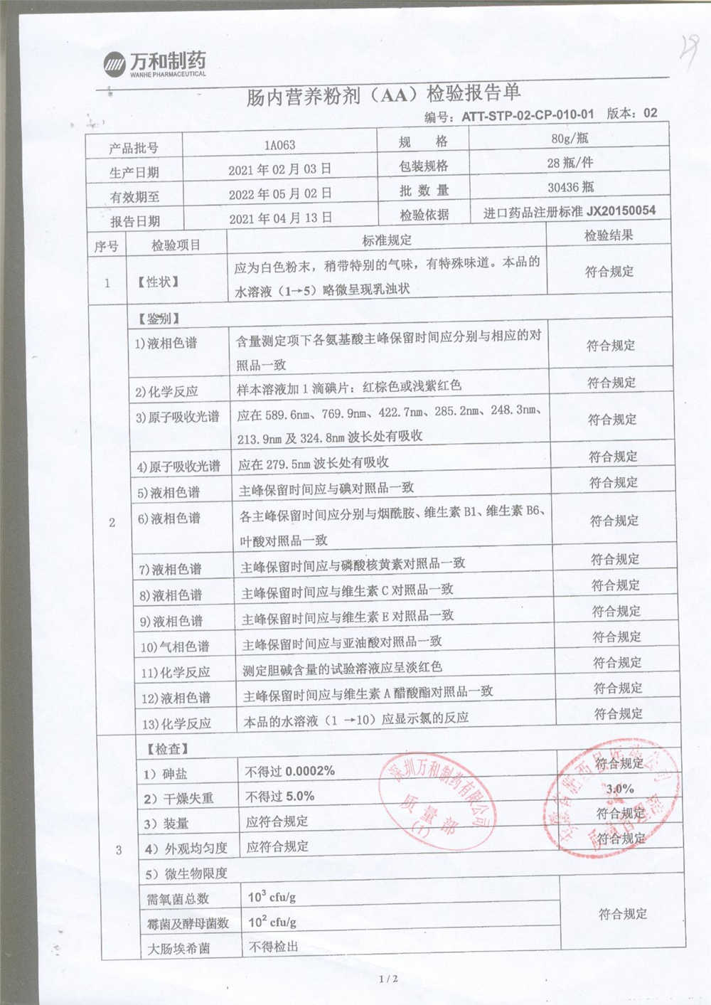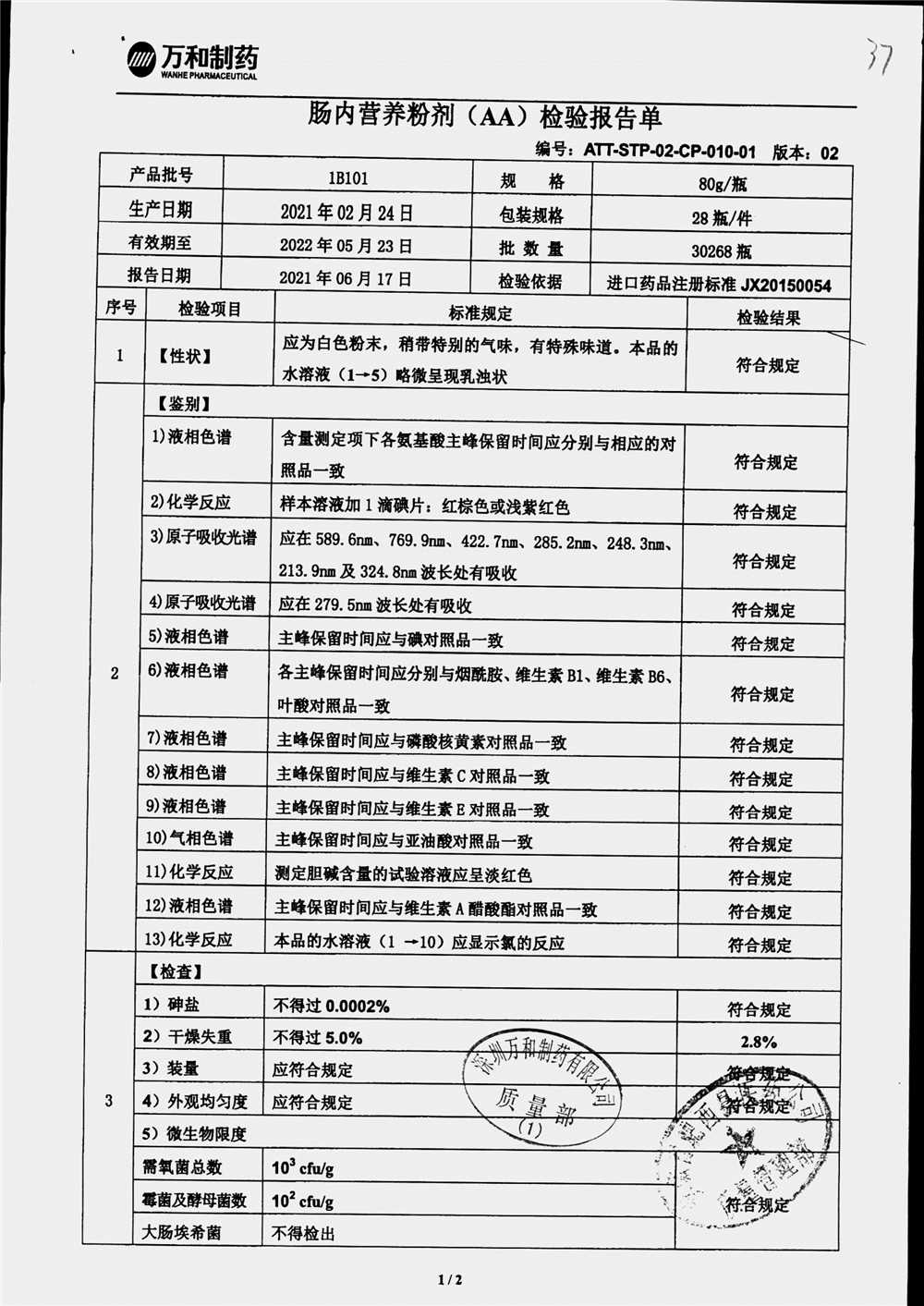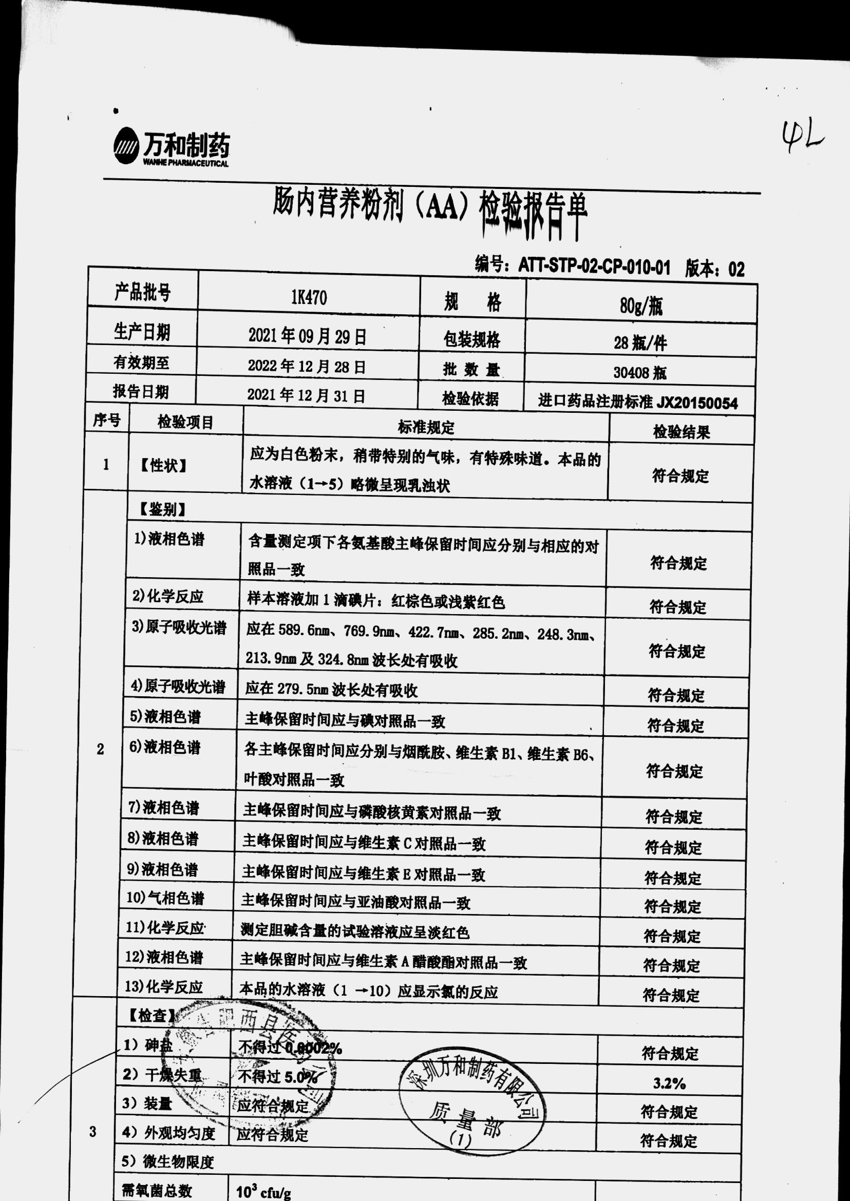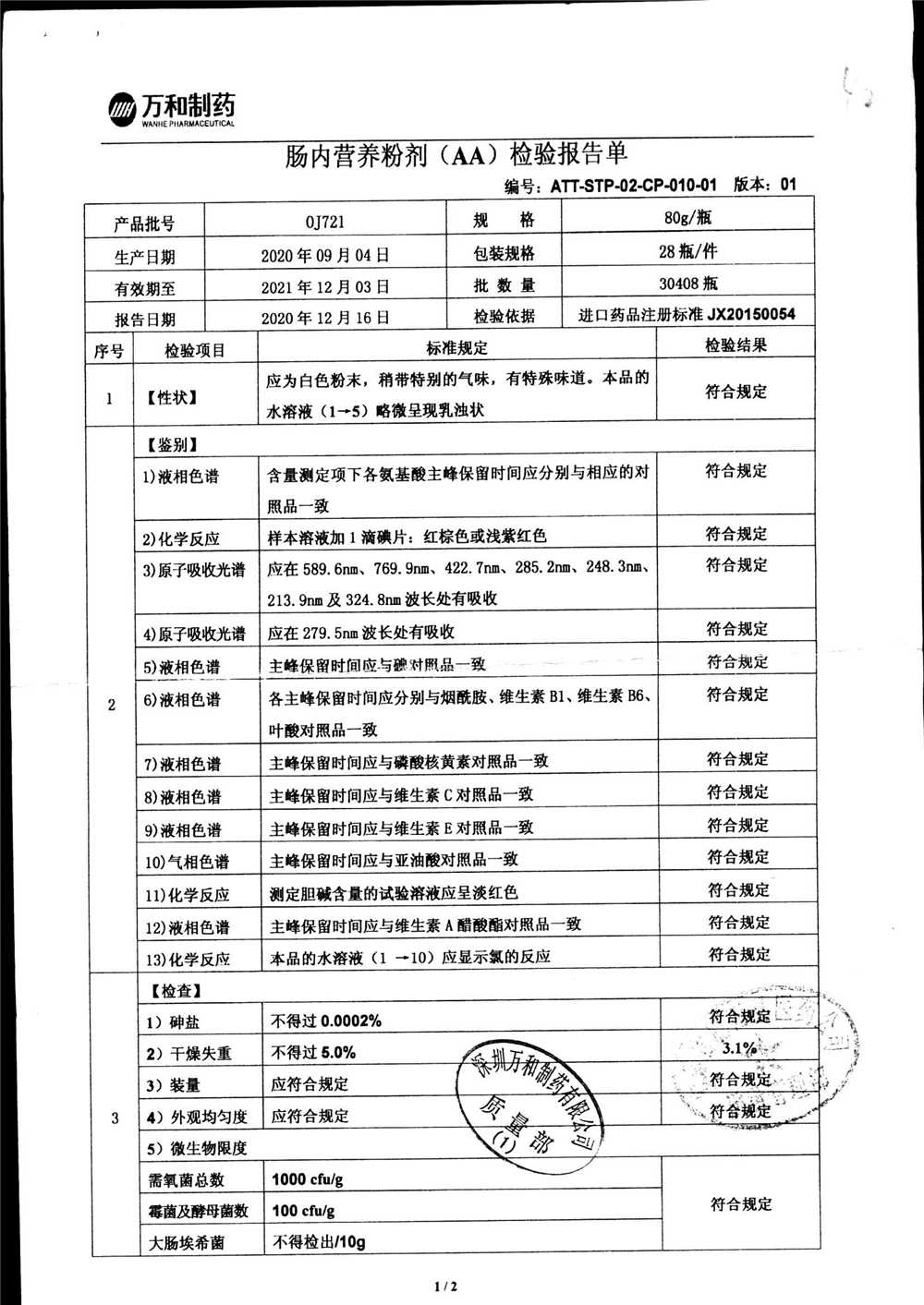 | 肠内营养粉剂 | 80g | 1J414(3/3) | 查看详情 |