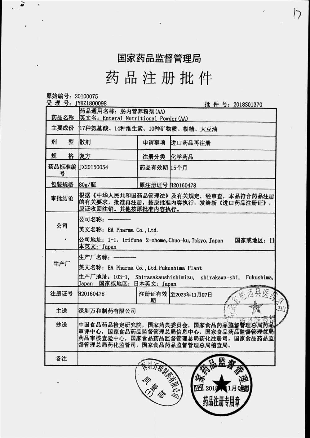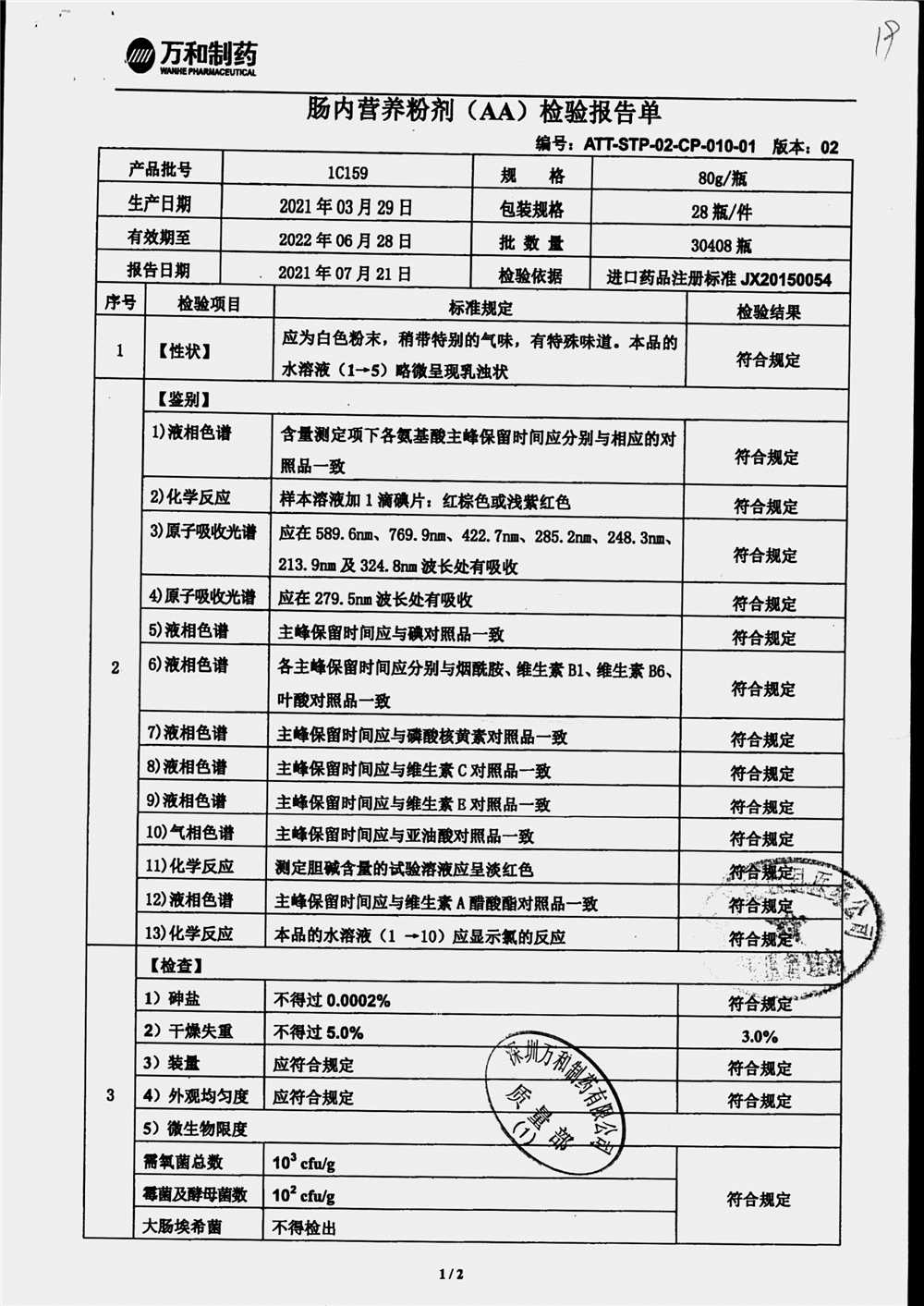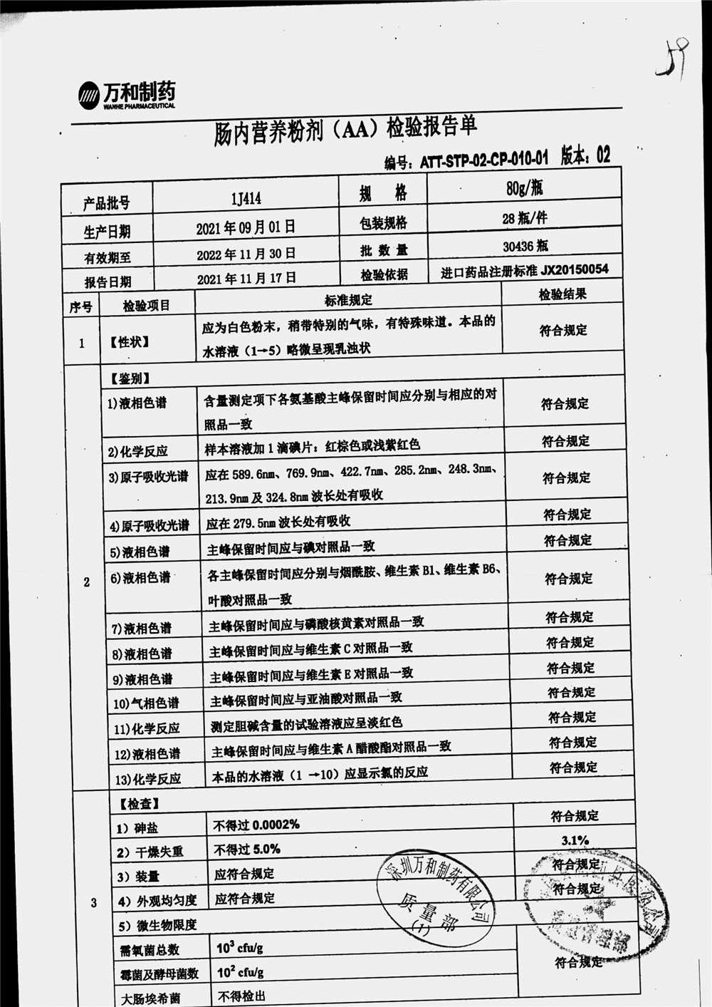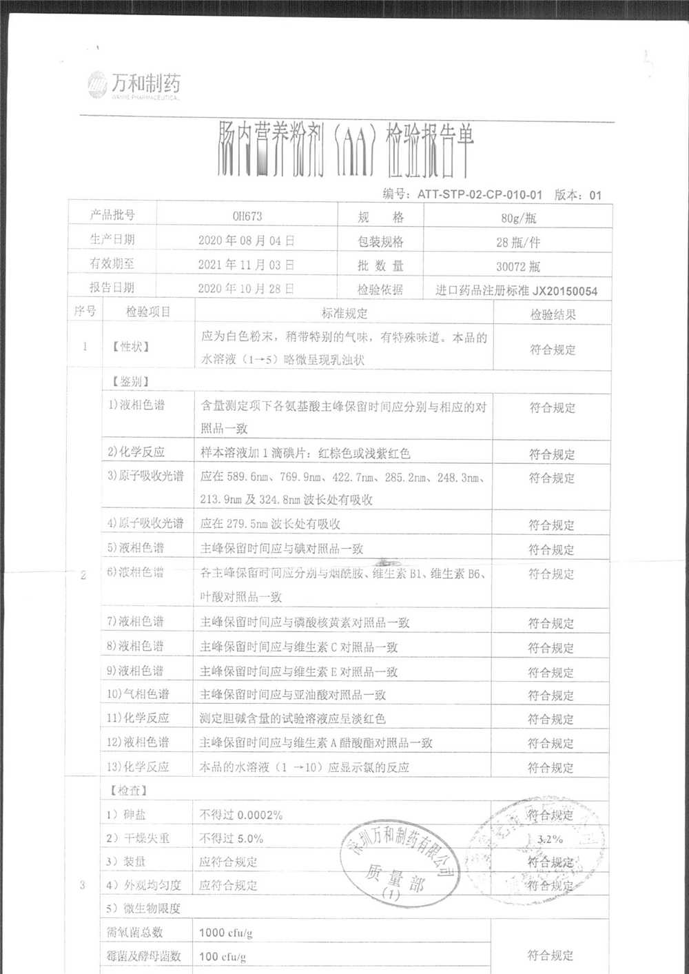 | 肠内营养粉剂 | 80g | 1J414(3/3) | 查看详情 |