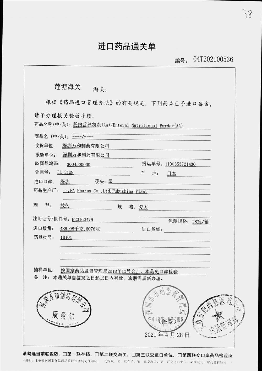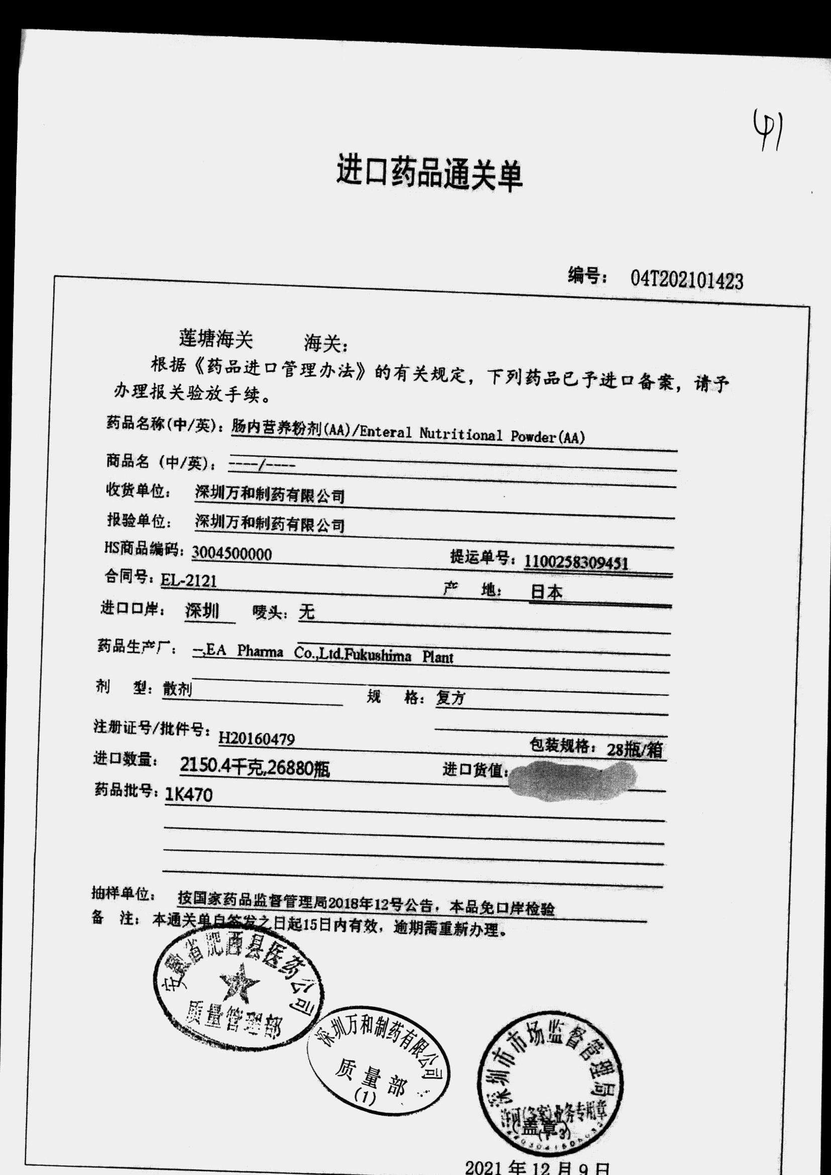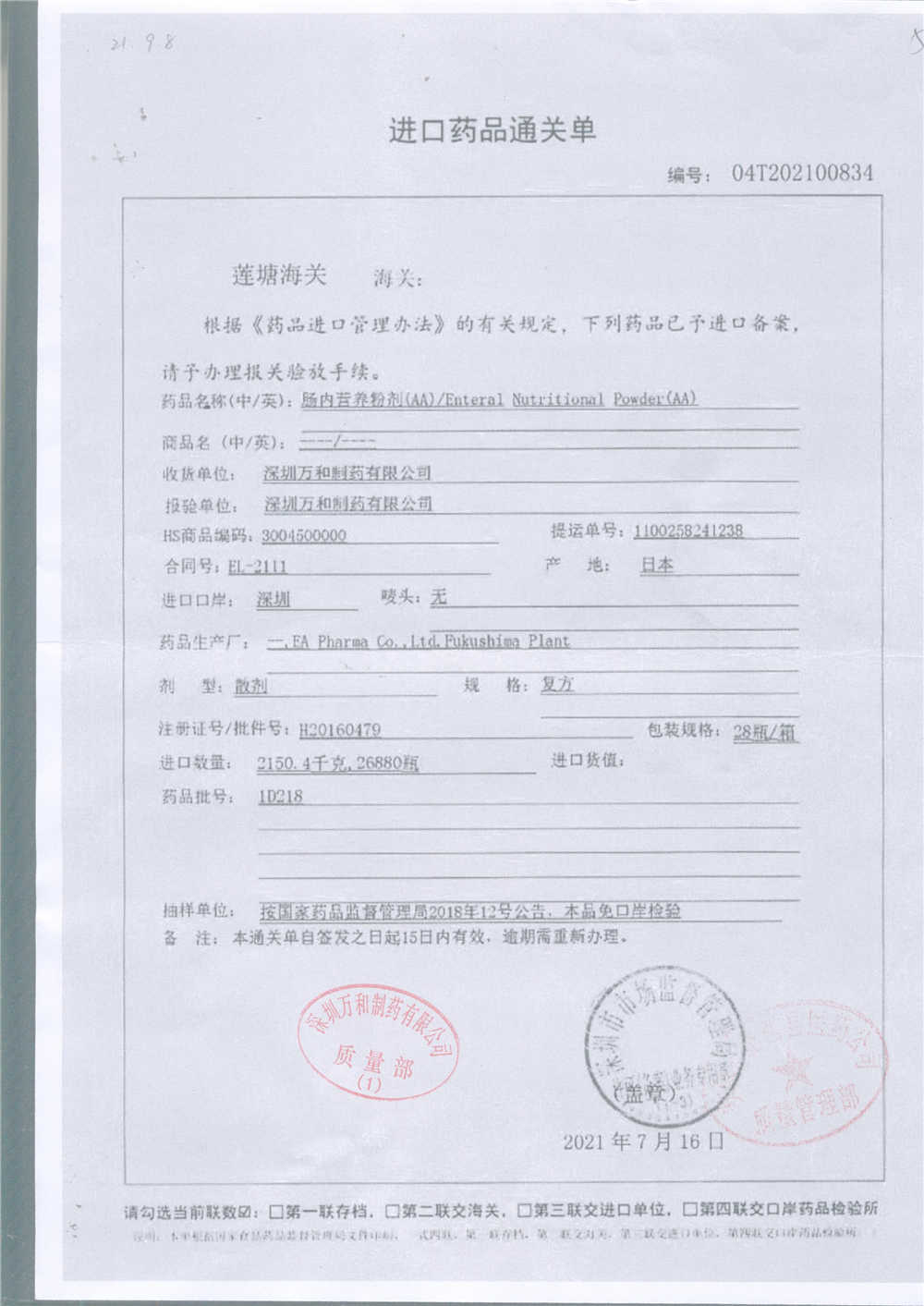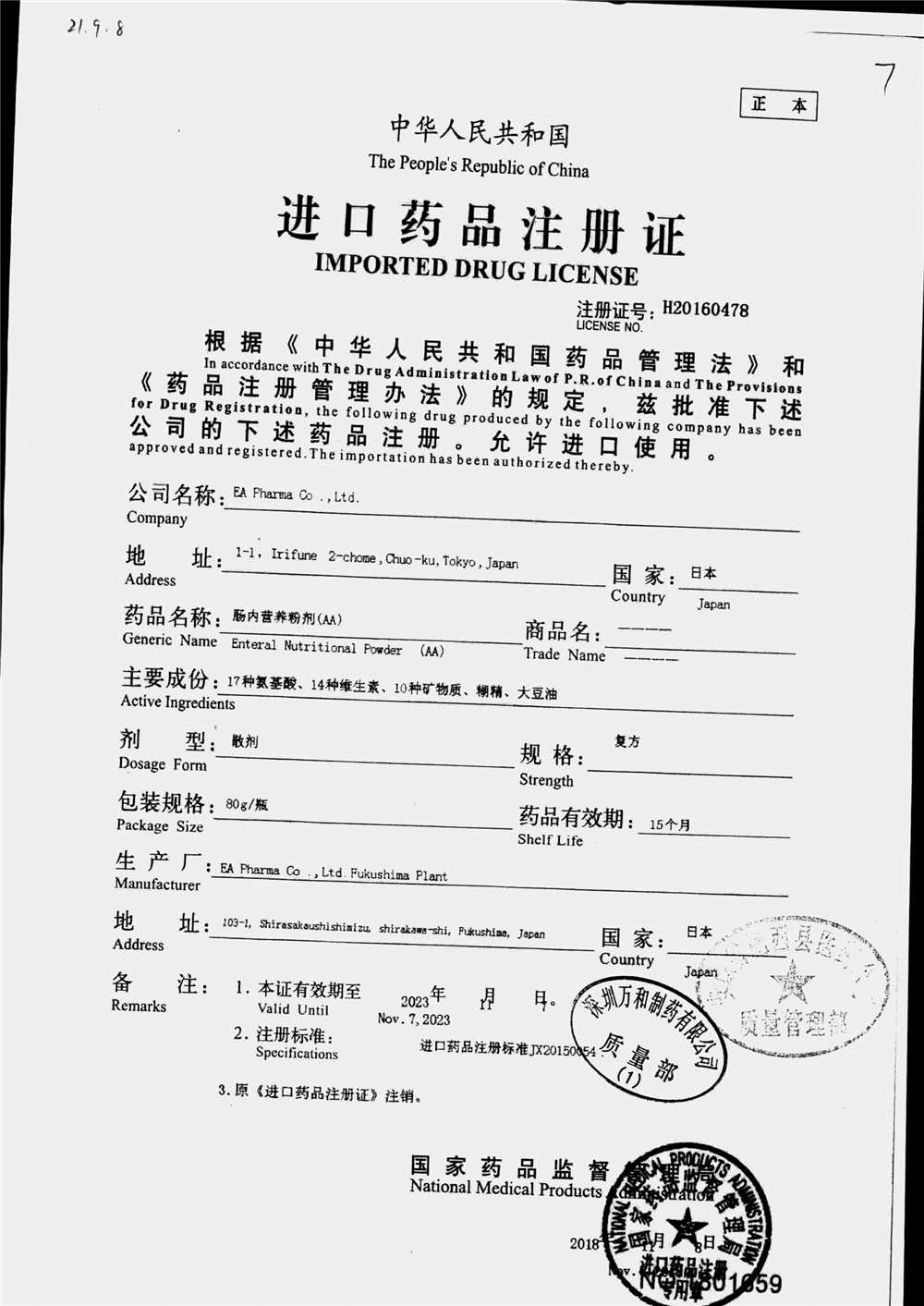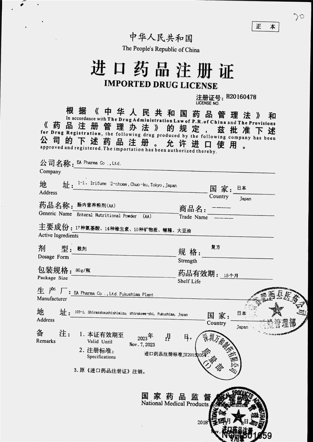 | 肠内营养粉剂 | 80g | 1J414(3/3) | 查看详情 |