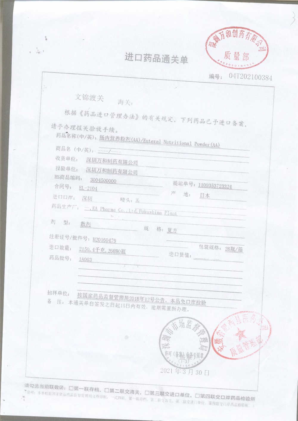 | 肠内营养粉剂 | 80g | 0H673(2/2) | 查看详情 |