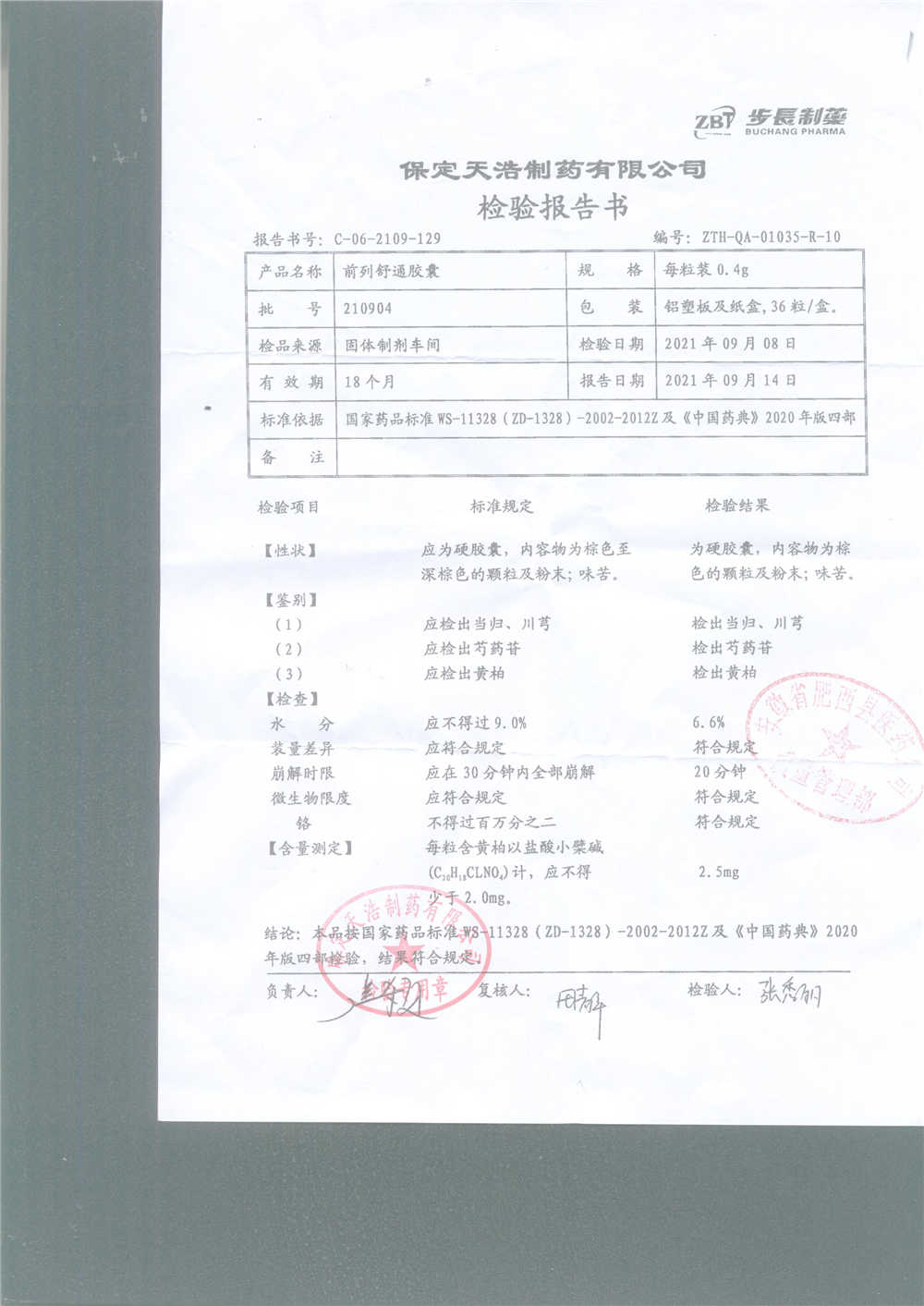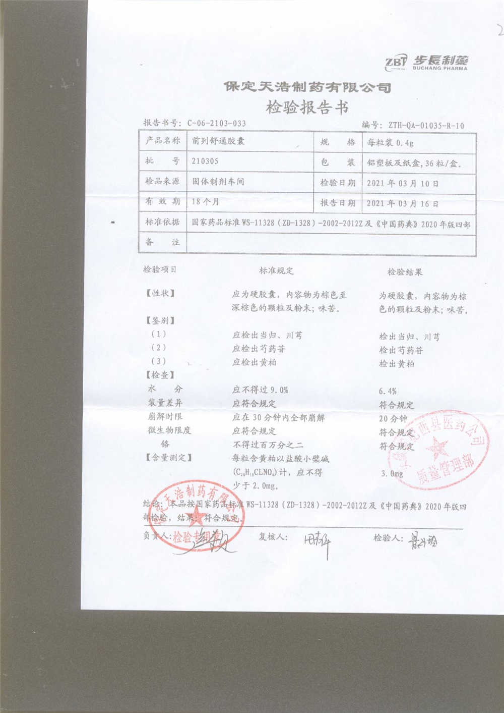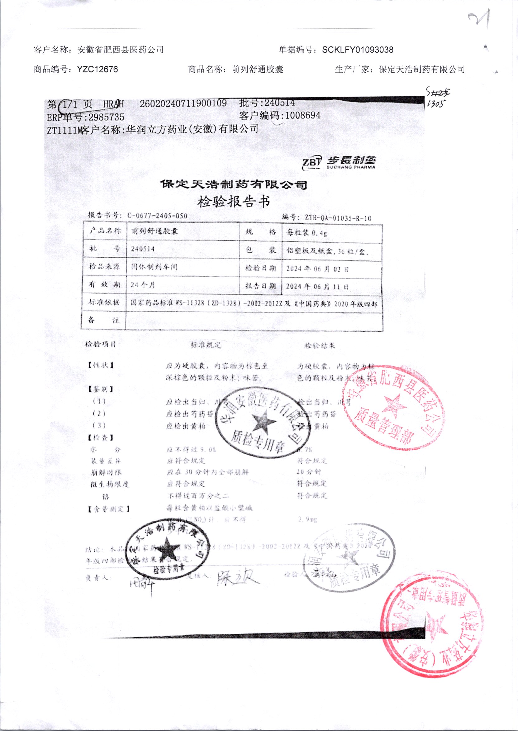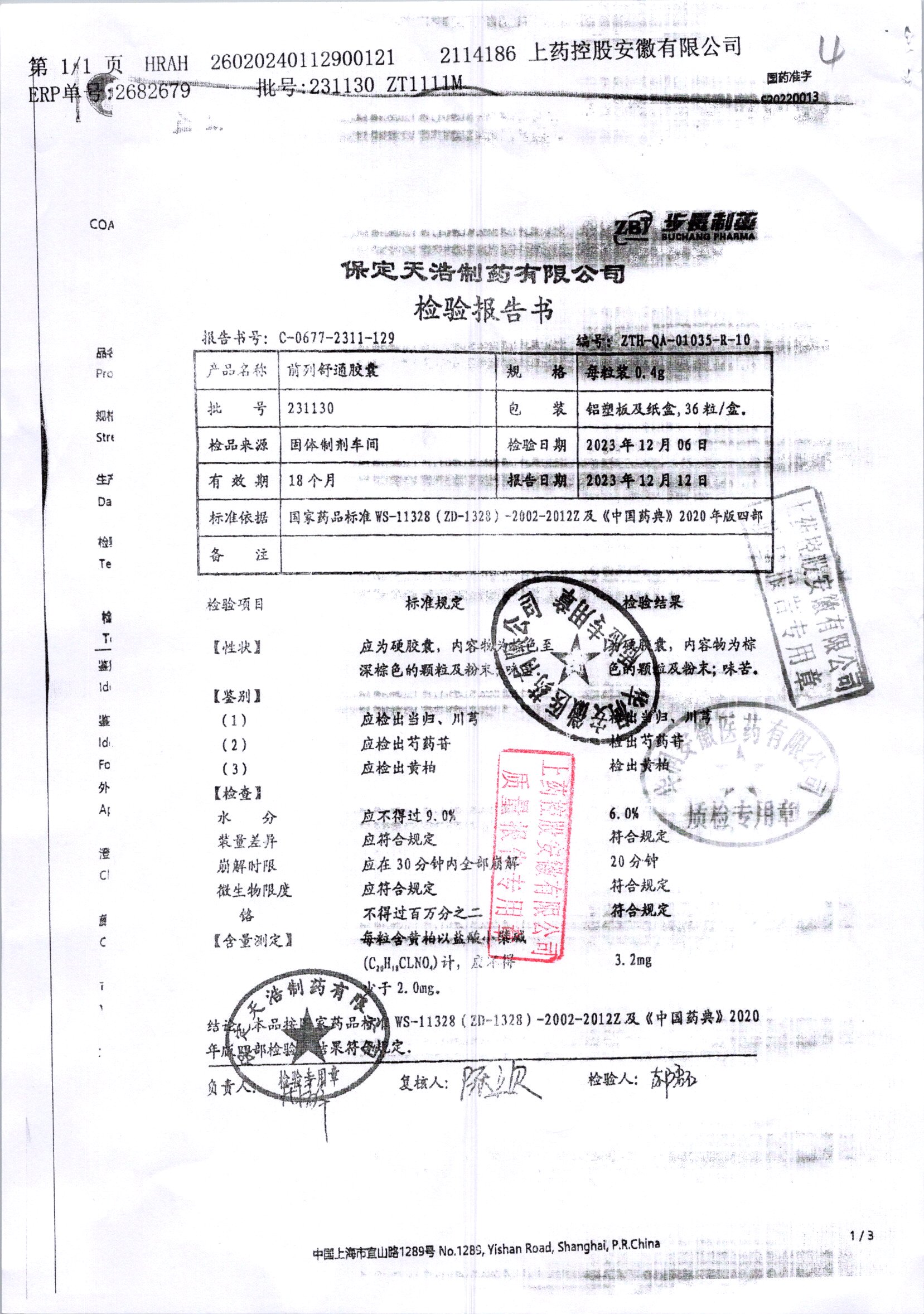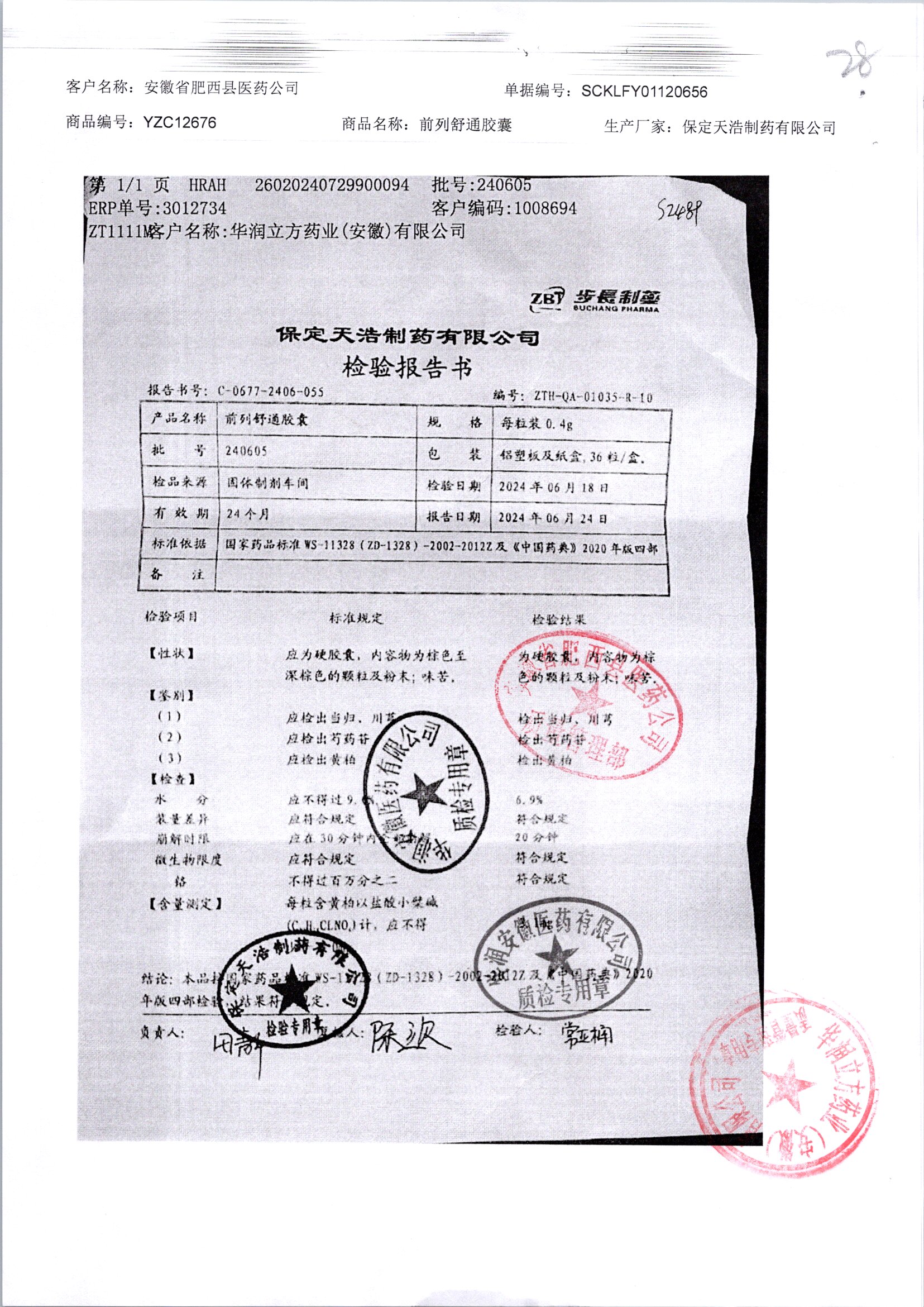 | 前列舒通胶囊 | 0.4g*18s*2板 | 240605 | 查看详情 |