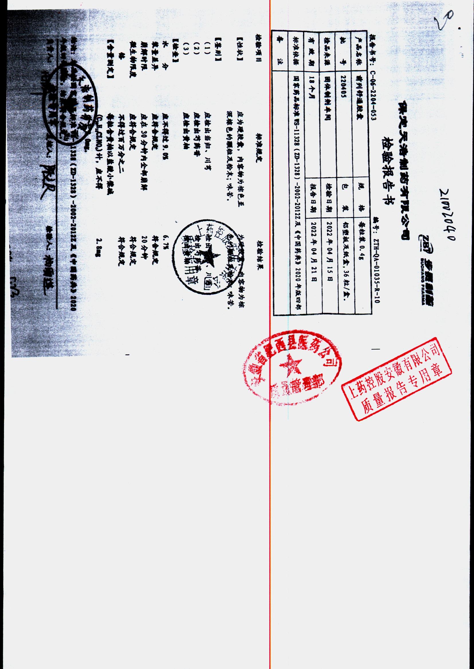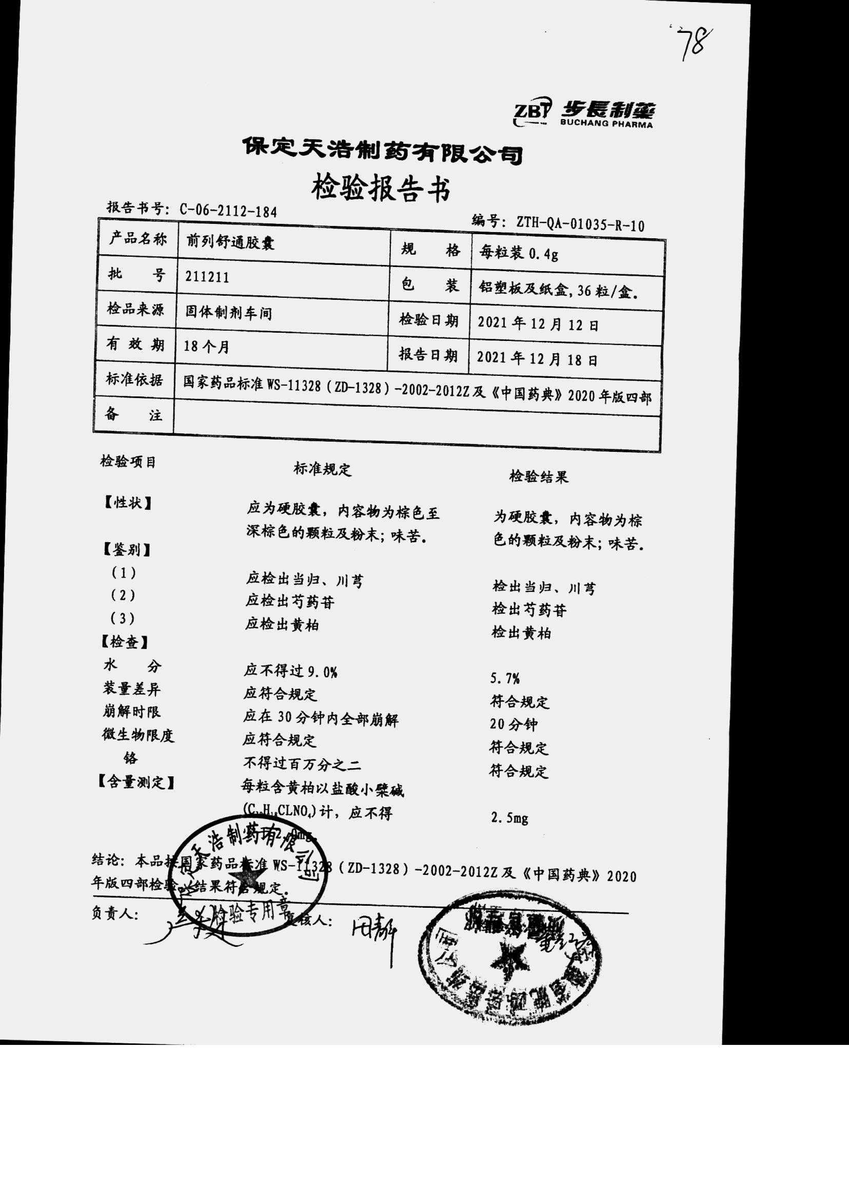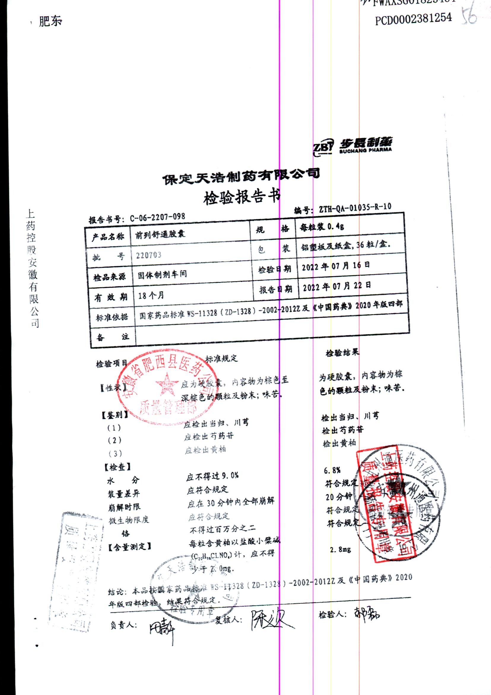 | 前列舒通胶囊 | 0.4g*18s*2板 | 210806 | 查看详情 |