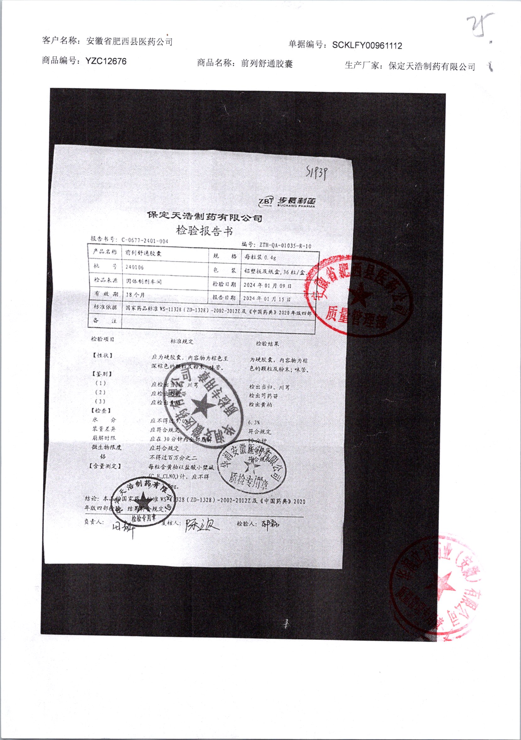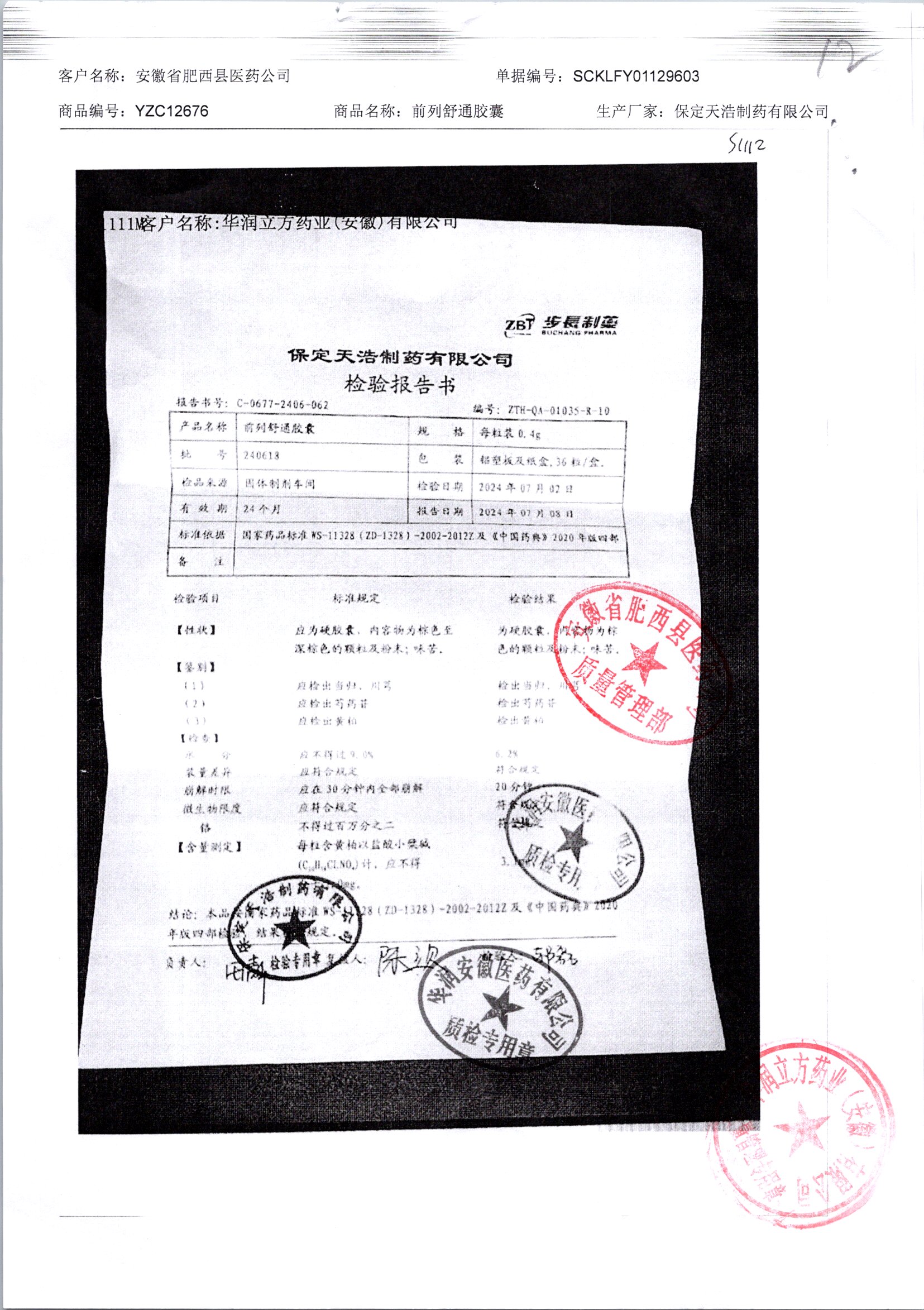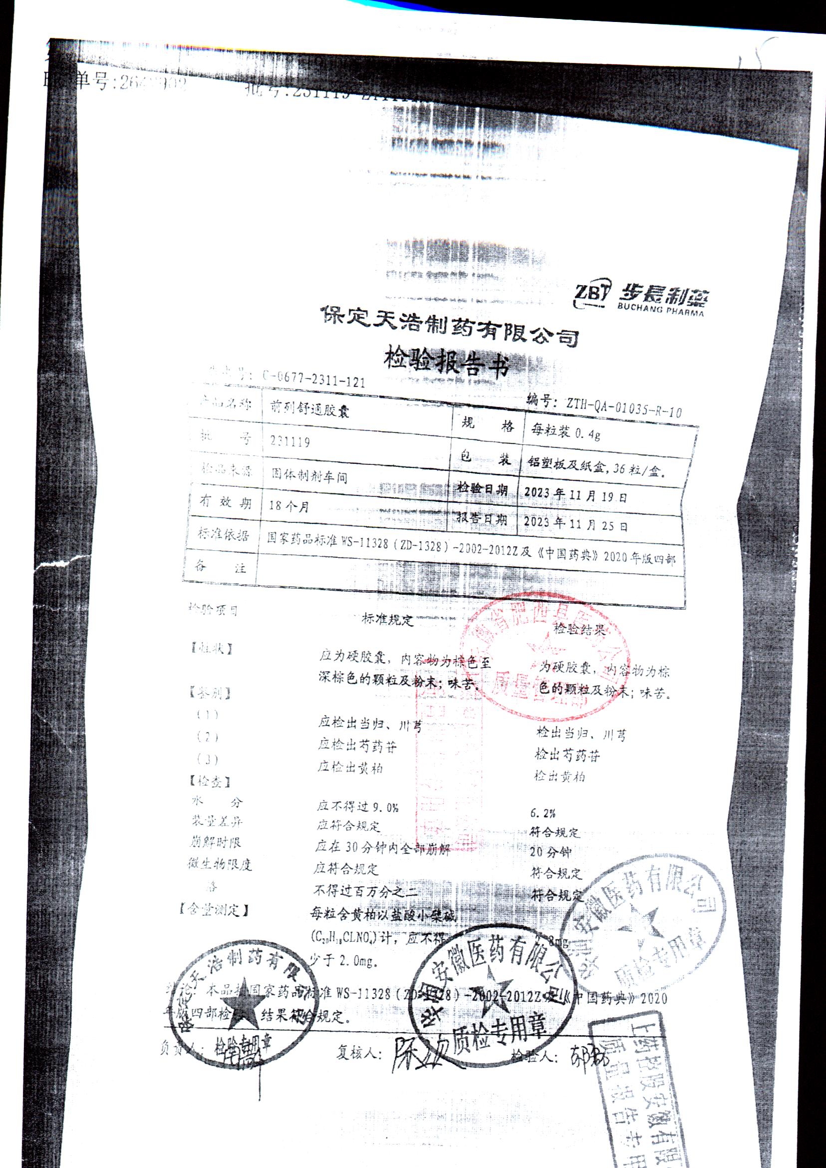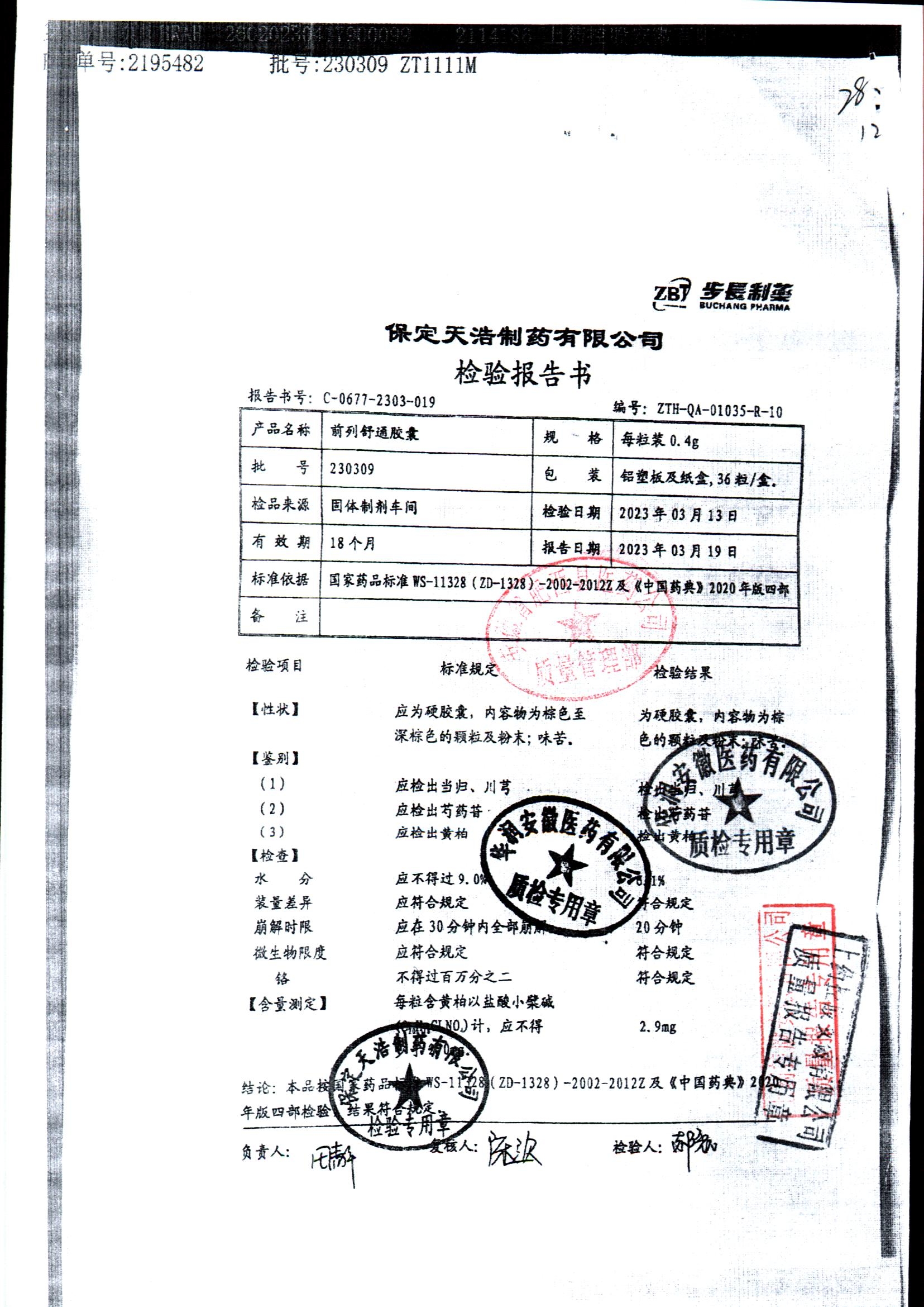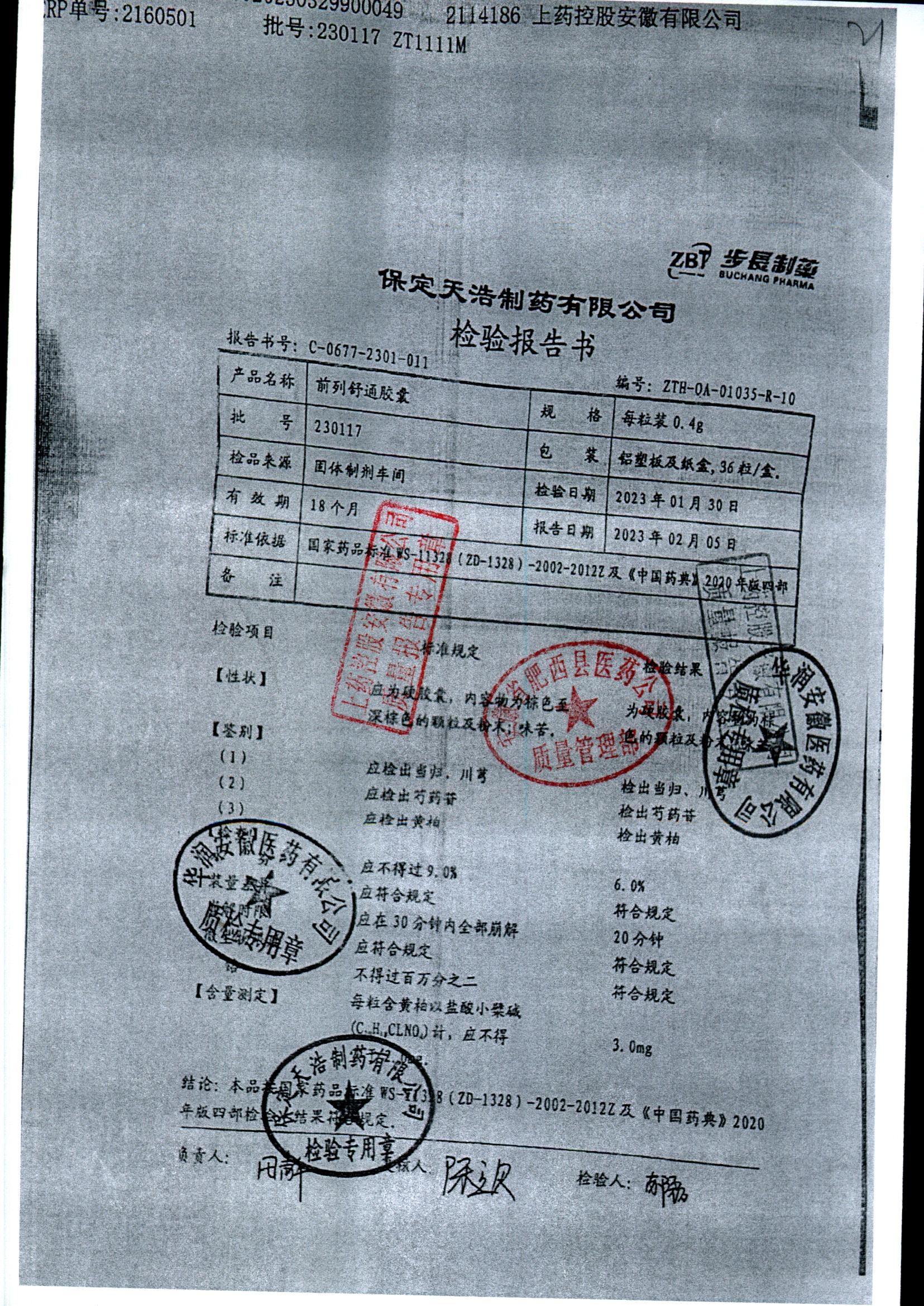 | 前列舒通胶囊 | 0.4g*18s*2板 | 240618 | 查看详情 |