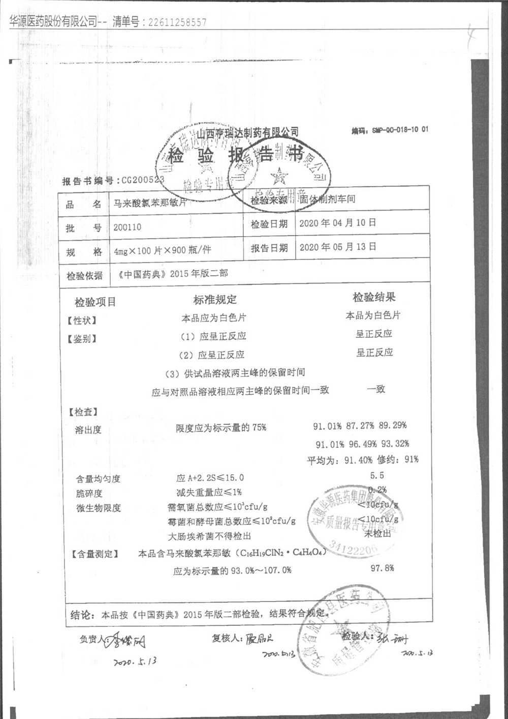 药检报告