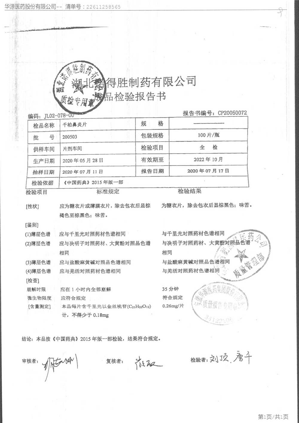 药检报告