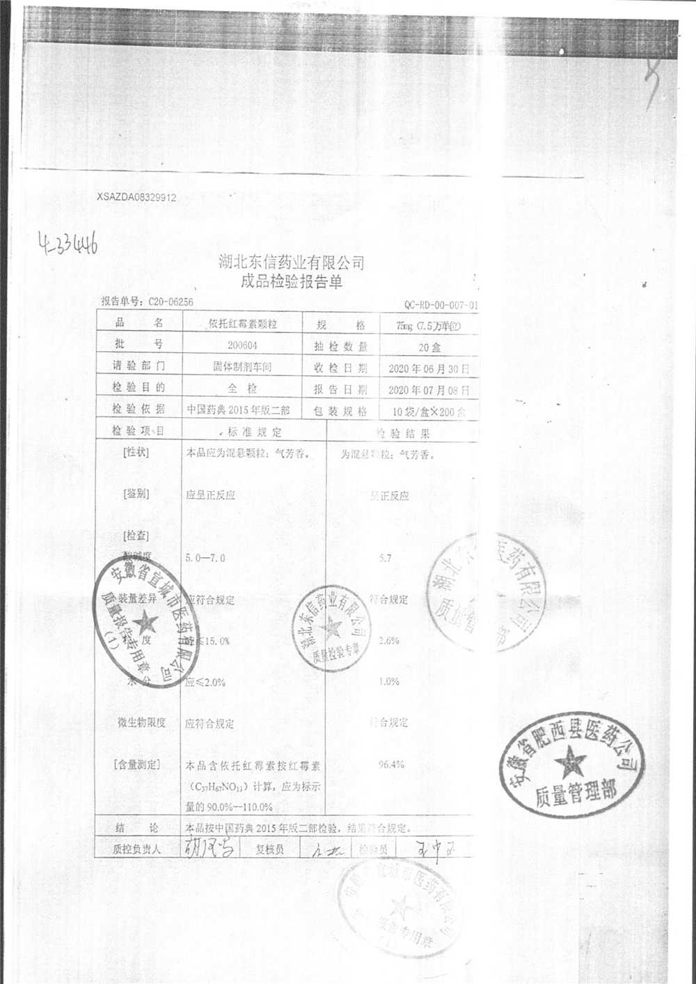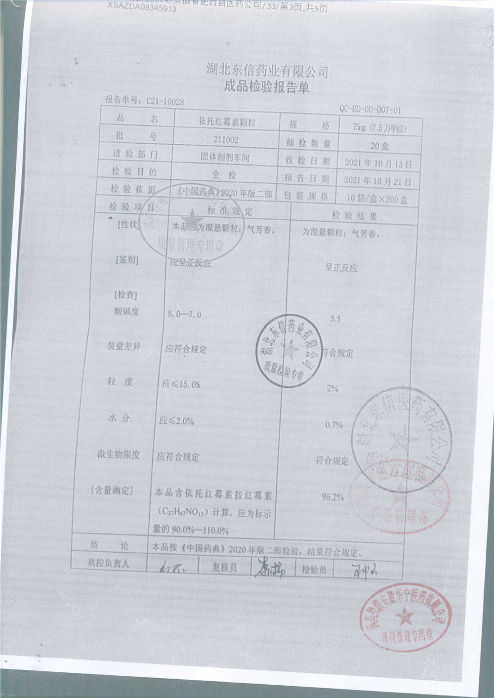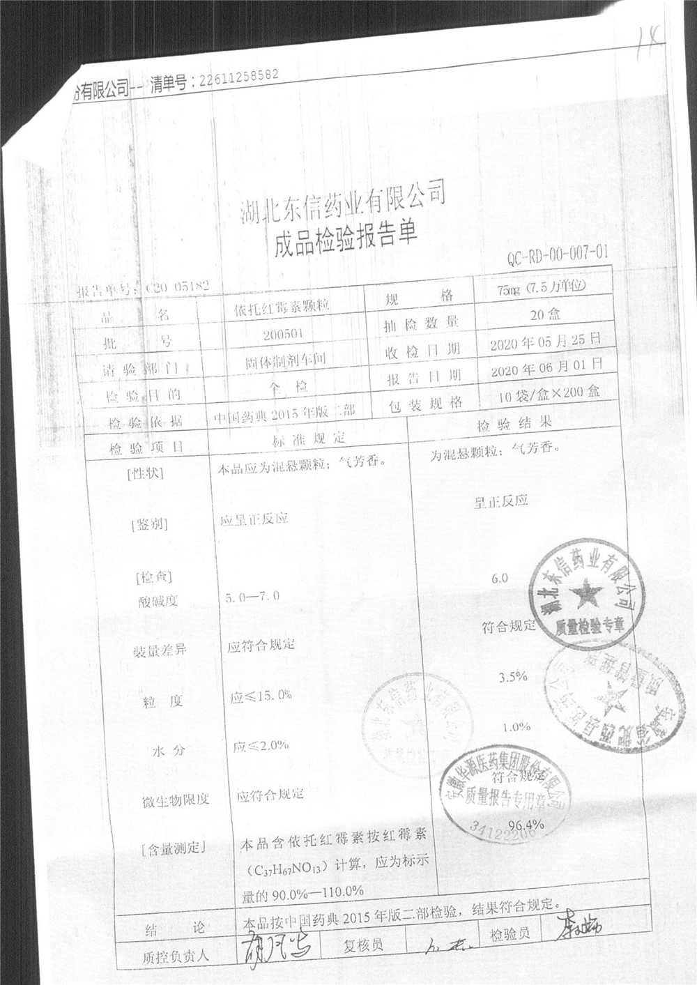 | 依托红霉素颗粒 | 75mg*10袋 | 200604 | 查看详情 |