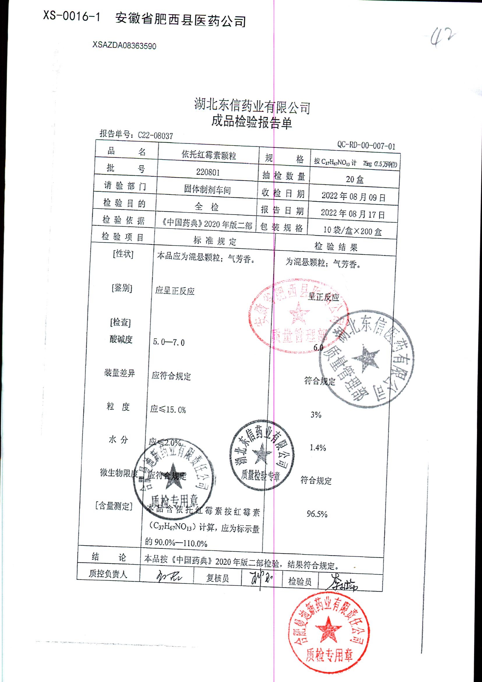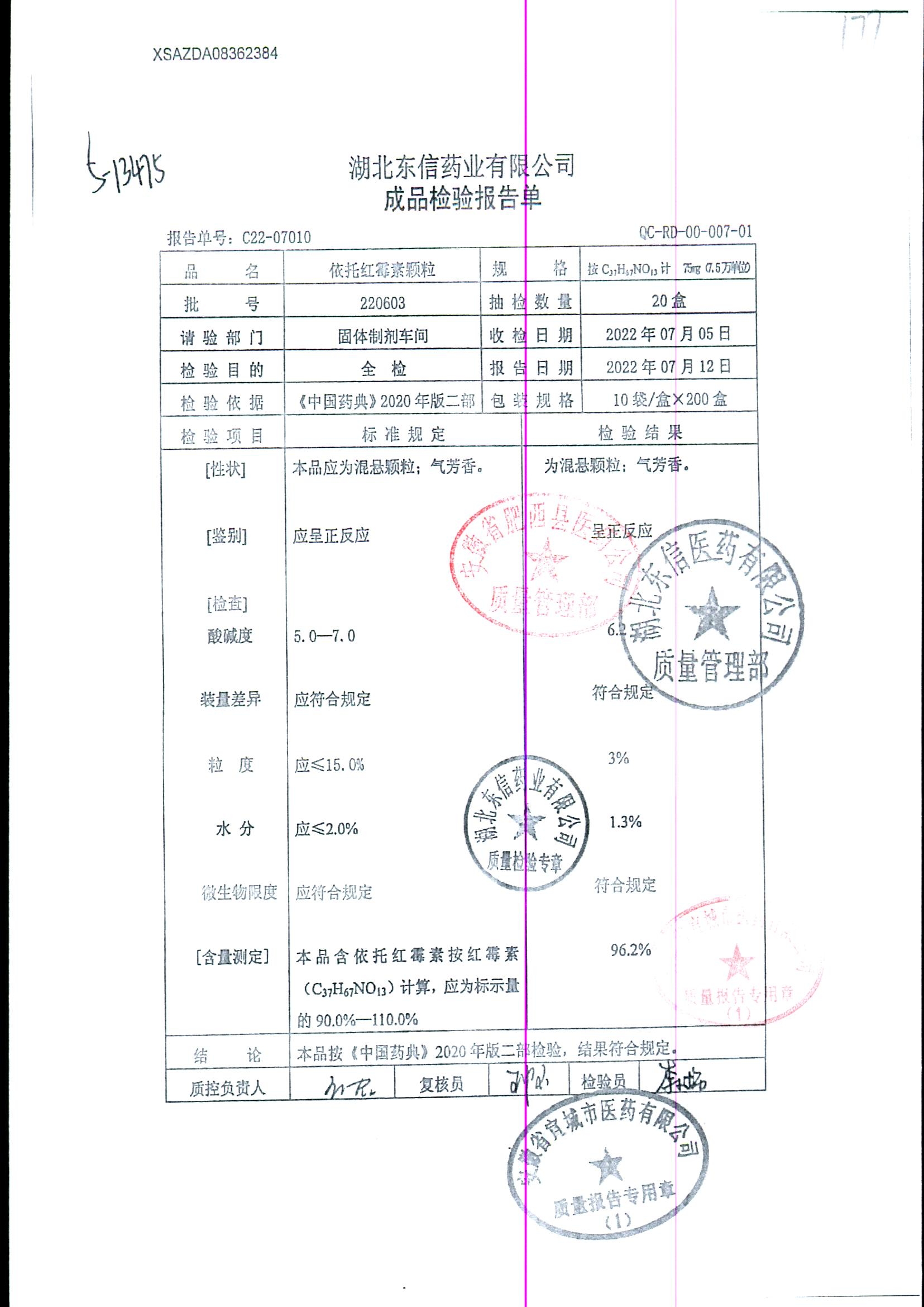 | 依托红霉素颗粒 | 75mg*10袋 | 220801 | 查看详情 |