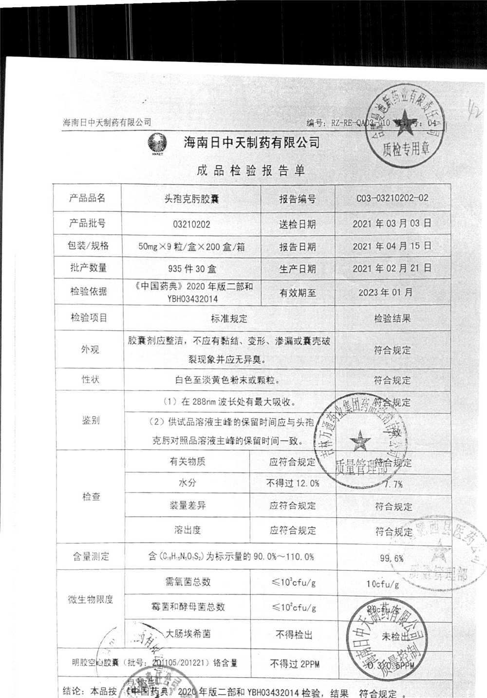 | 头孢克肟胶囊 | 50mg*9s | 03210202 | 查看详情 |